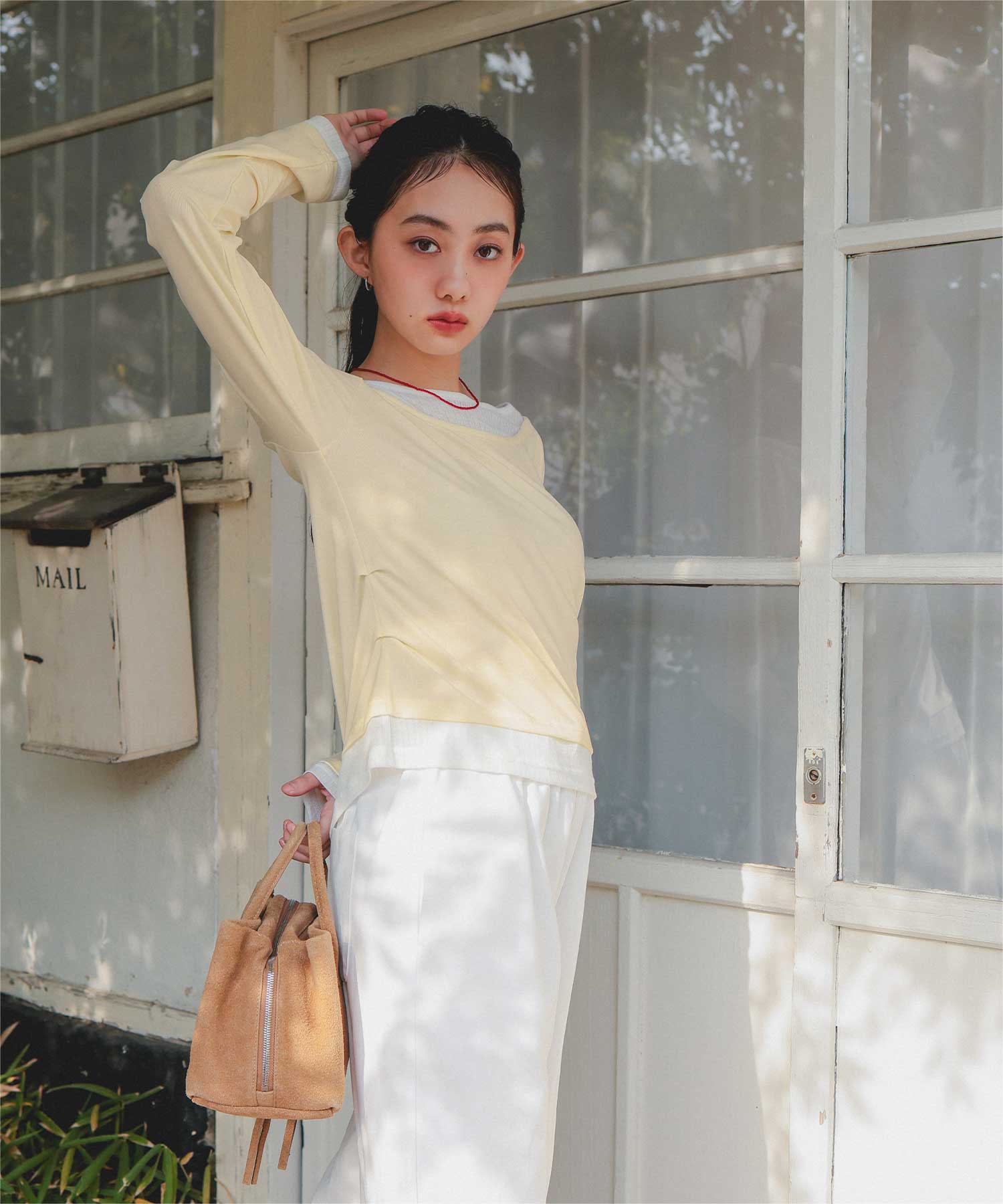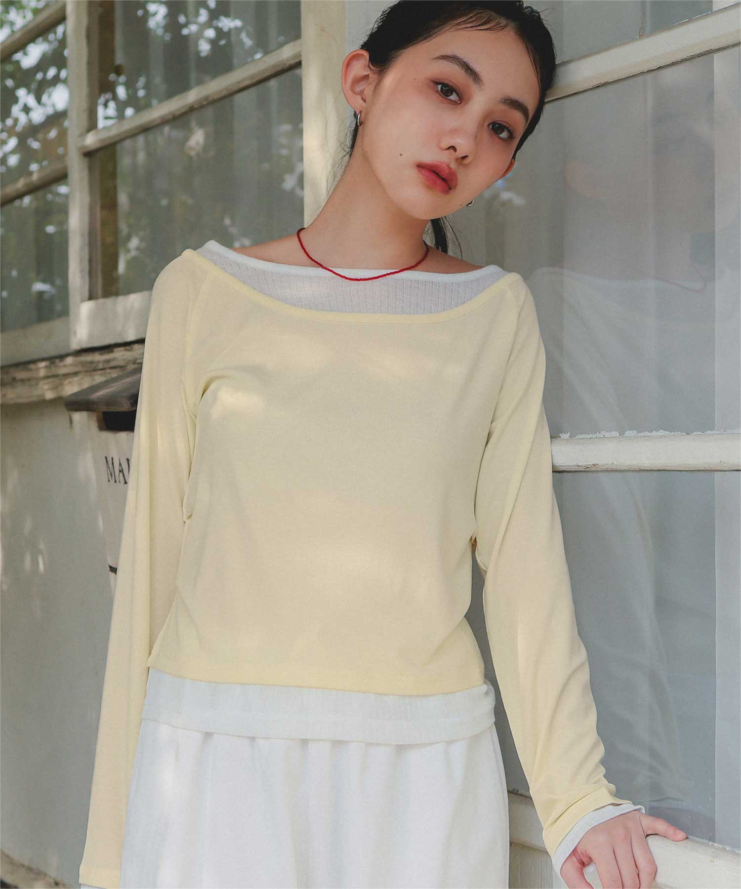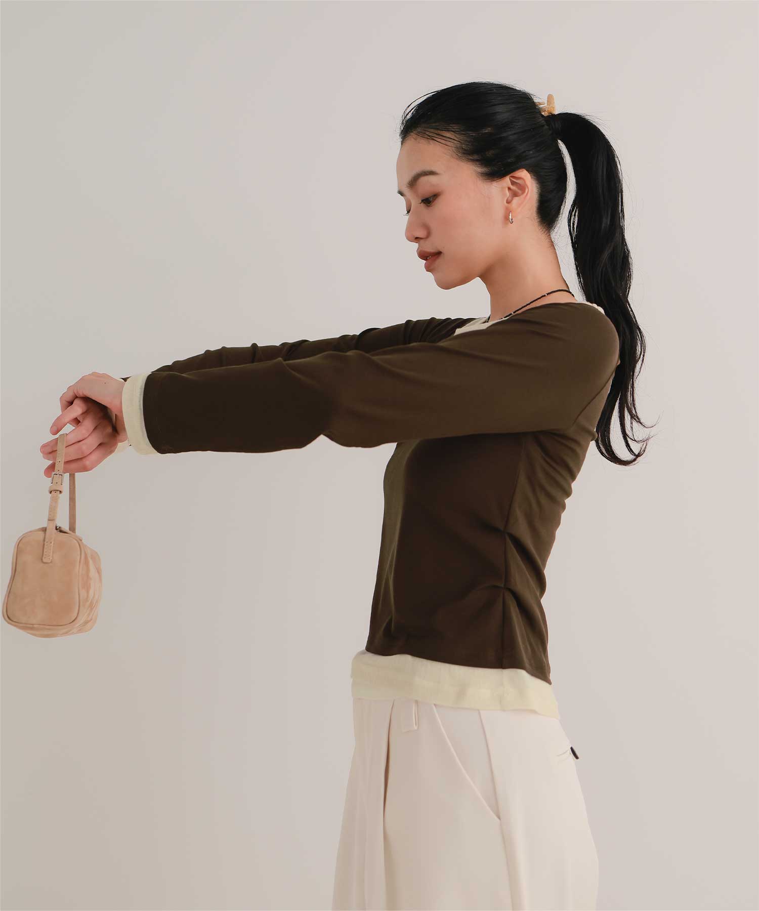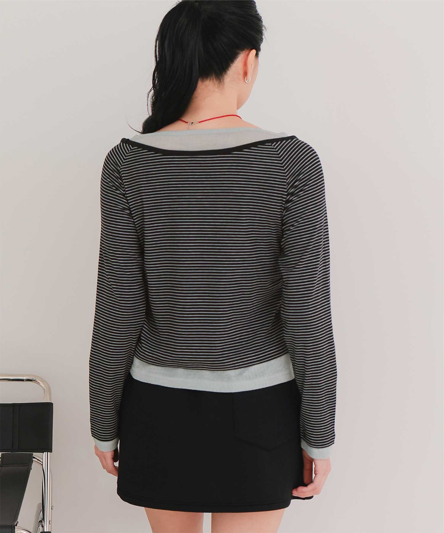 ・重ね着風の配色デザインがポイントで、1枚で決まるレイヤード風トップス
