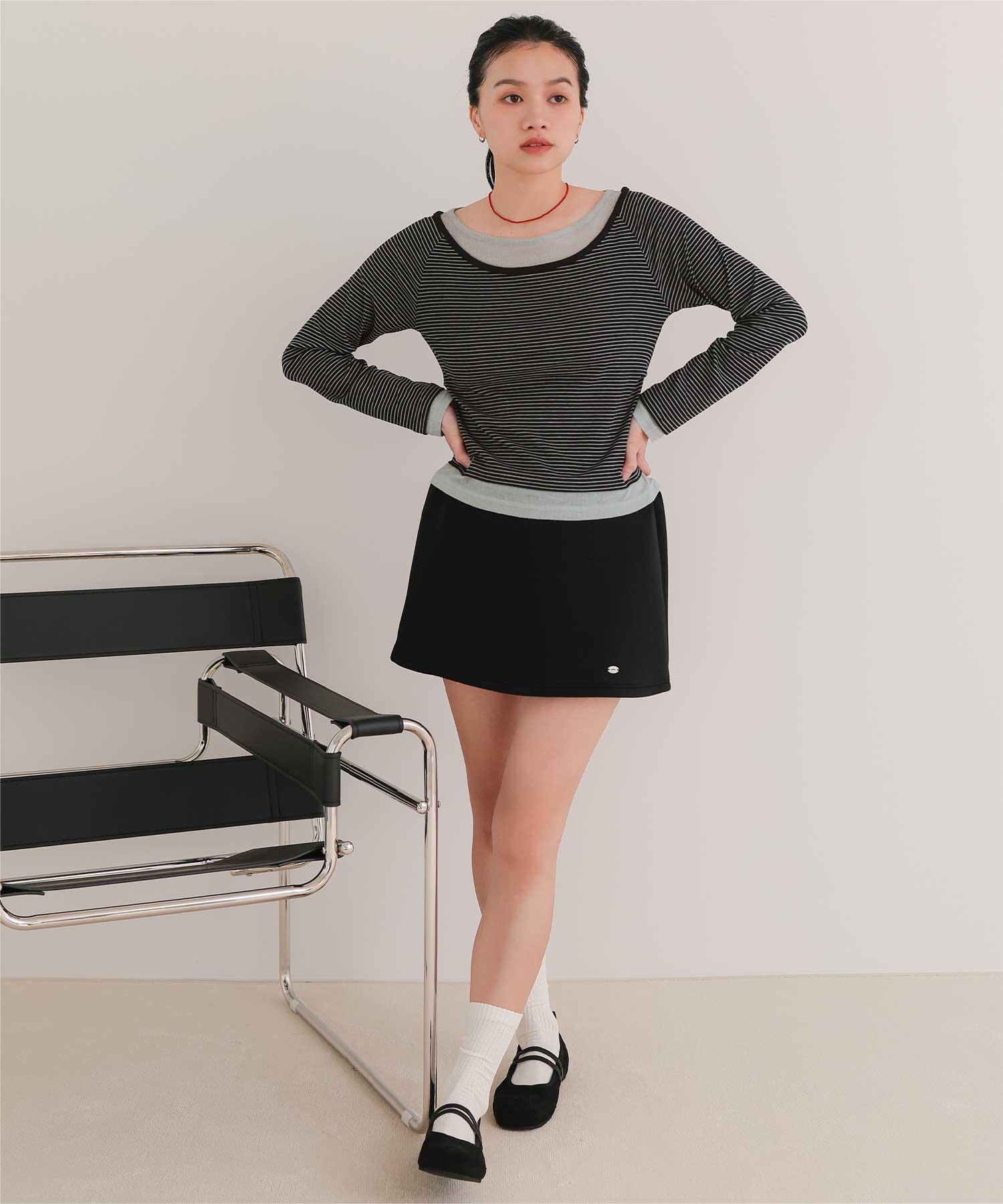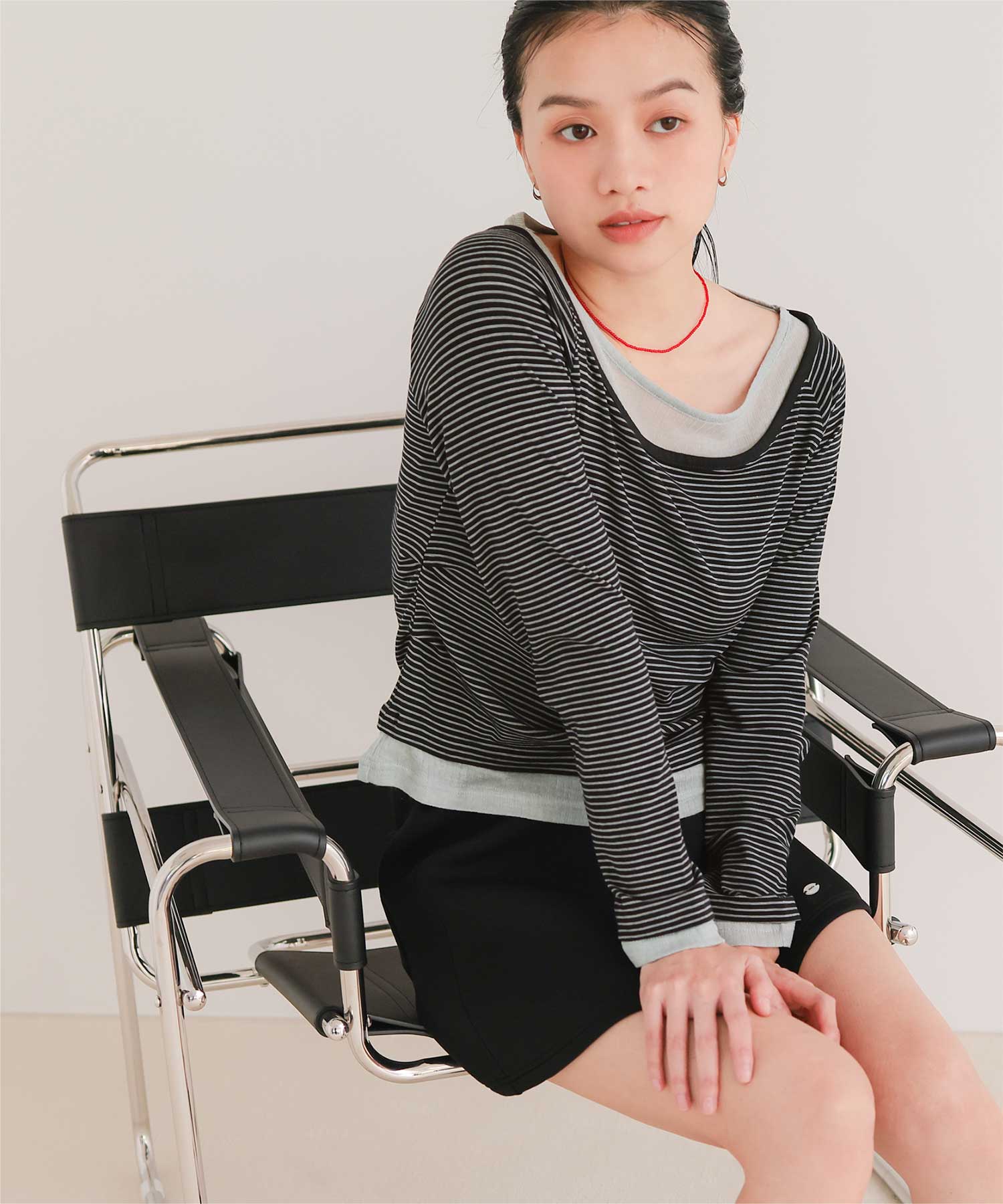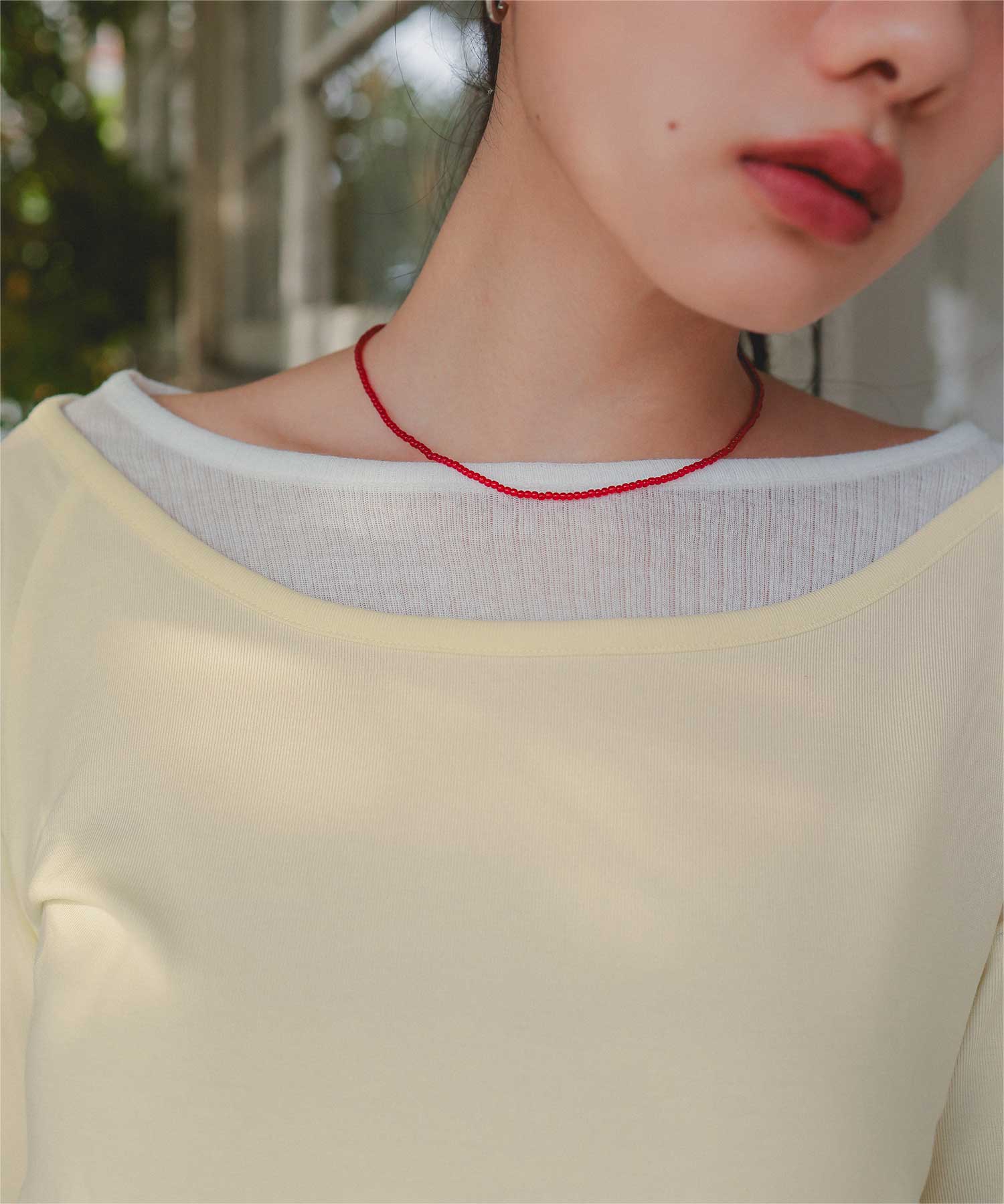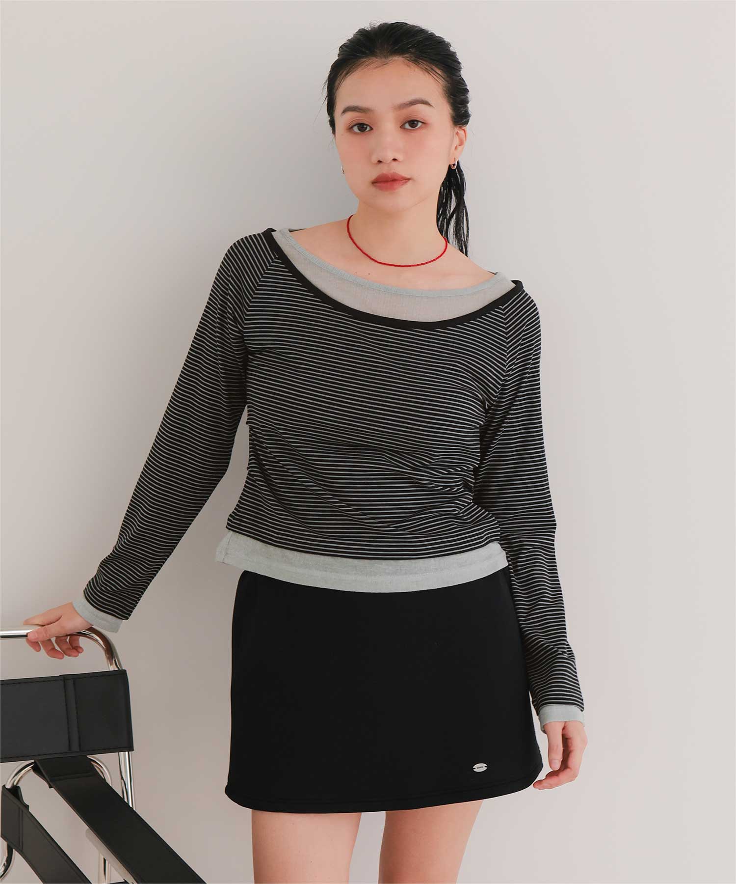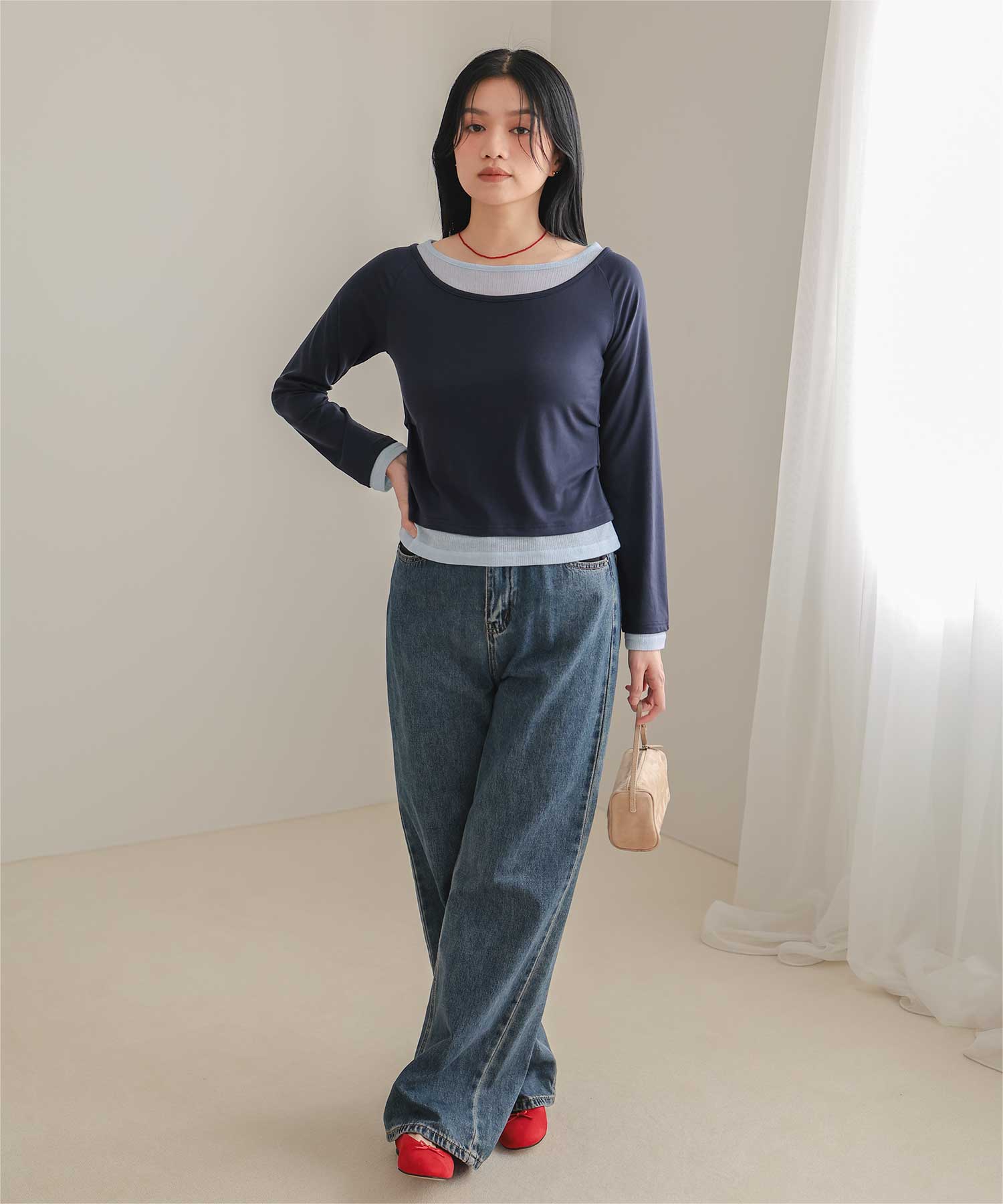 ・重ね着風の配色デザインがポイントで、1枚で決まるレイヤード風トップス