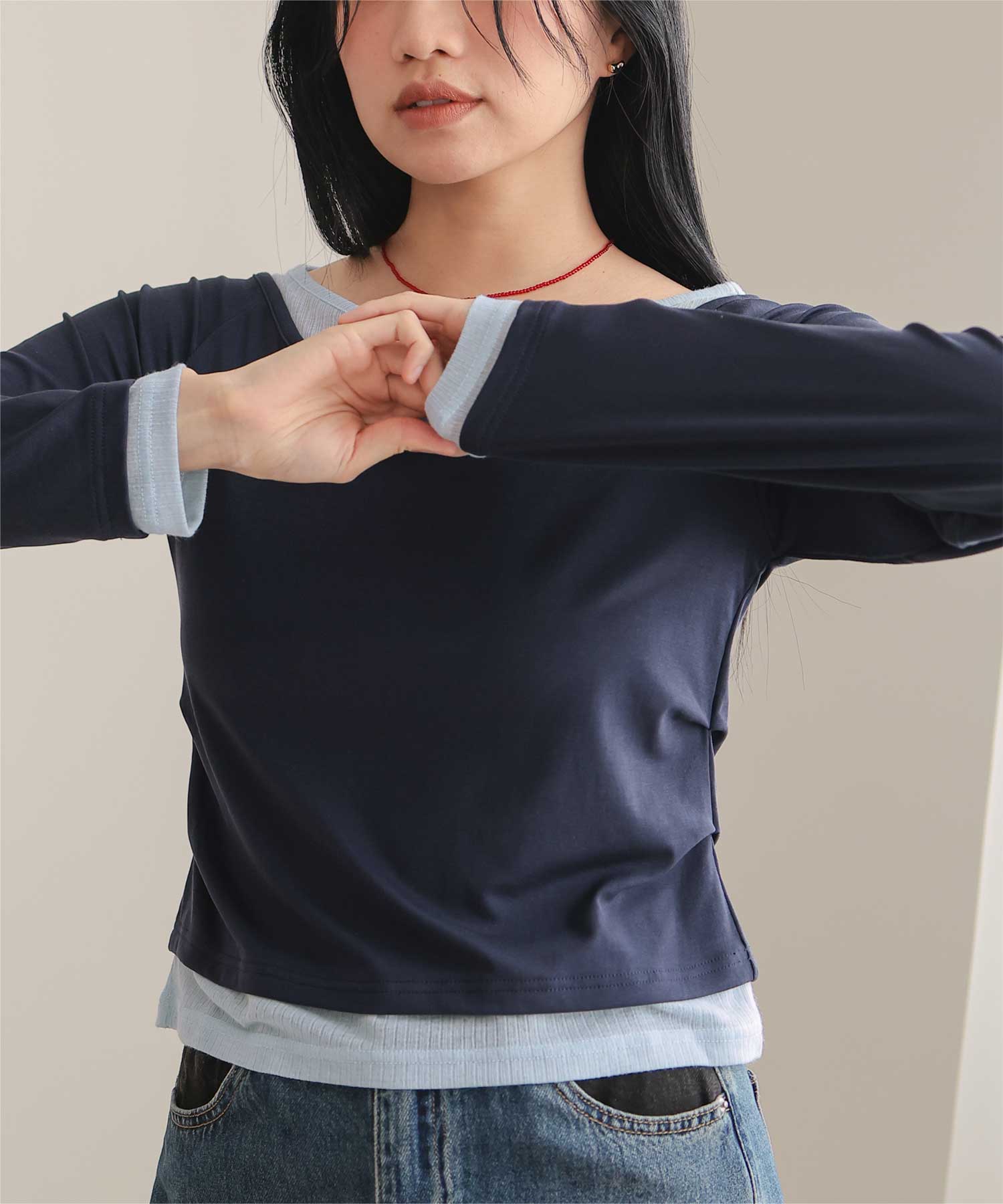 配色レイヤード風トップス