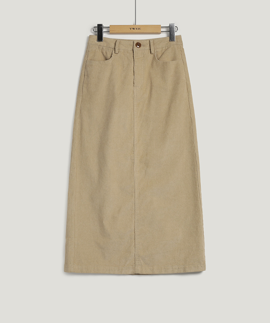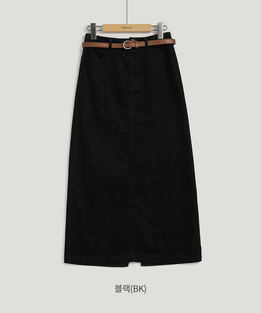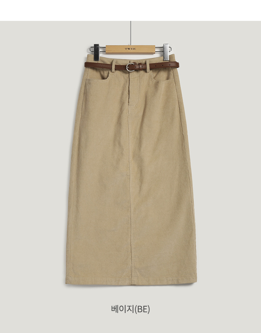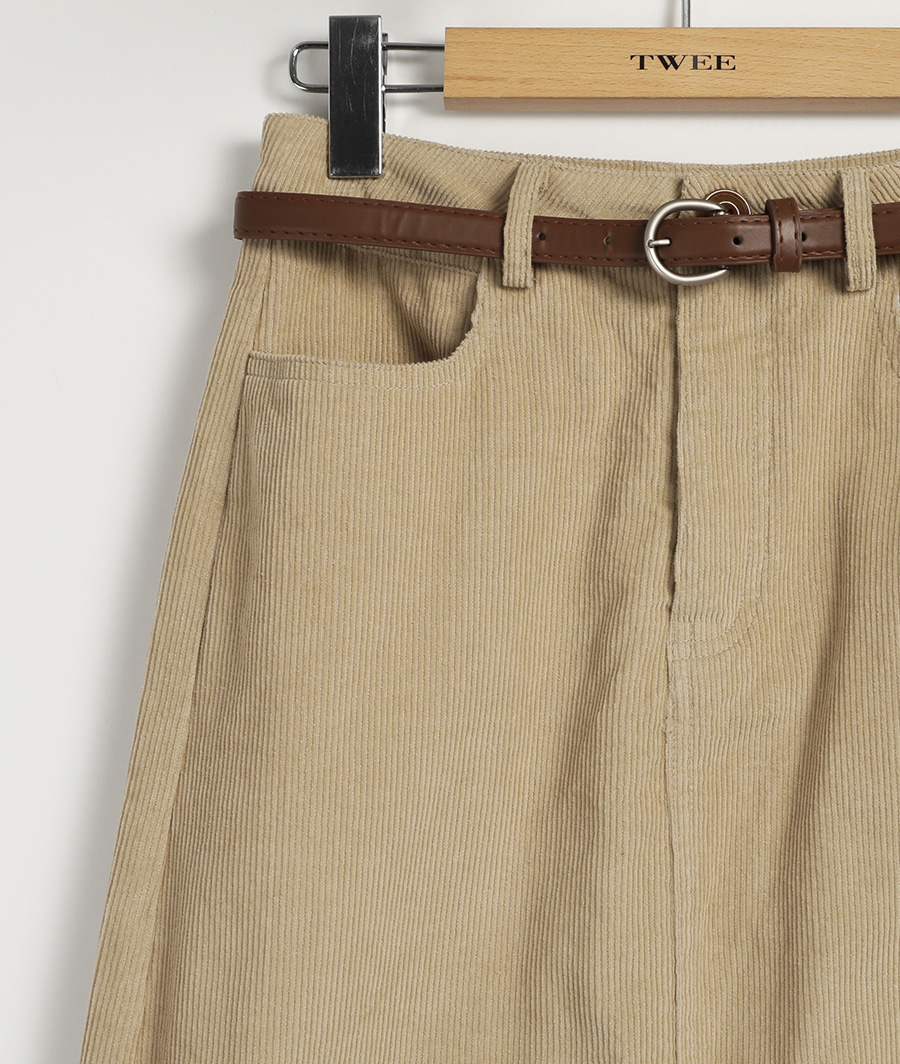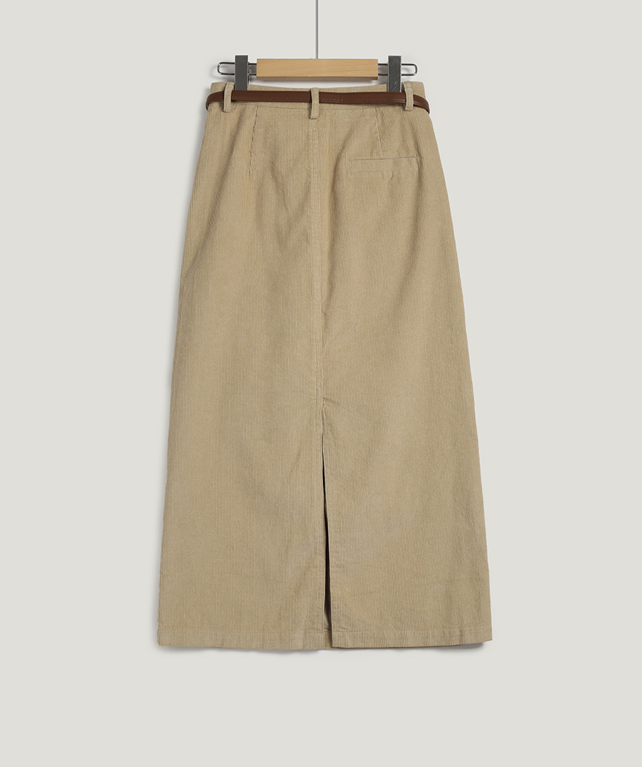 Pakoz Corduroy Long Skirt(Belt Set)