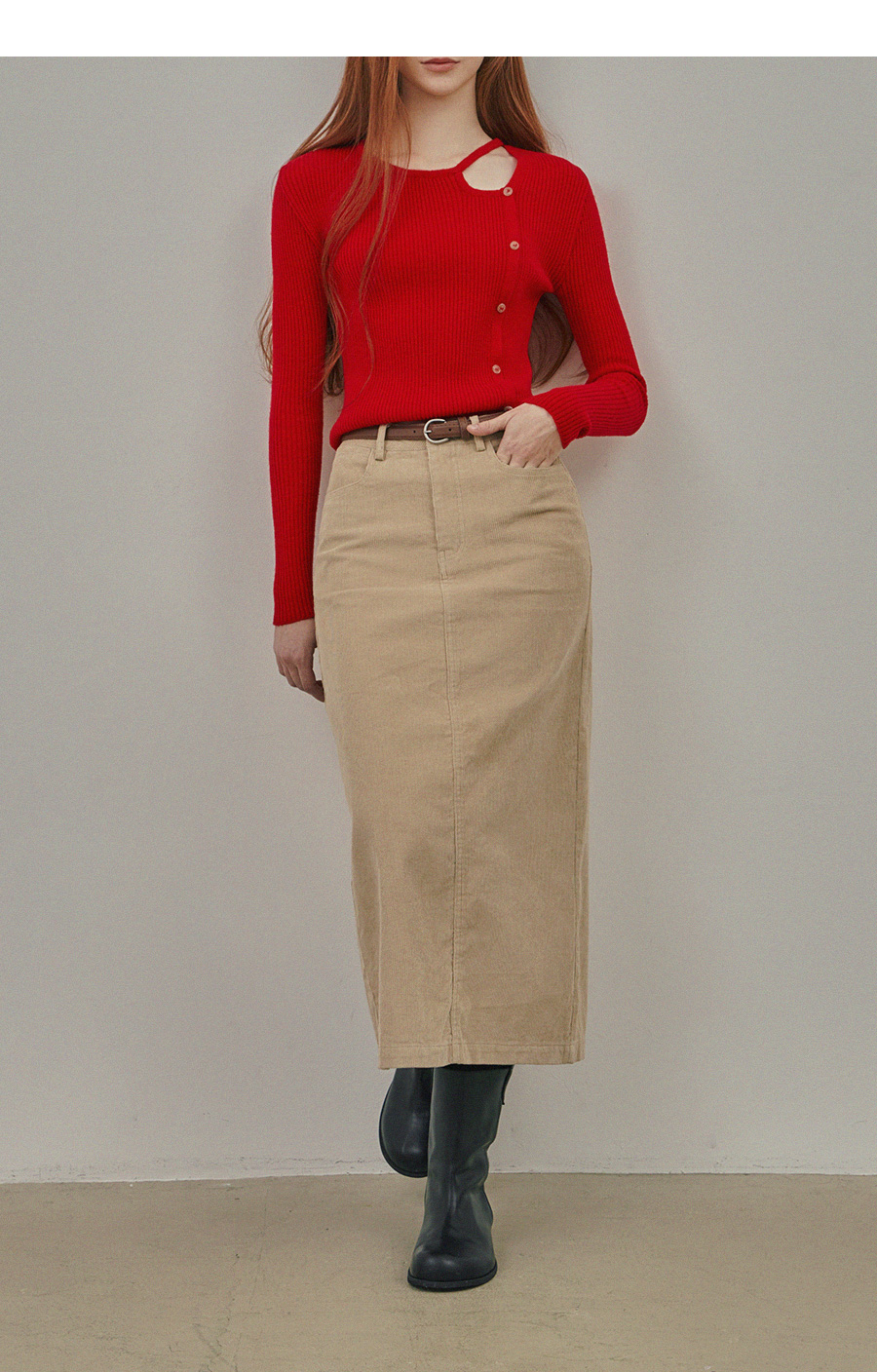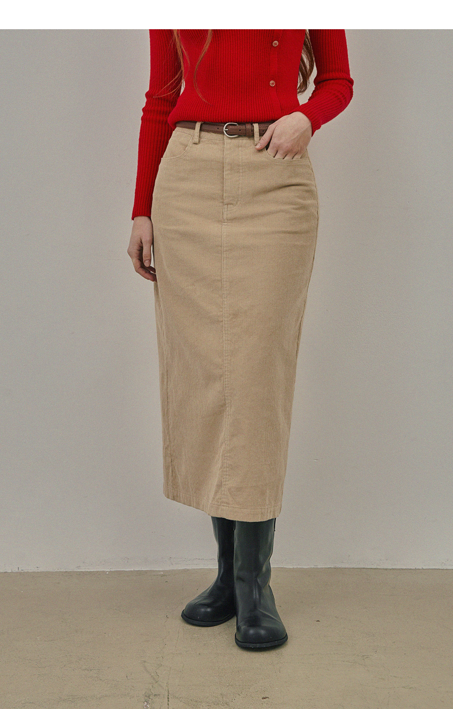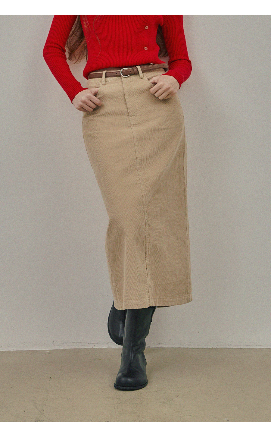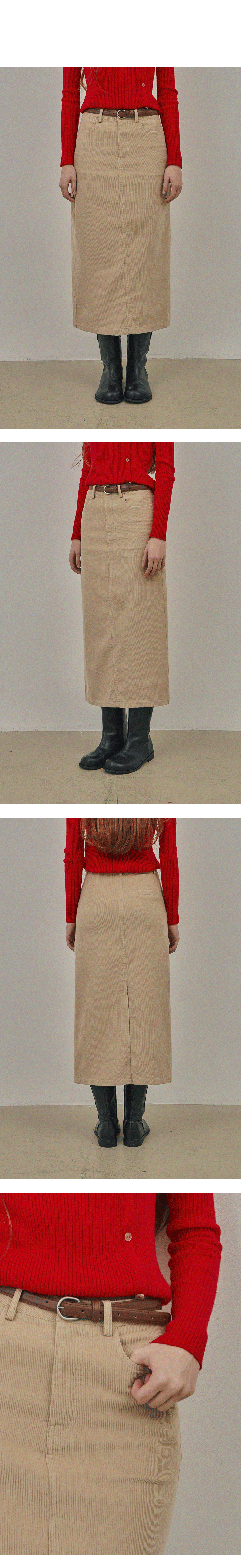 Pakoz Corduroy Long Skirt(Belt Set)