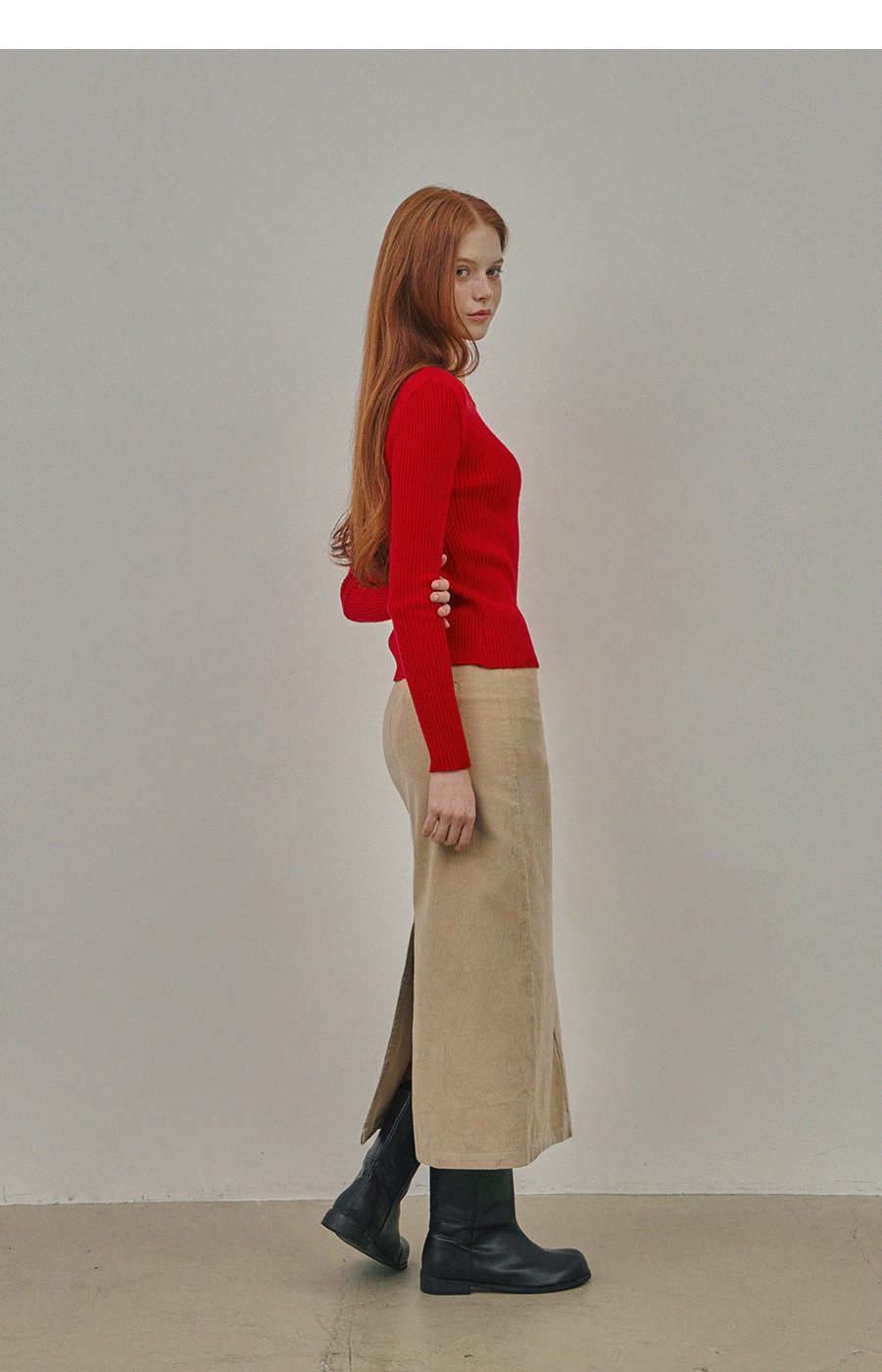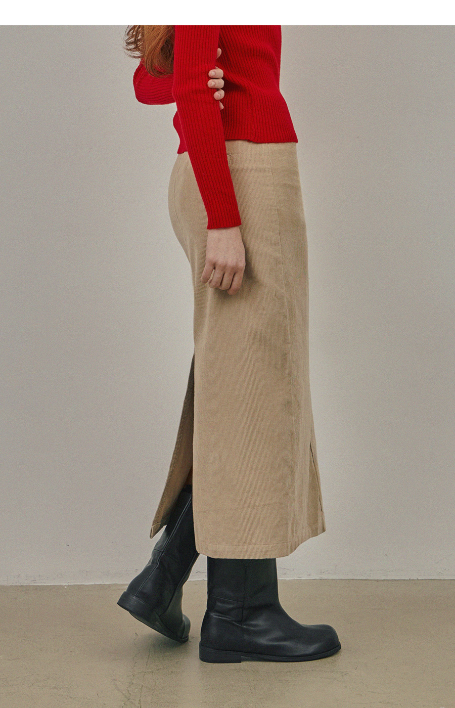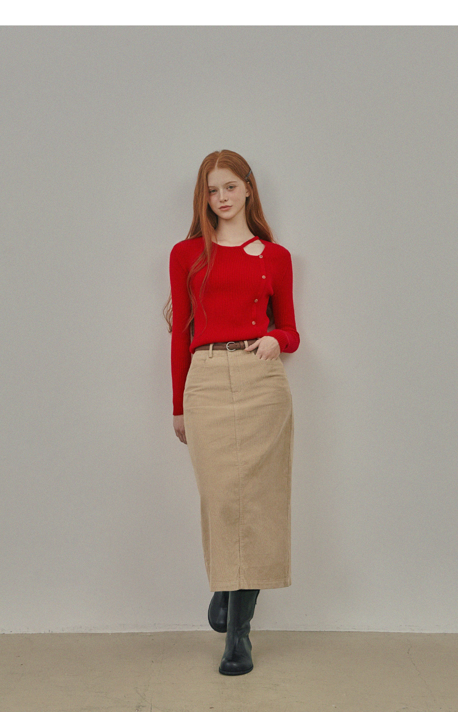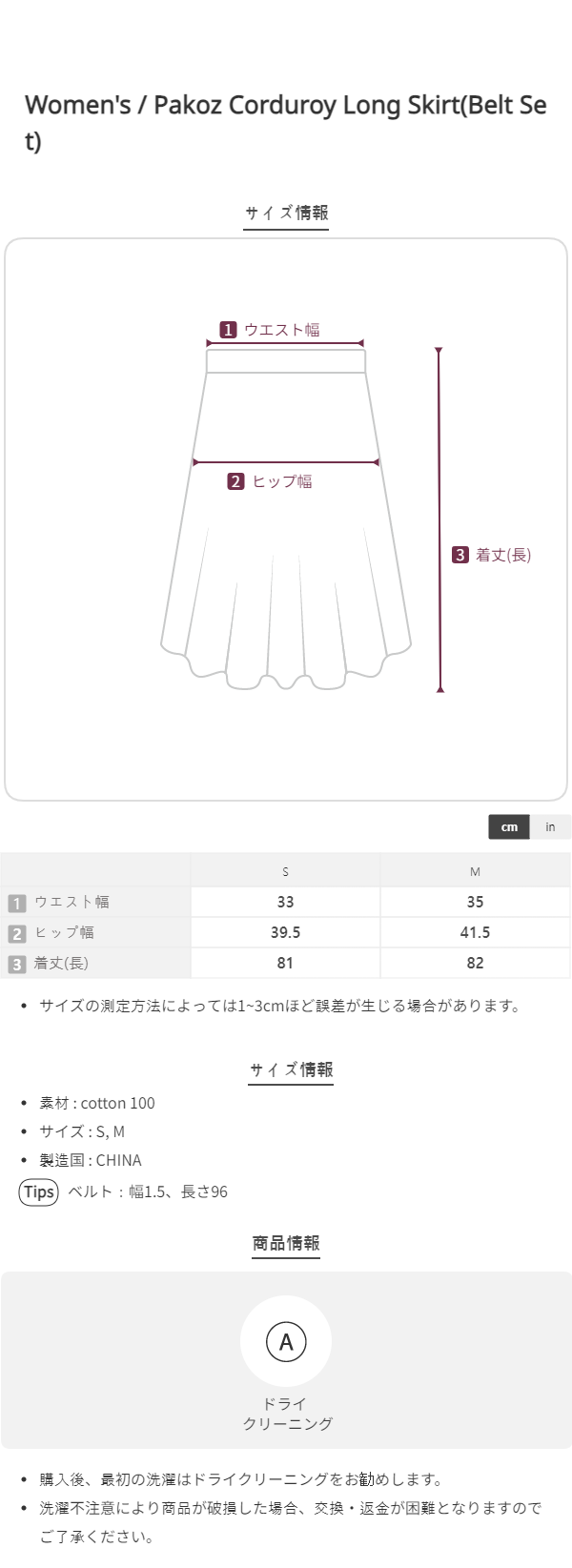 Pakoz Corduroy Long Skirt(Belt Set)