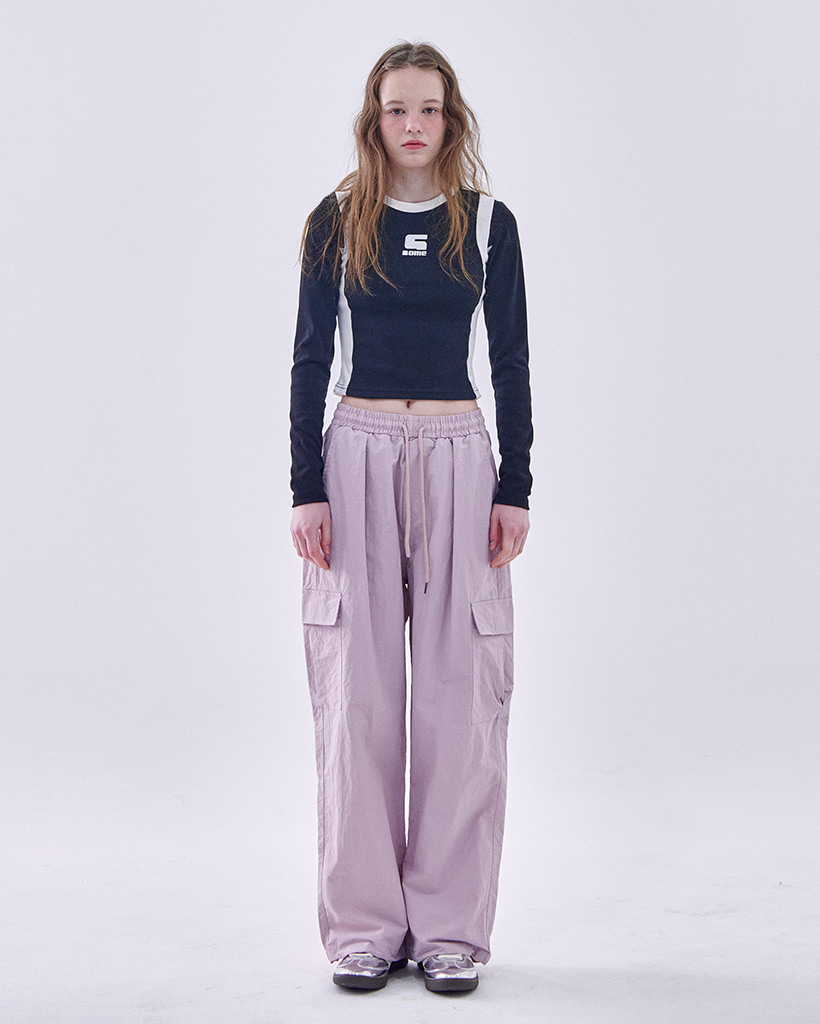 ポケットカーゴナイロンツーウェイストリングバンディングパンツ [ピンク]