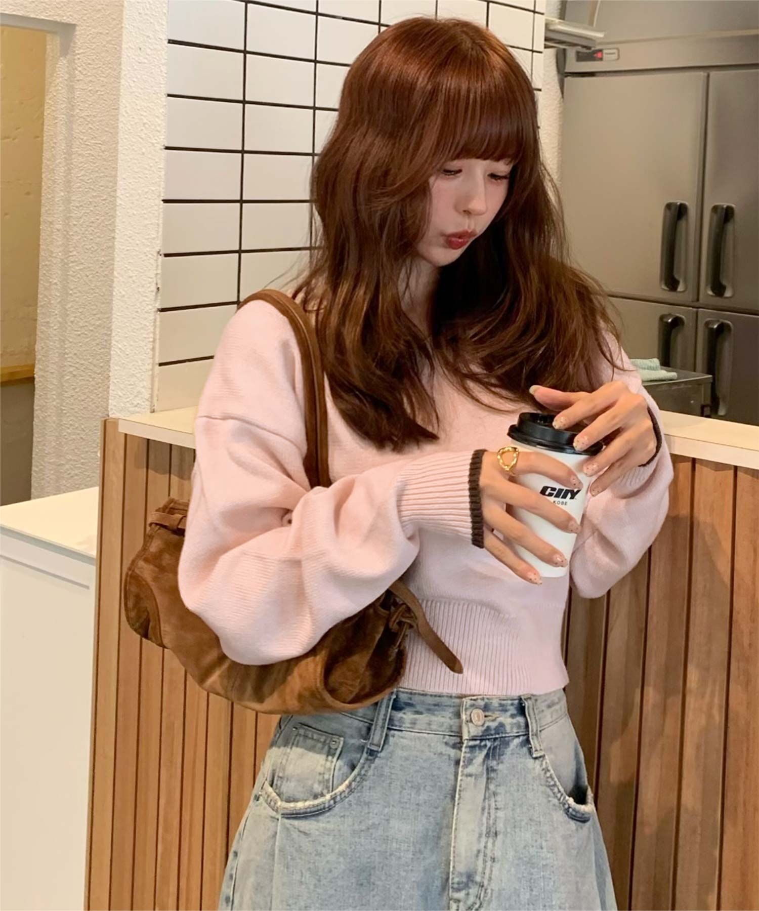 着用 / サイズ:M カラー:ライトピンク、ブラウン、ボーダー