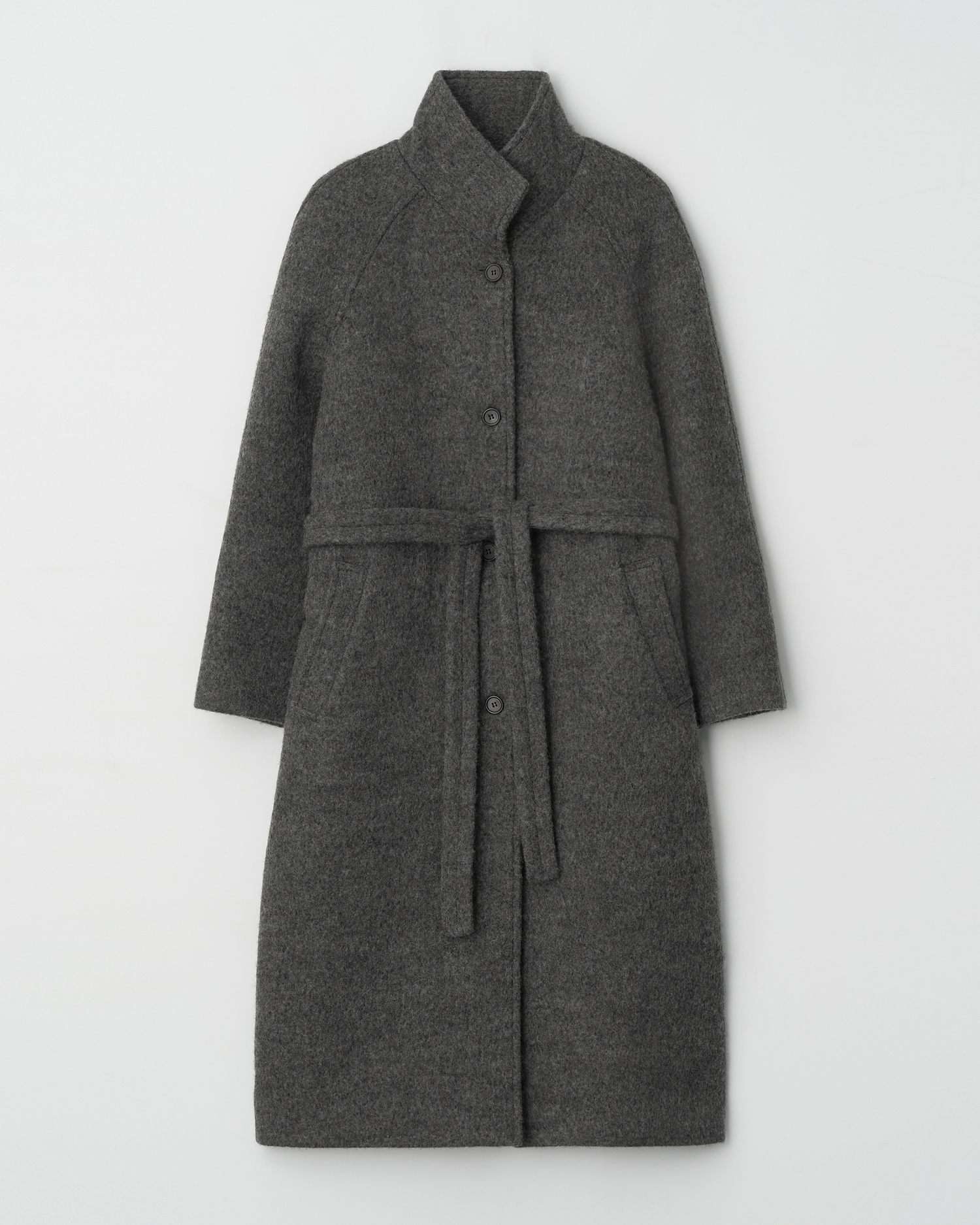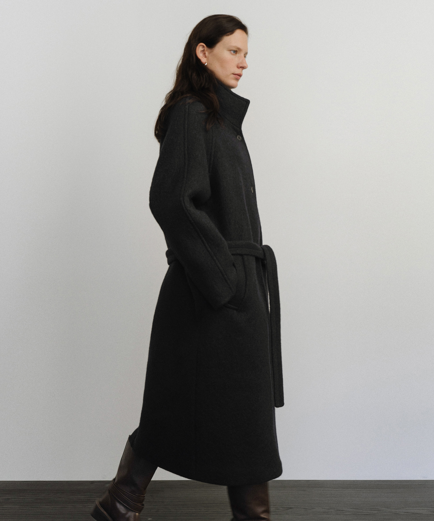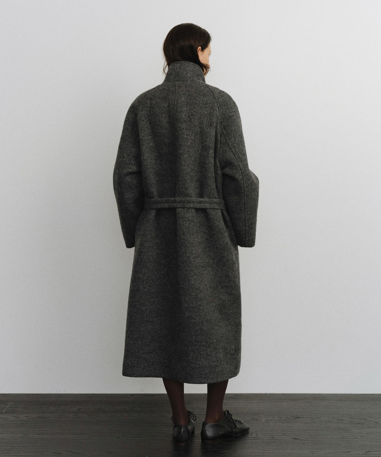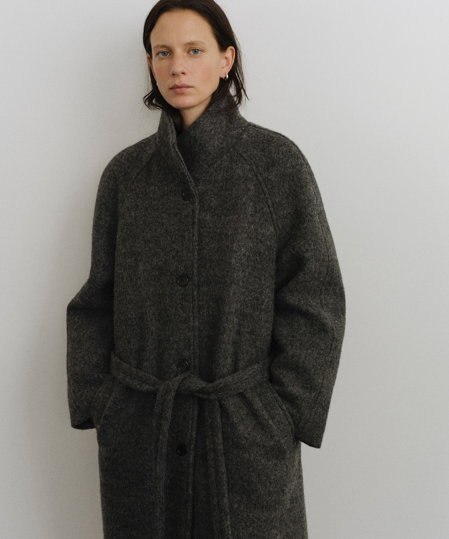 - ふんわりとしたウール混紡素材で仕立てられ、十分な保温性を備えています。過度なボリューム感을 줄이기 위해軽量キルティングの裏地を加え、暖かさは 유지しながら도スリムなシルエットを保ちます。
