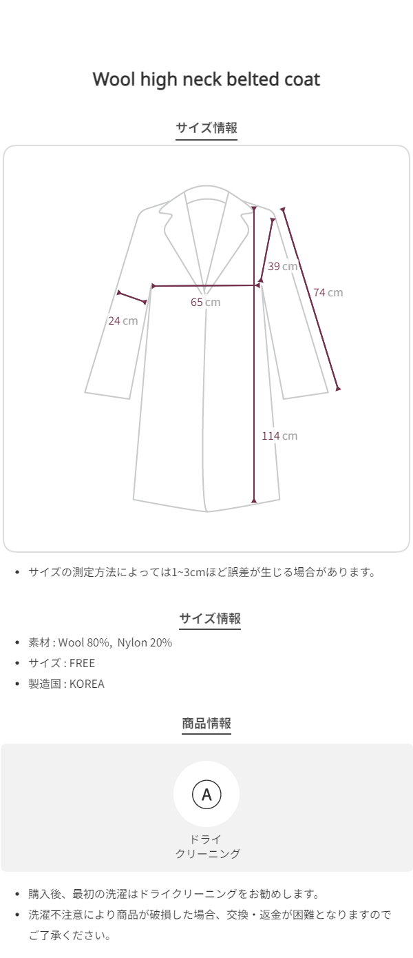 - 取り外し可能なウエストベルトが付属しており、ゆるく結んだり自然に垂らしたりと、多様なスタイリングが可能。クラシックな雰囲気の中에서도柔らかなシルエット変化を楽しめるアイテムです。