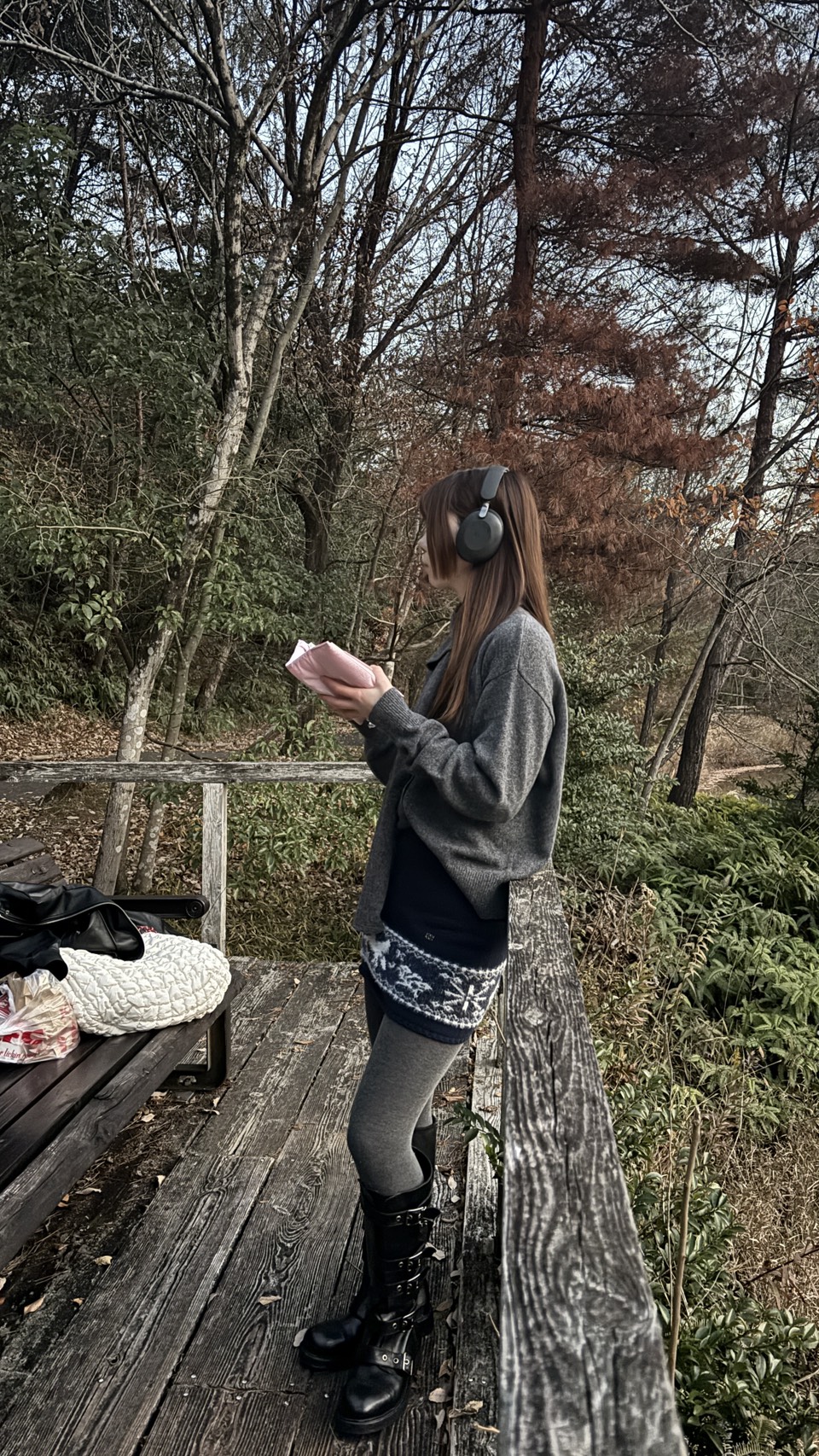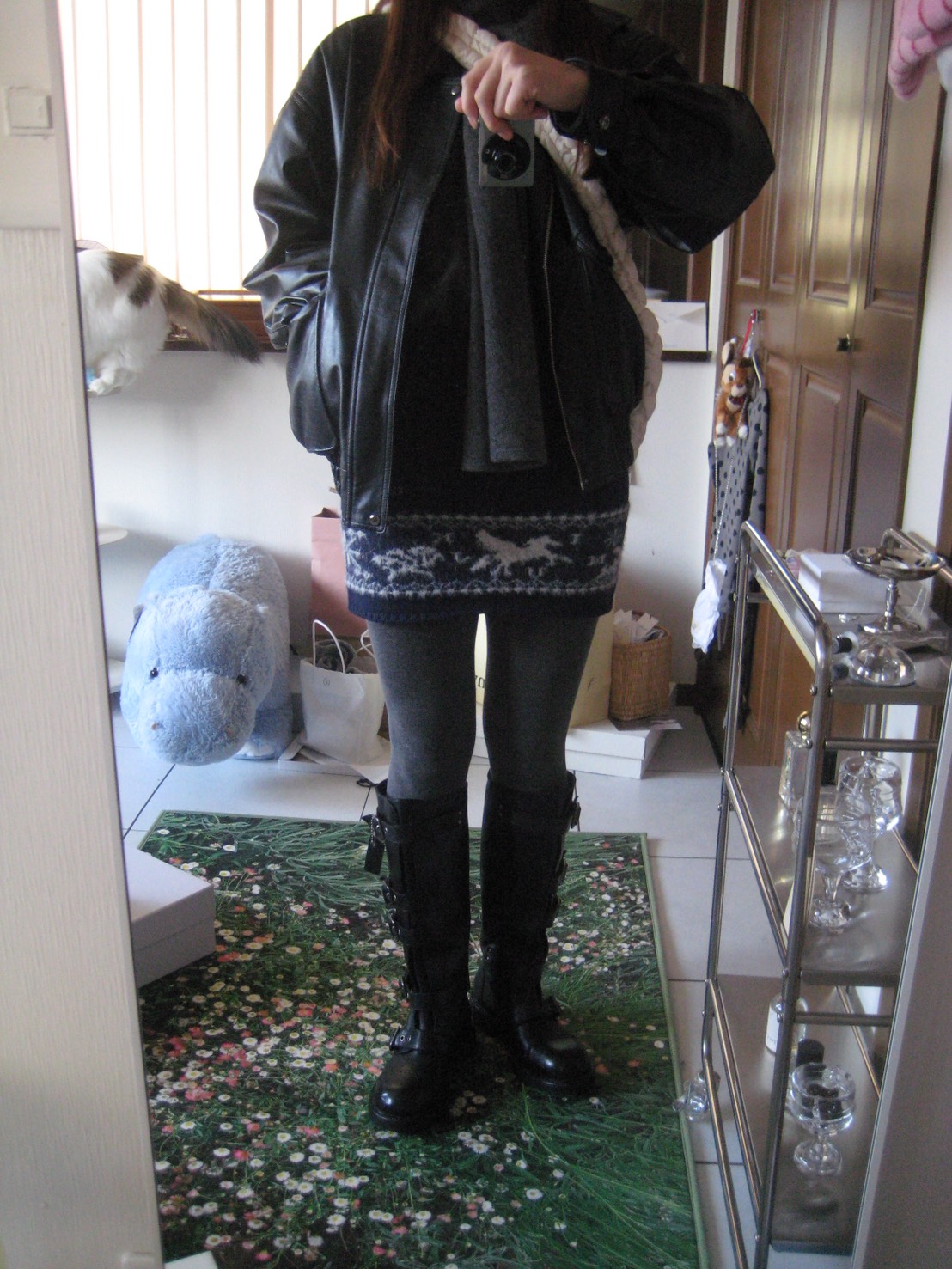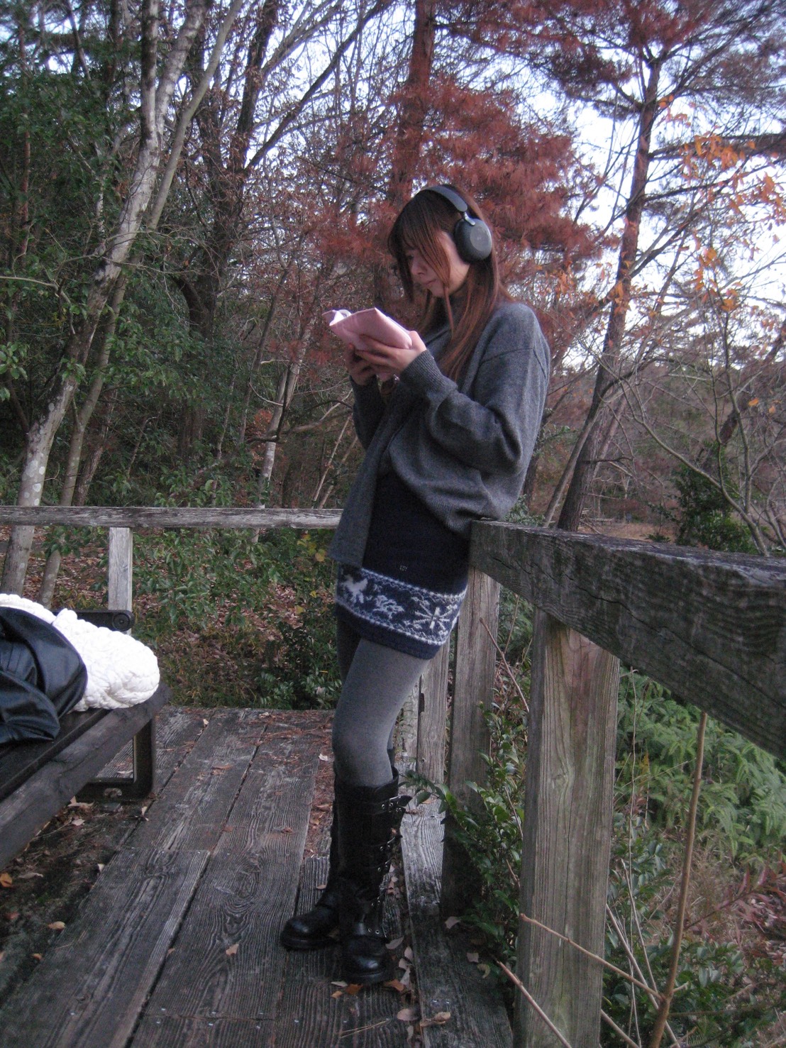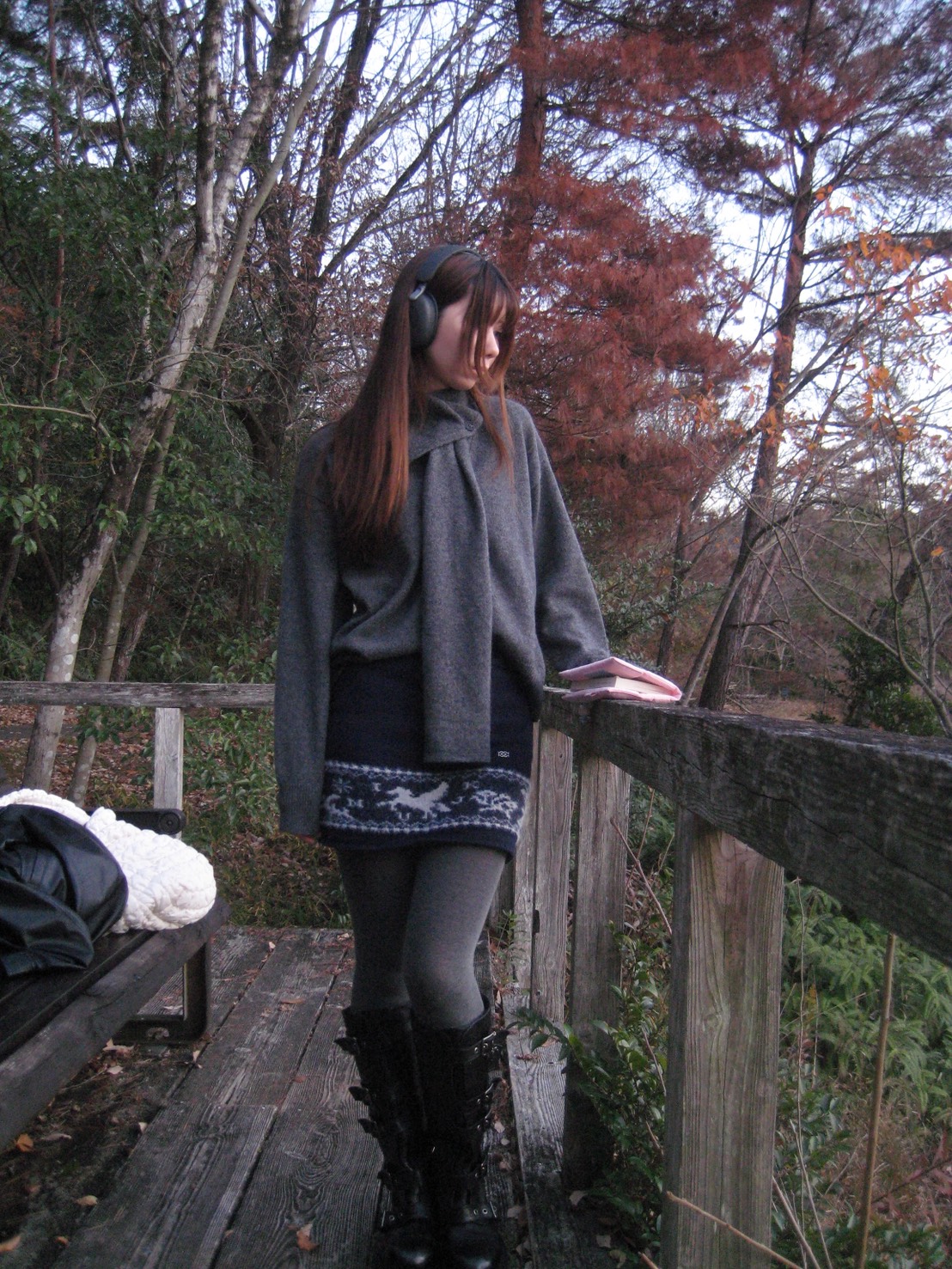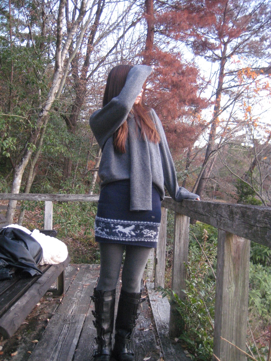 マフラーは片側に垂らして自然に落とすことで、おしゃれに演出可能です。
