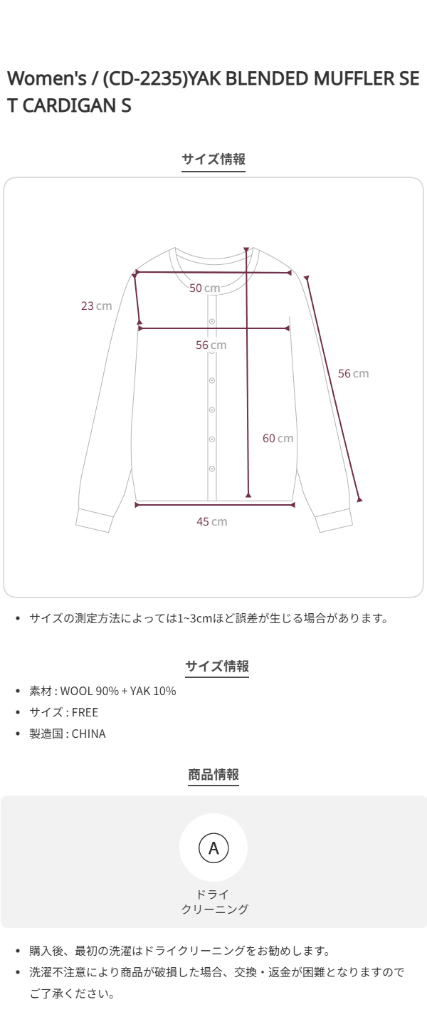 [yu x Atelier Nain] (CD-2235)YAK BLENDED MUFFLER SET CARDIGAN S