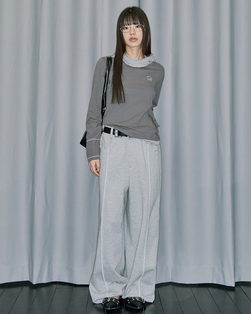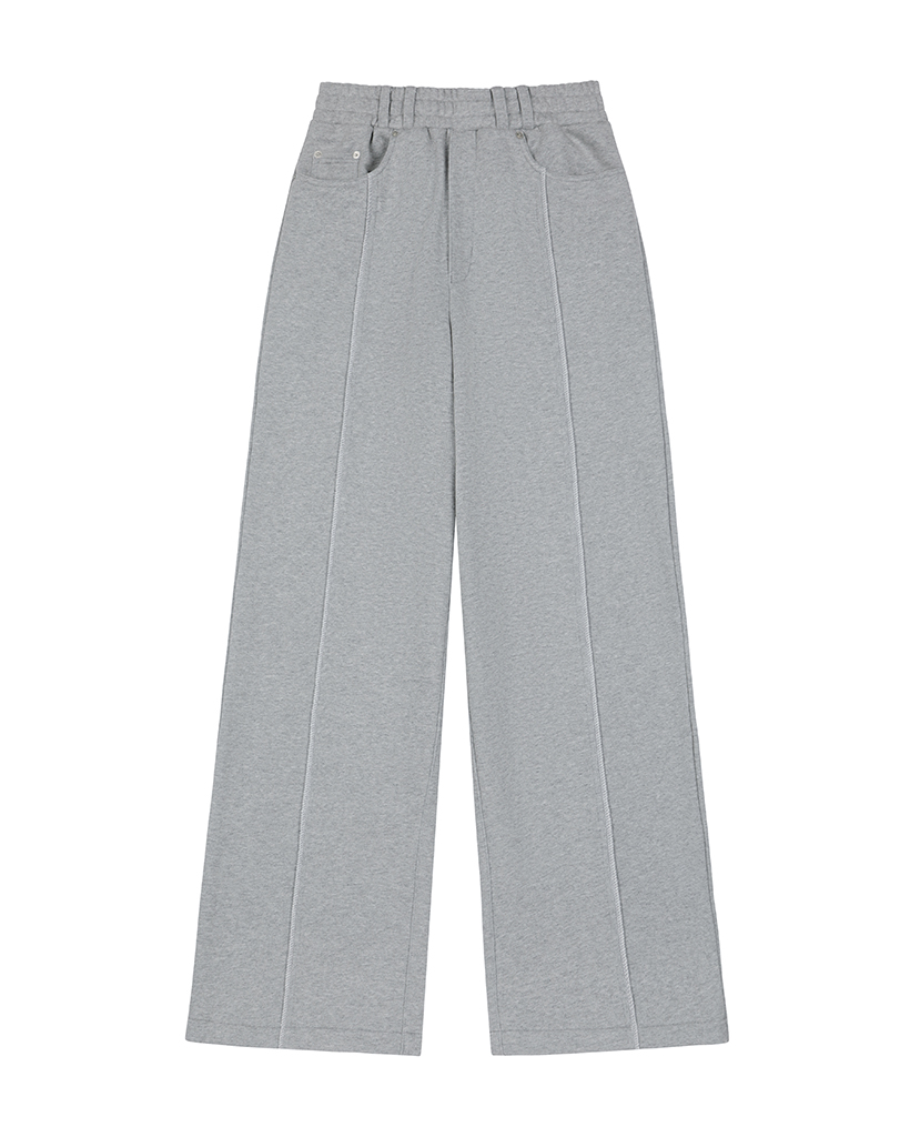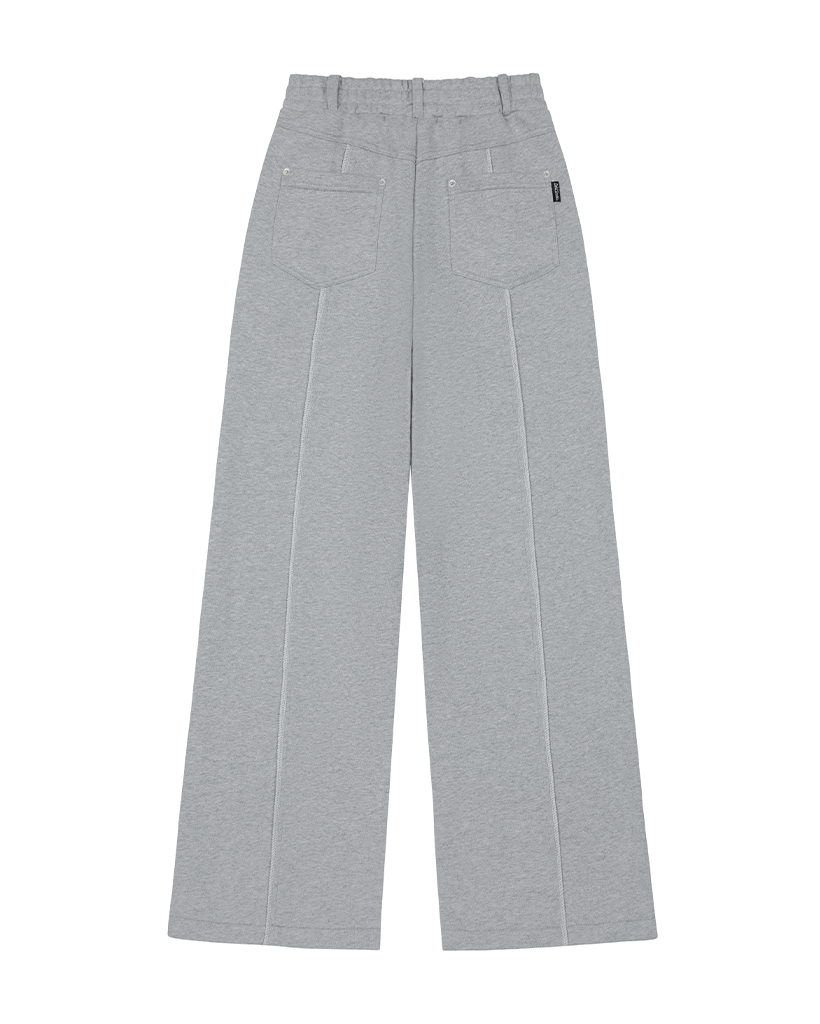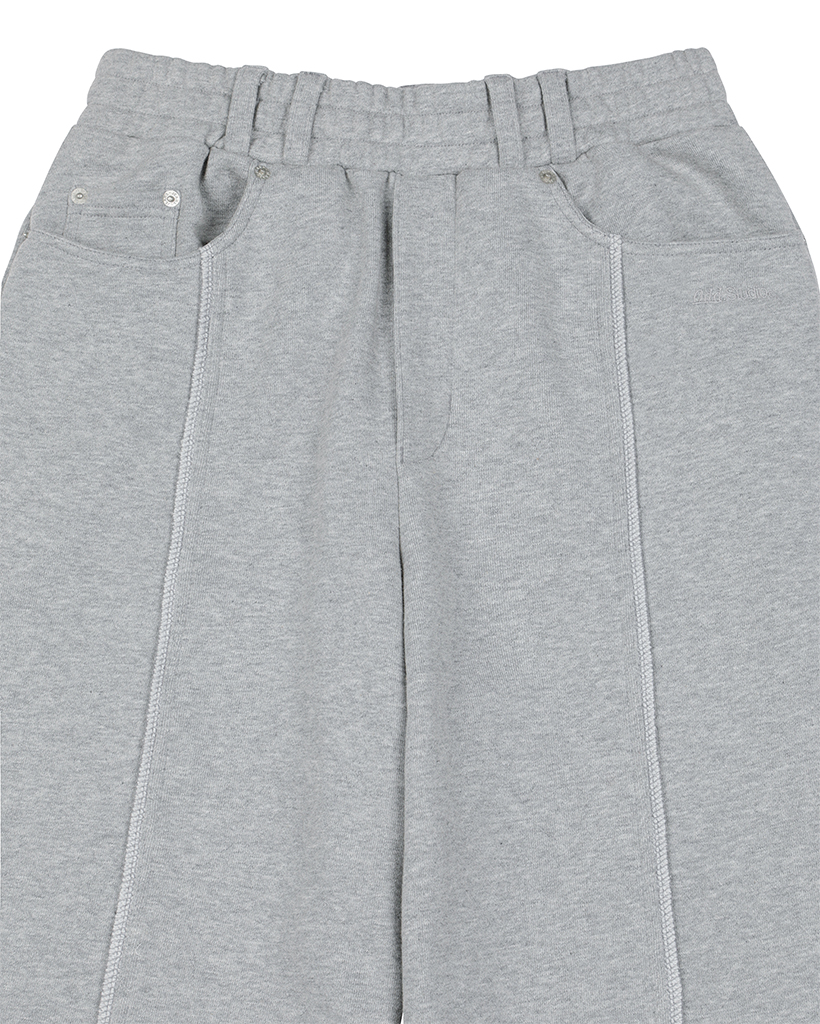 Cover Stitch Belt Wide Sweat Pants - MELANGE GRAY