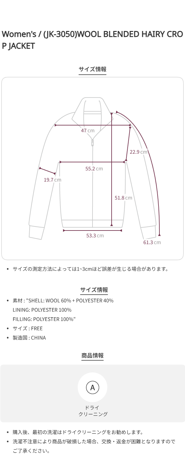 (JK-3050)WOOL BLENDED HAIRY CROP JACKET