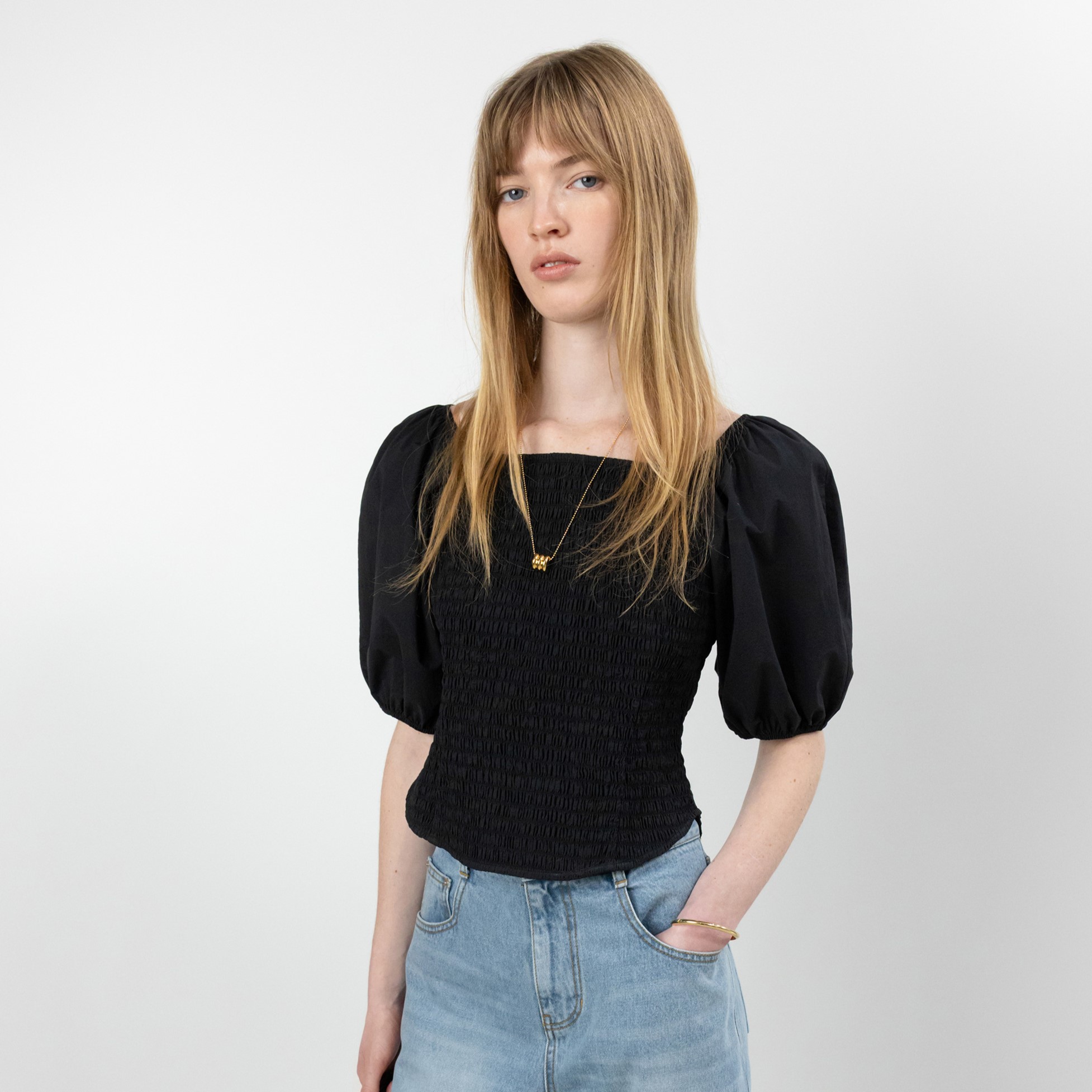 Puff Sleeve Square-neck Blouse
