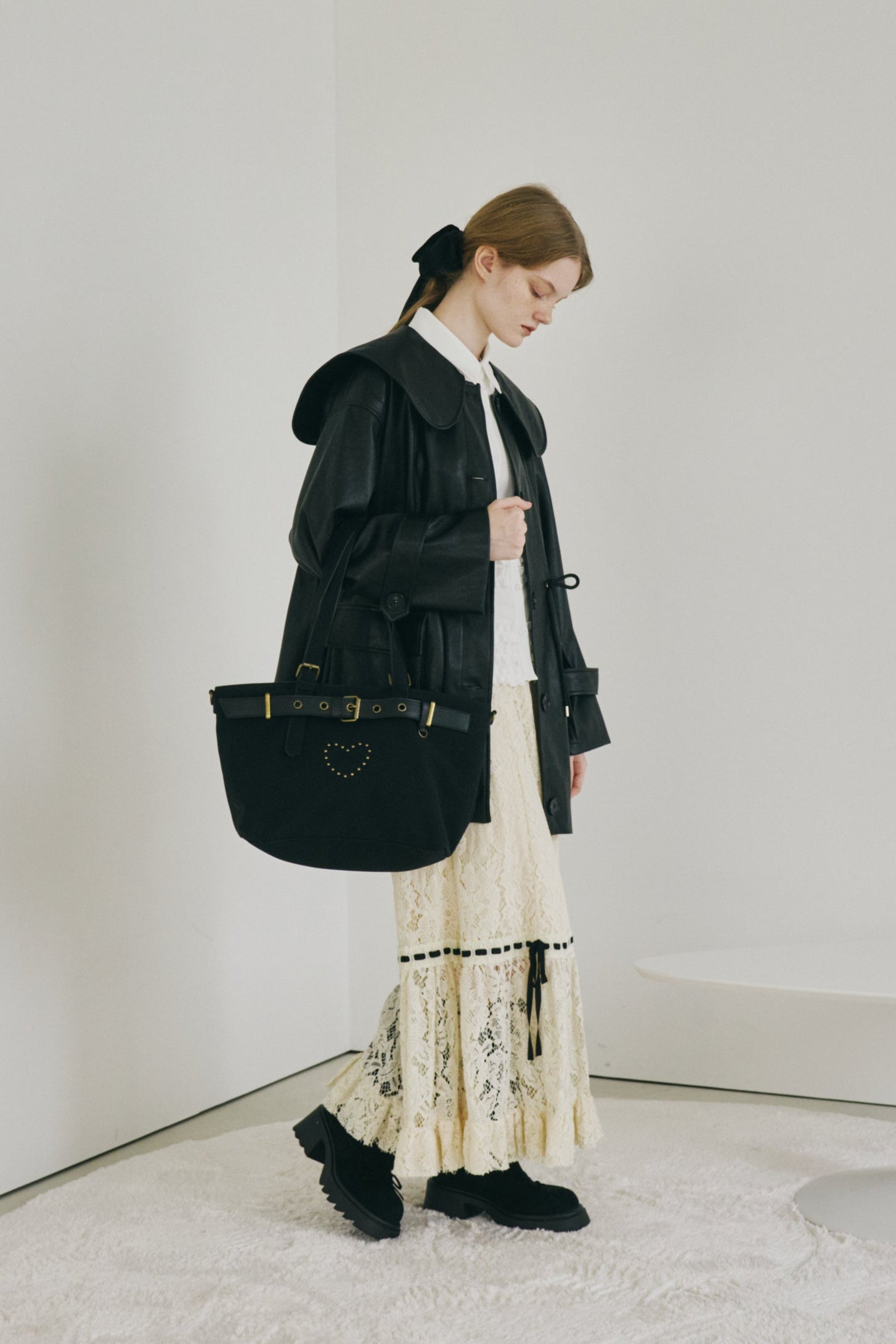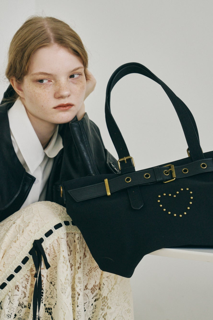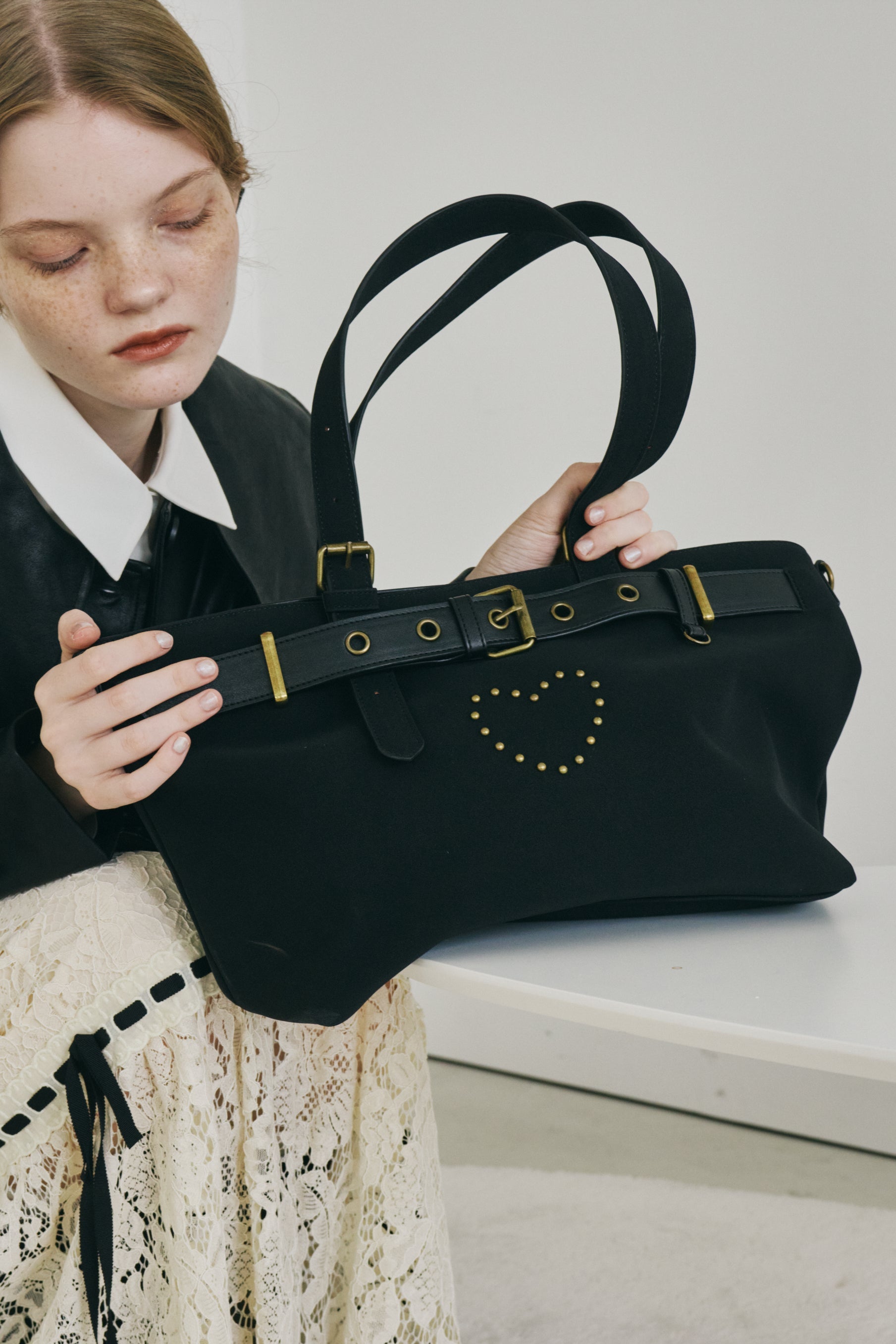 ハート×ベルトで遊び心を効かせたスエード調バッグ