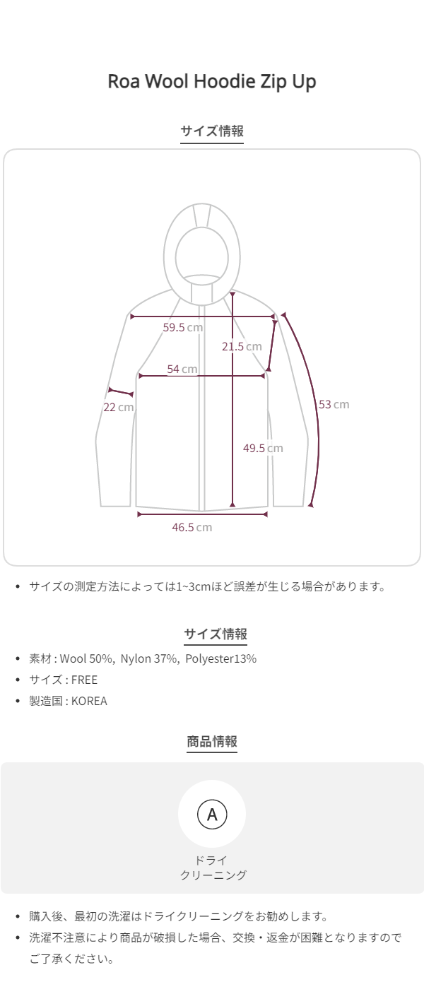 柔らかなタッチで心地よいムードが感じられる Roa Wool Hoodie Zip Up(ロア ウール フーディー ジップアップ)です。