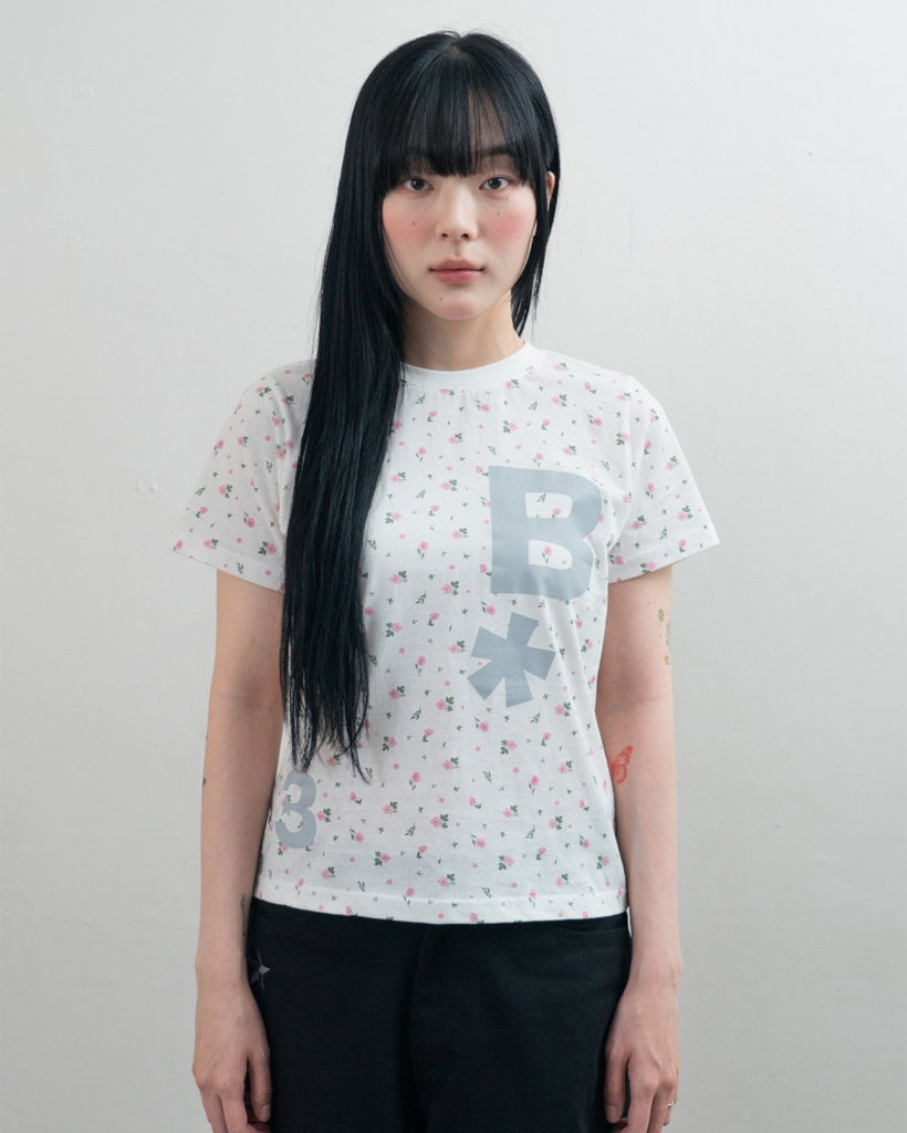 B logo スリムフィットTシャツ【フラワーホワイト】