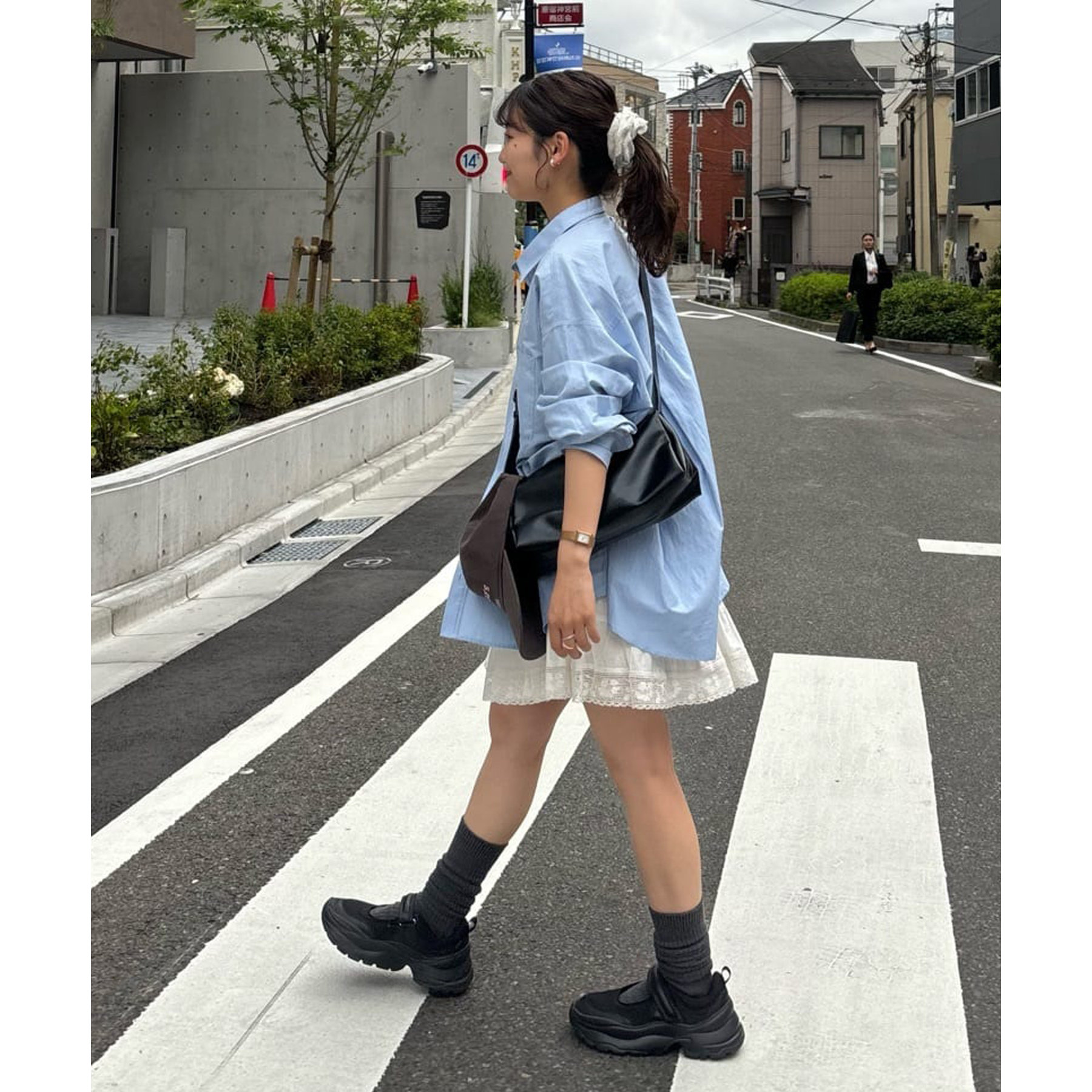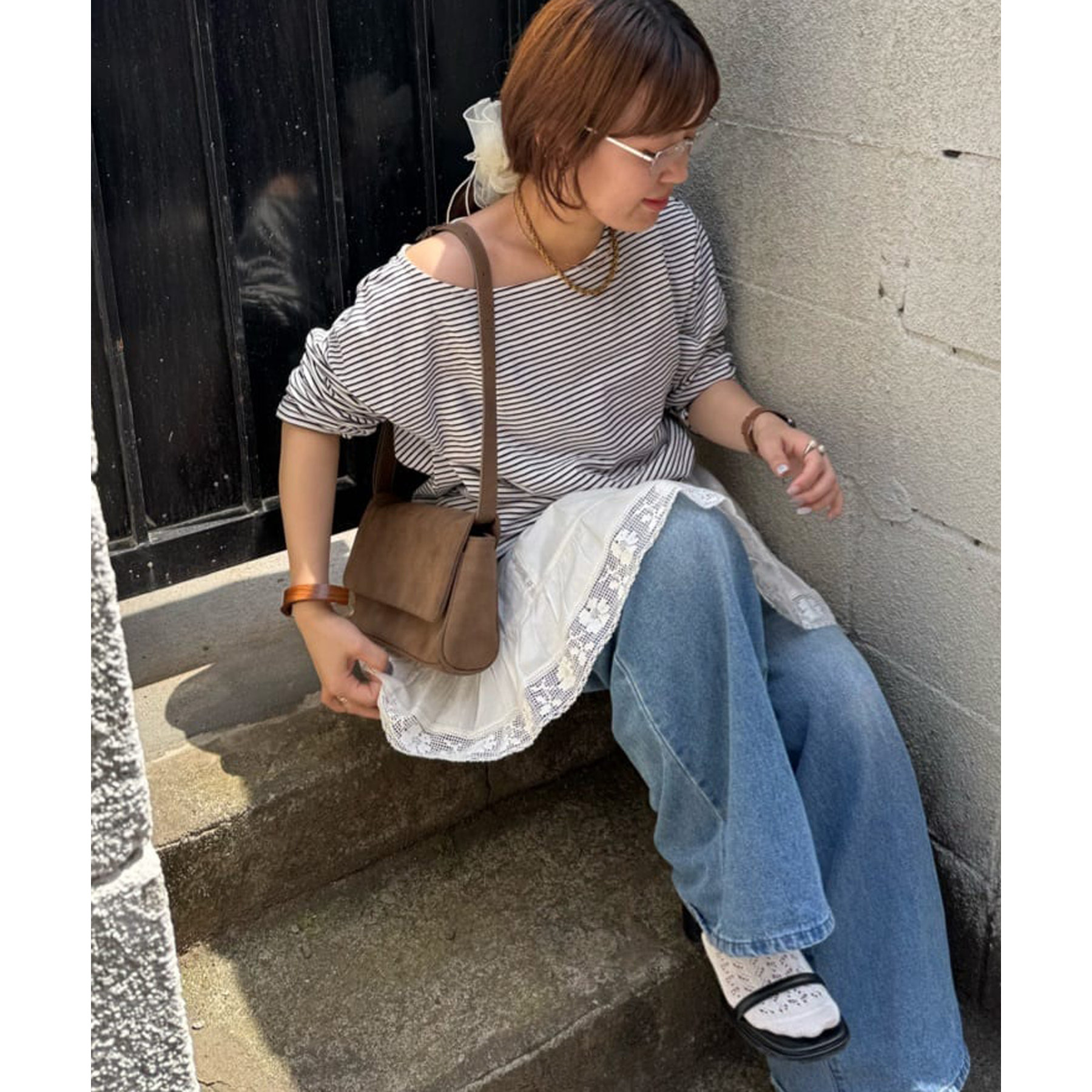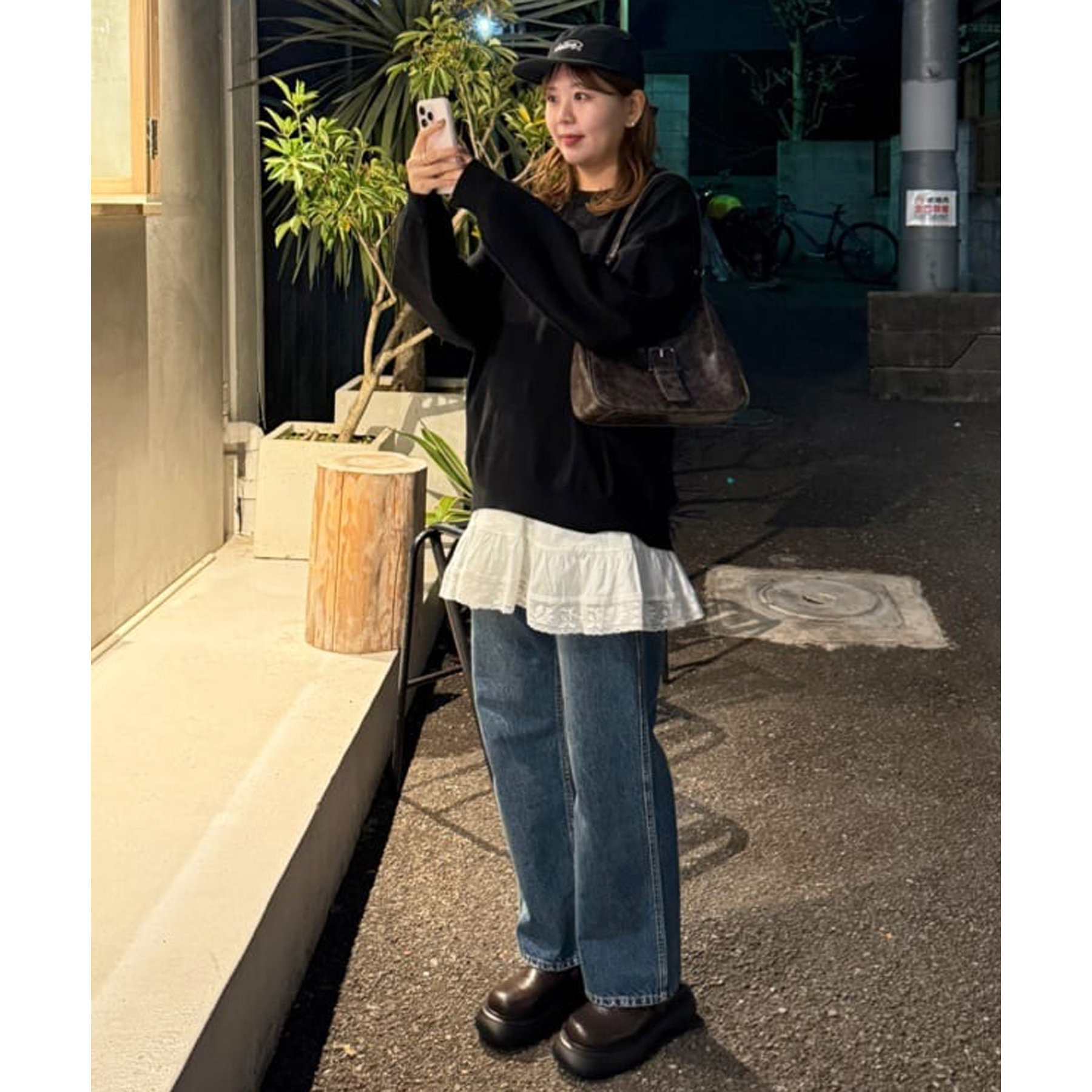 ニットやスウェット、薄手のカーディガン、Tシャツなどシーズン問わず幅広いアイテムと合わせることができるので、ロングシーズン活躍します〇
