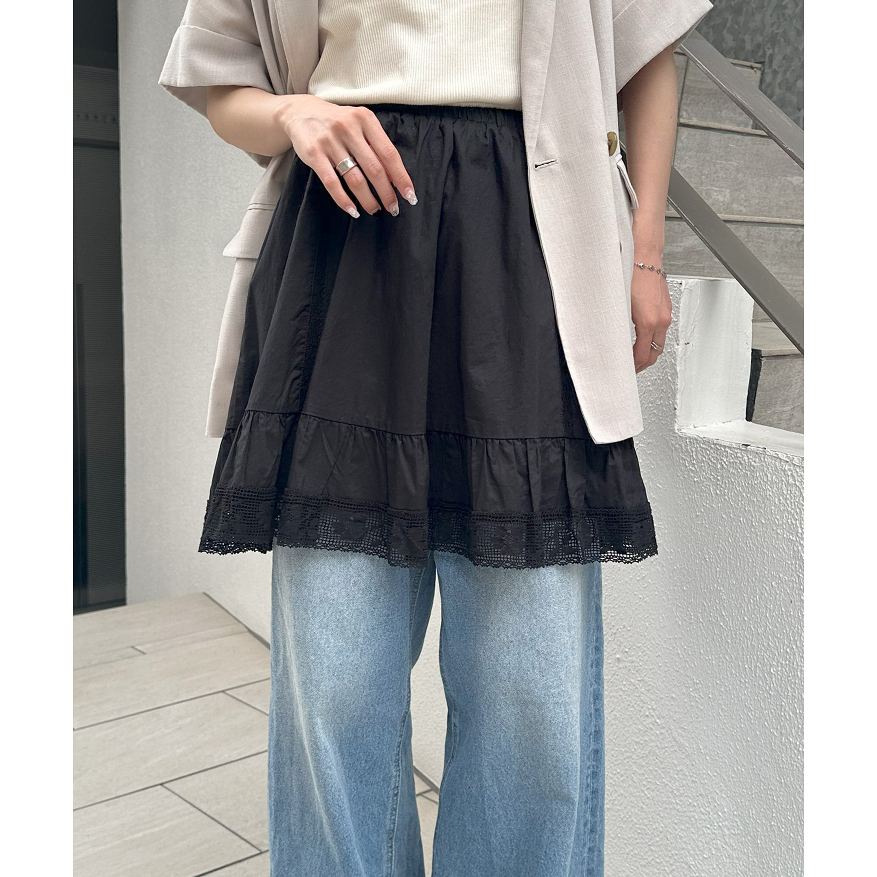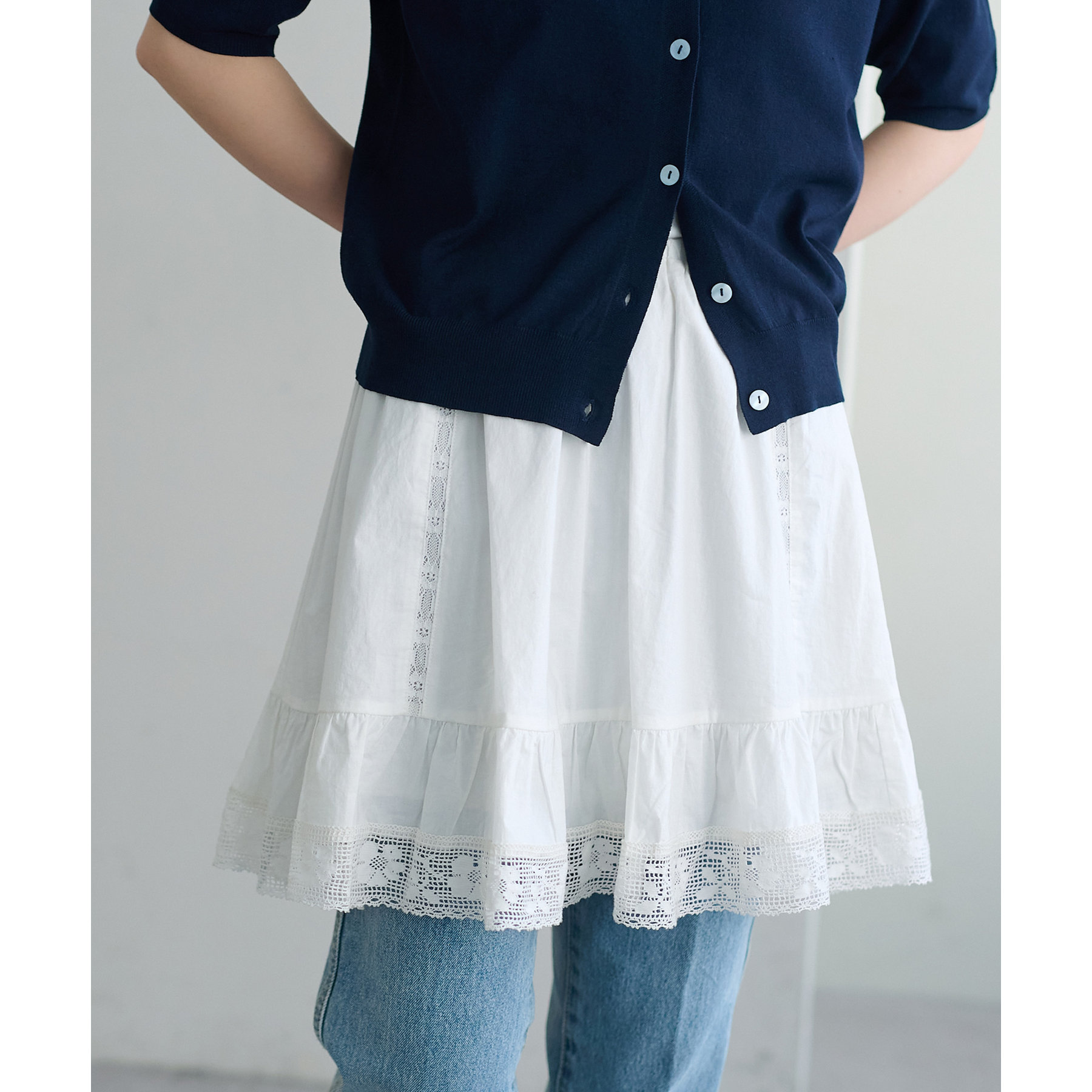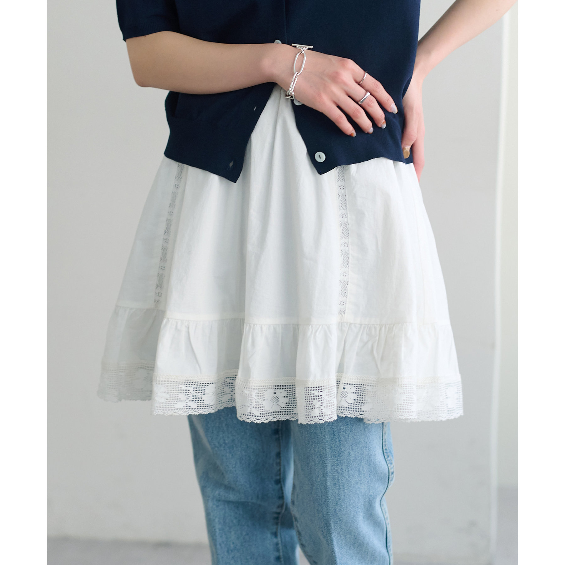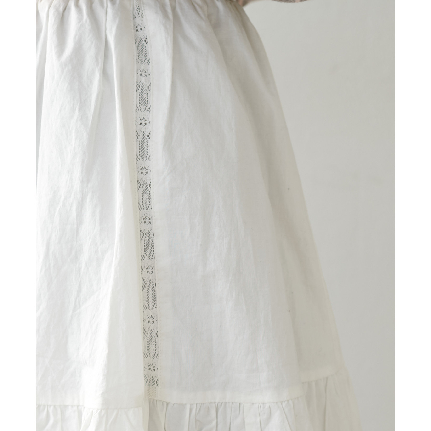 ふわりと広がるフレアなシルエットと、裾の繊細なレースのデザインが華やかさをプラス〇