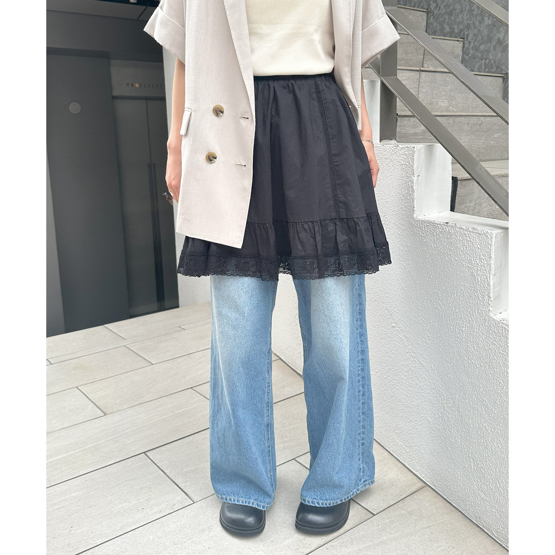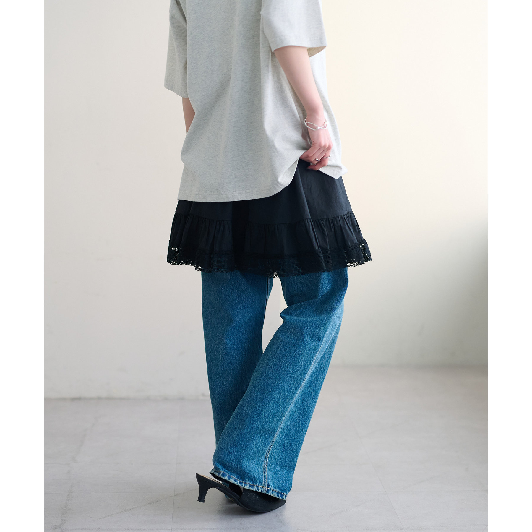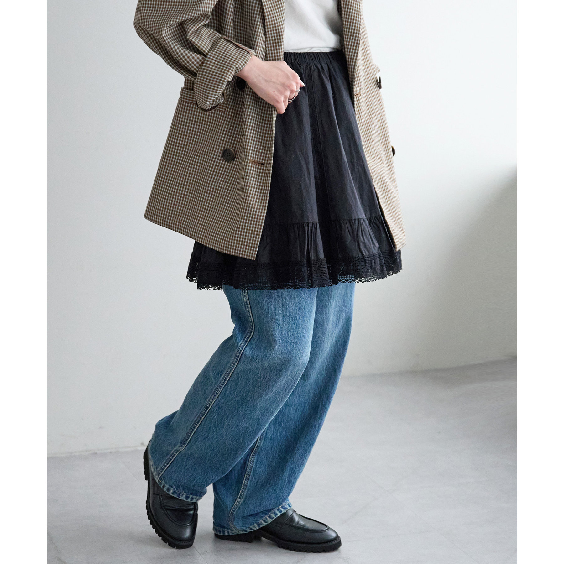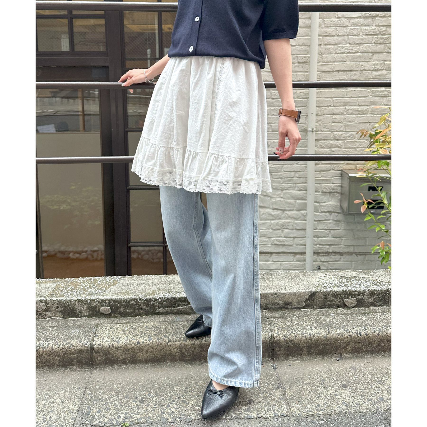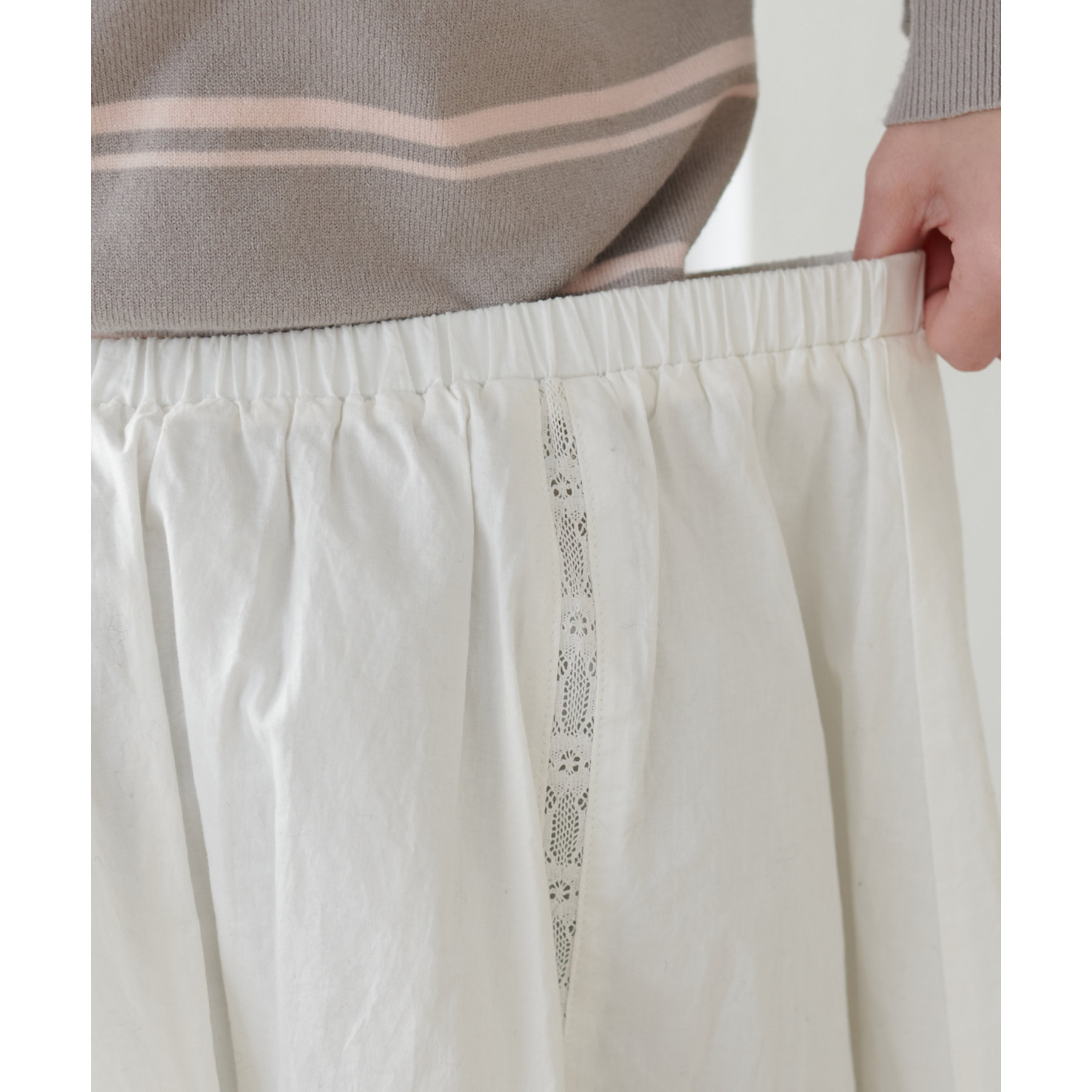 ふわりと広がるフレアなシルエットと、裾の繊細なレースのデザインが華やかさをプラス〇