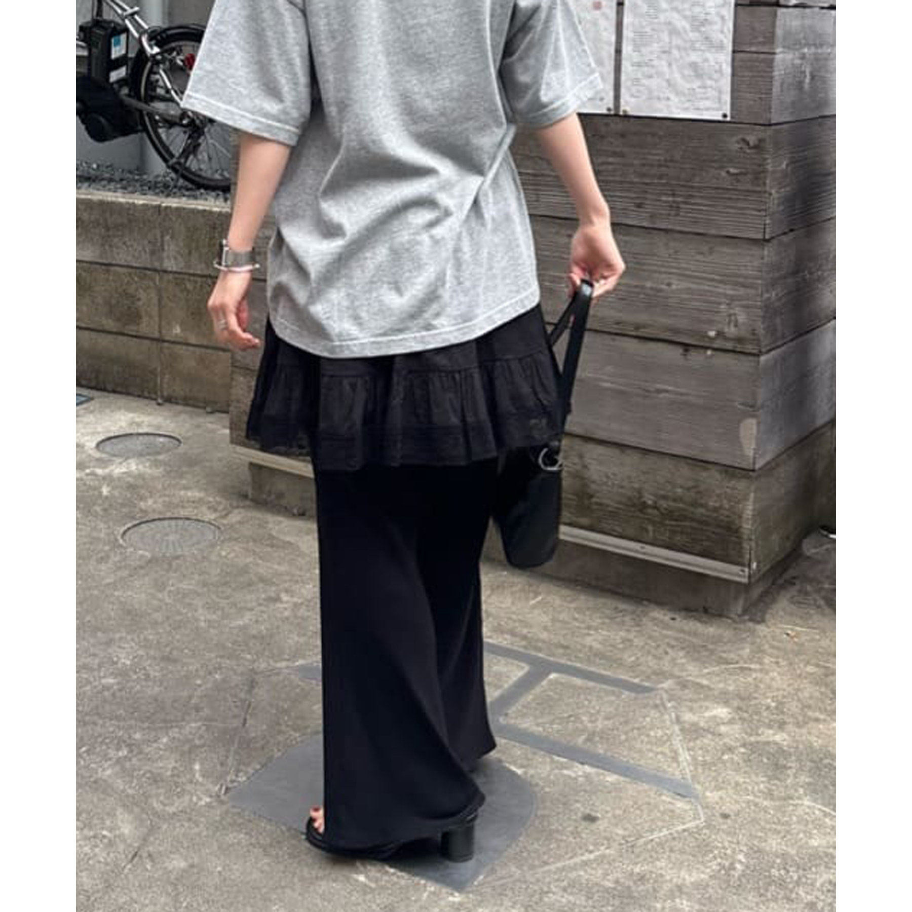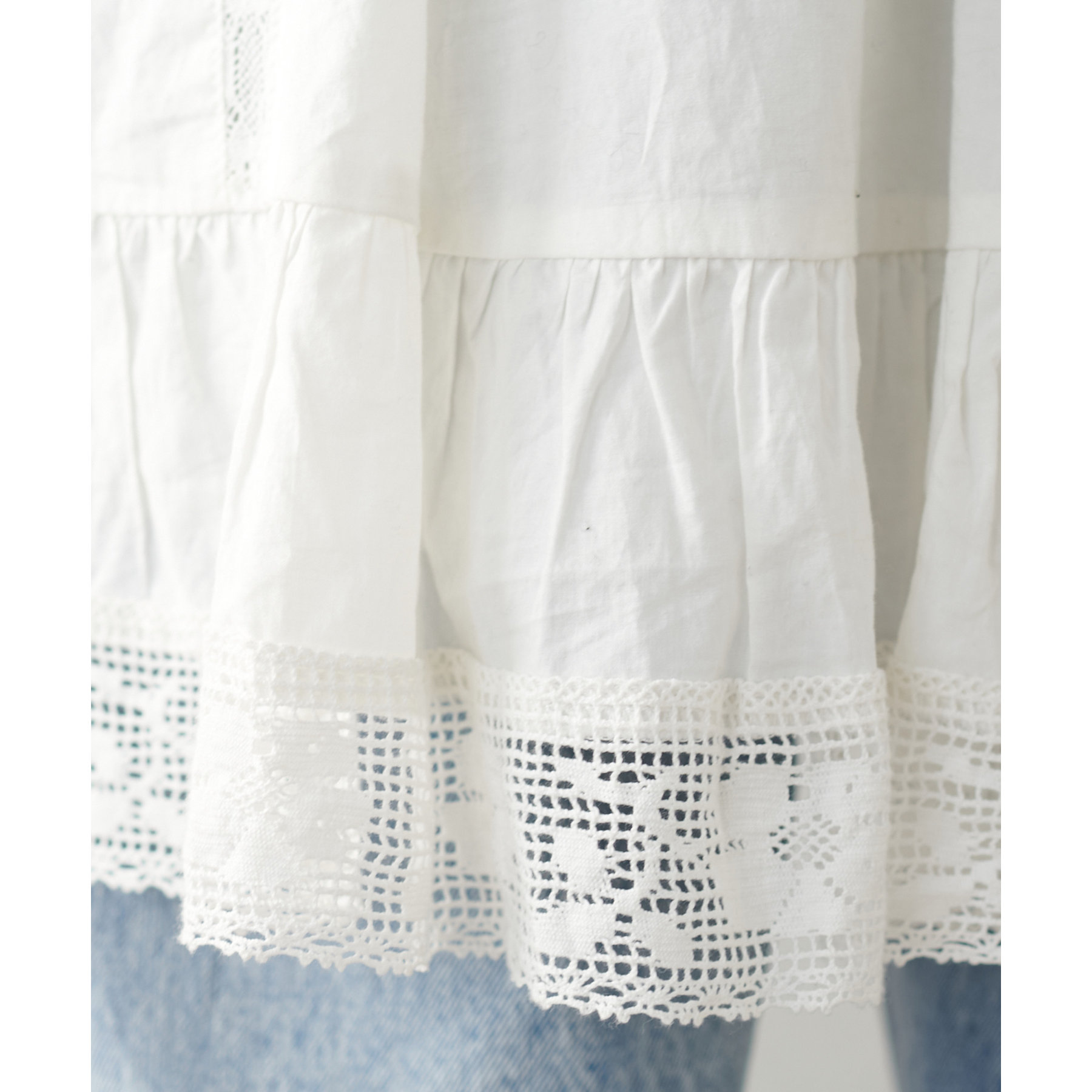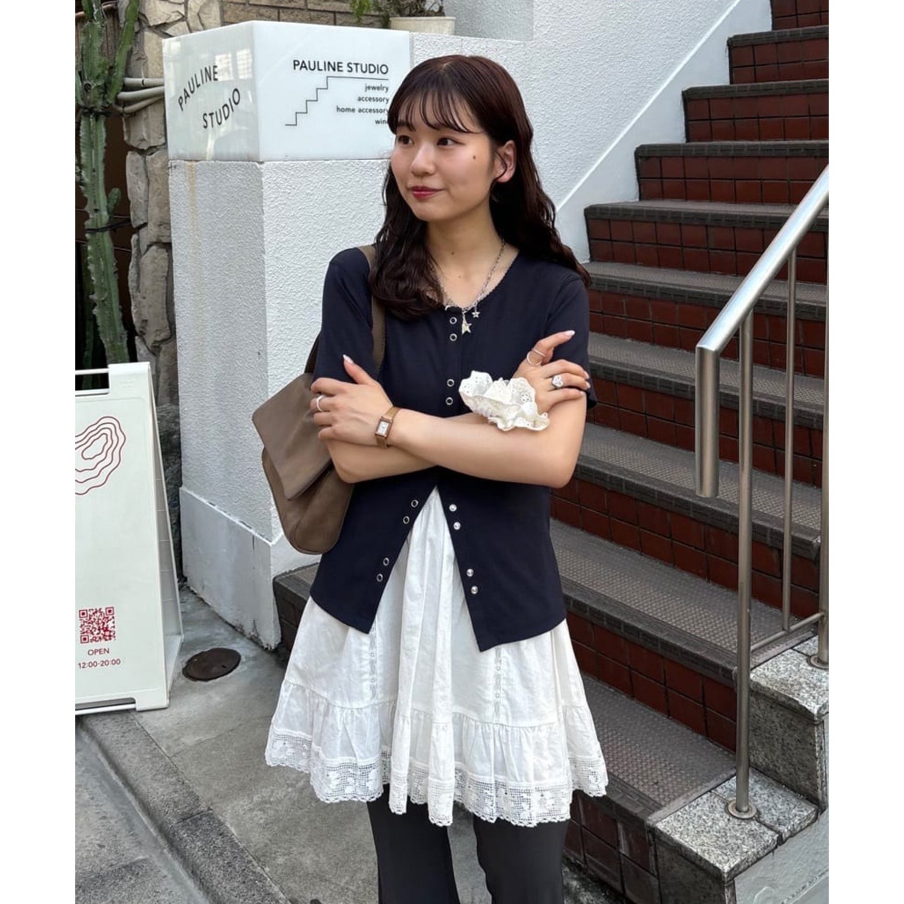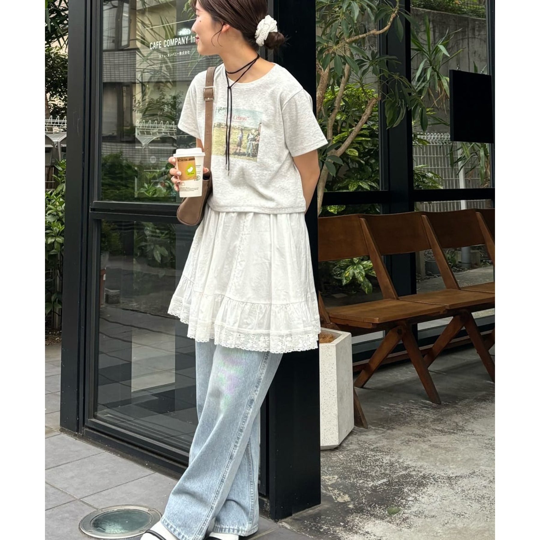 ふわりと広がるフレアなシルエットと、裾の繊細なレースのデザインが華やかさをプラス〇