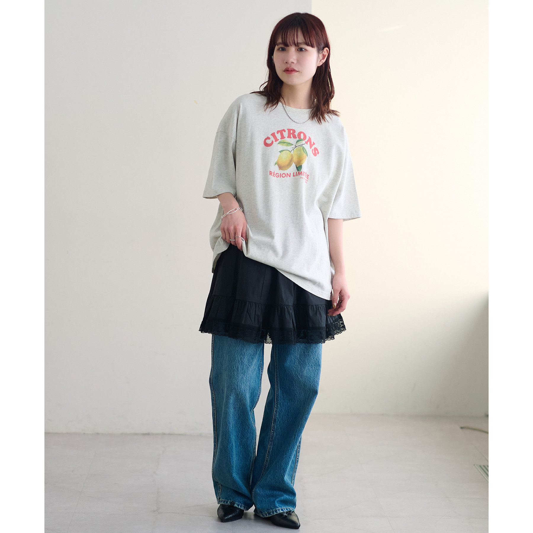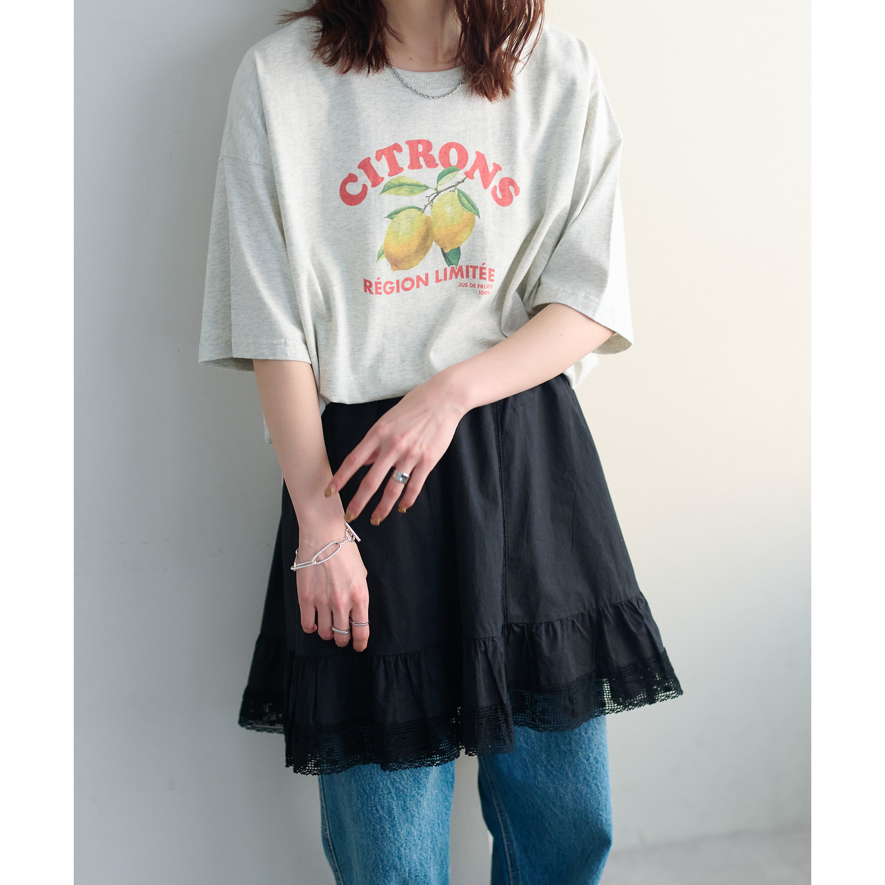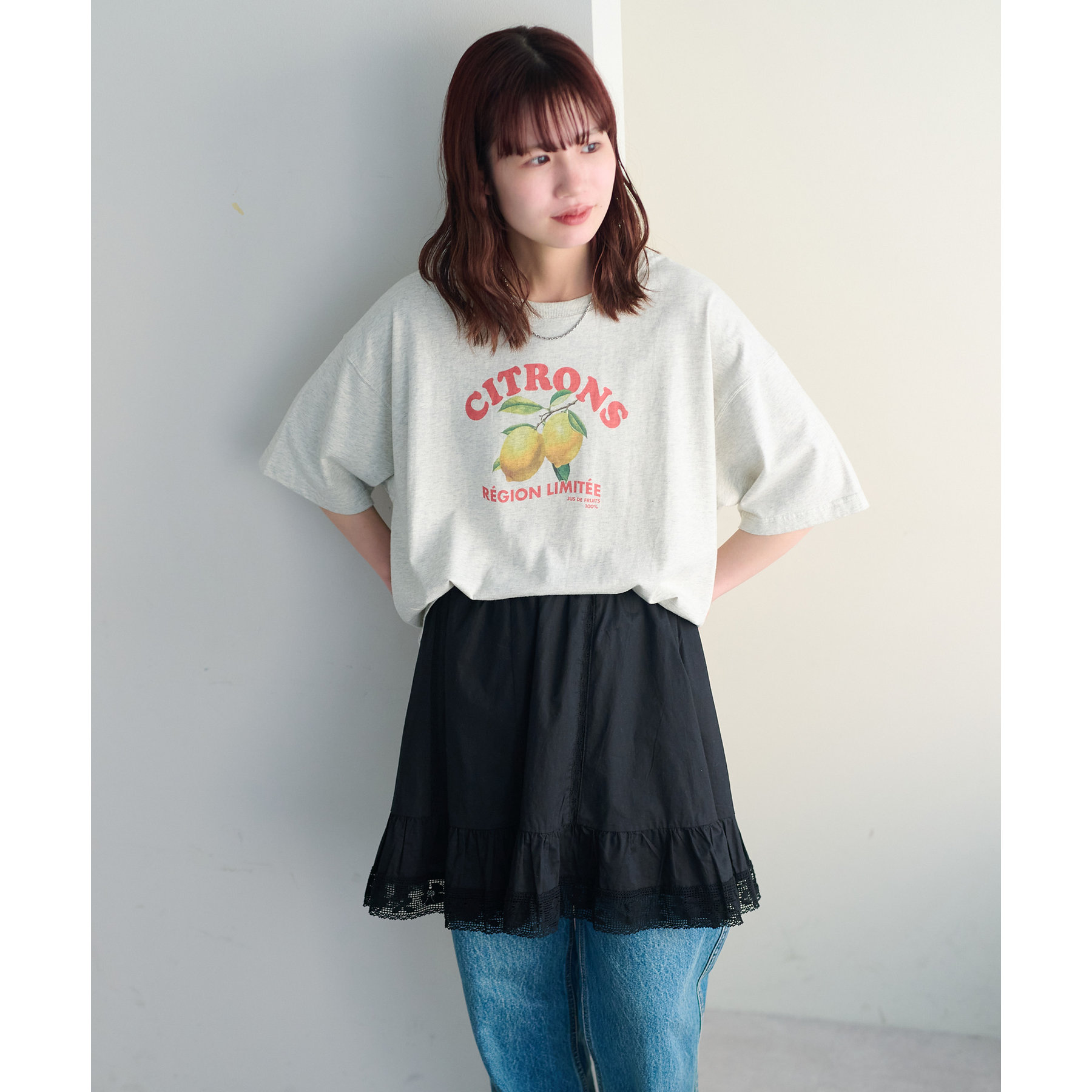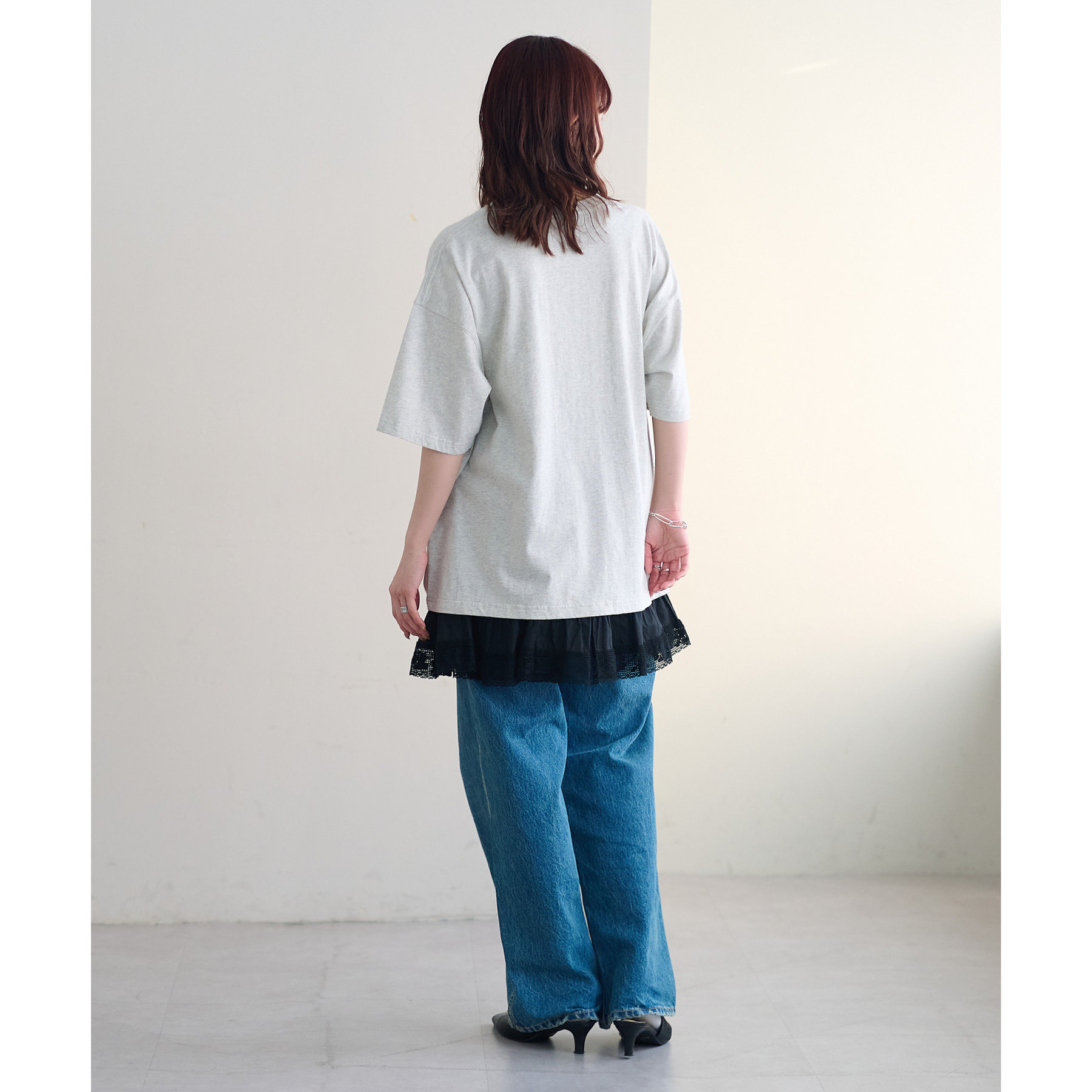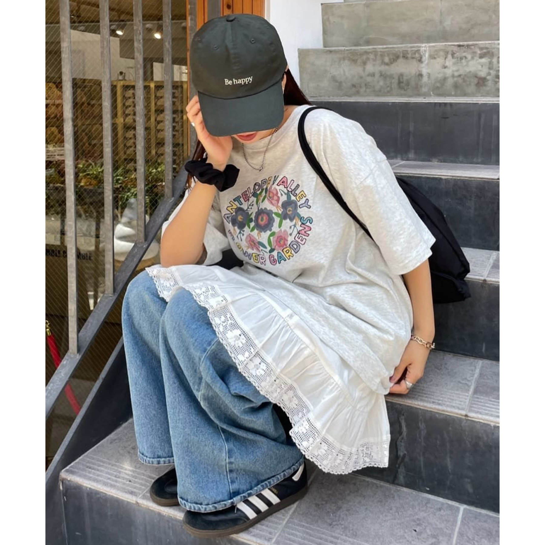 ふわりと広がるフレアなシルエットと、裾の繊細なレースのデザインが華やかさをプラス〇