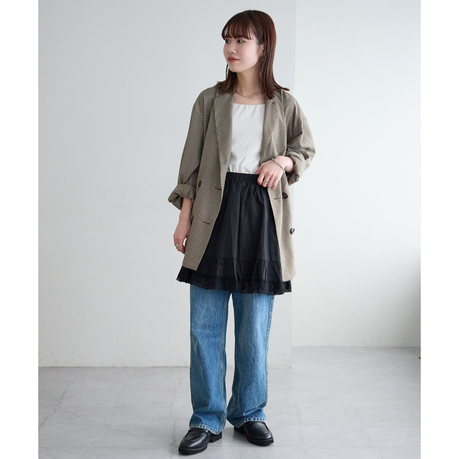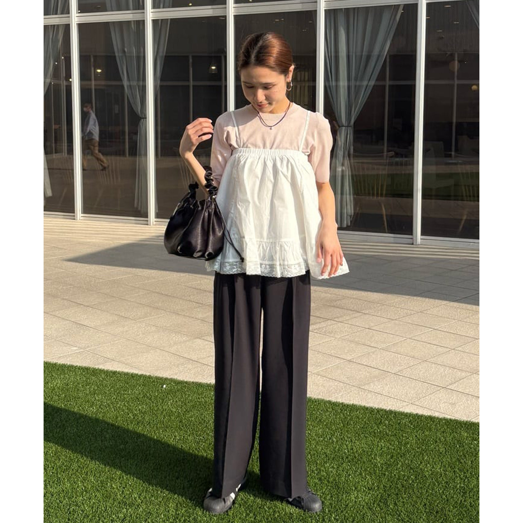 155cmスタッフ:ウエストが総ゴムなので、ボトムスとレイヤードしたときに幅広い厚みのアイテムと合わせてもノンストレスに!