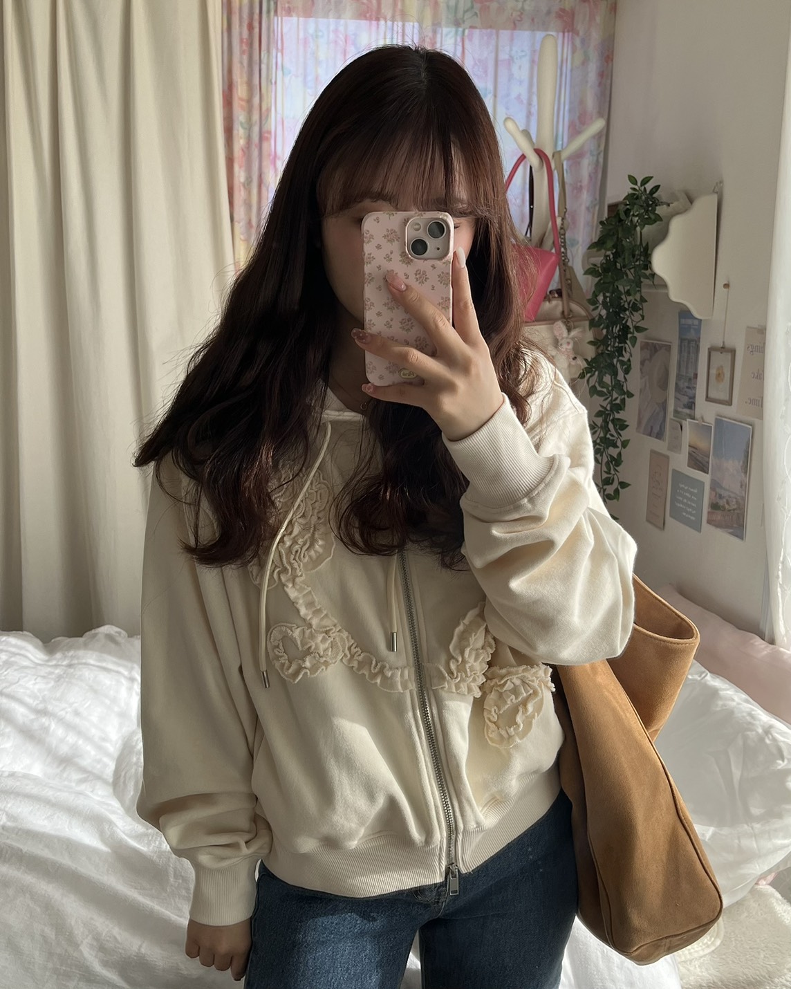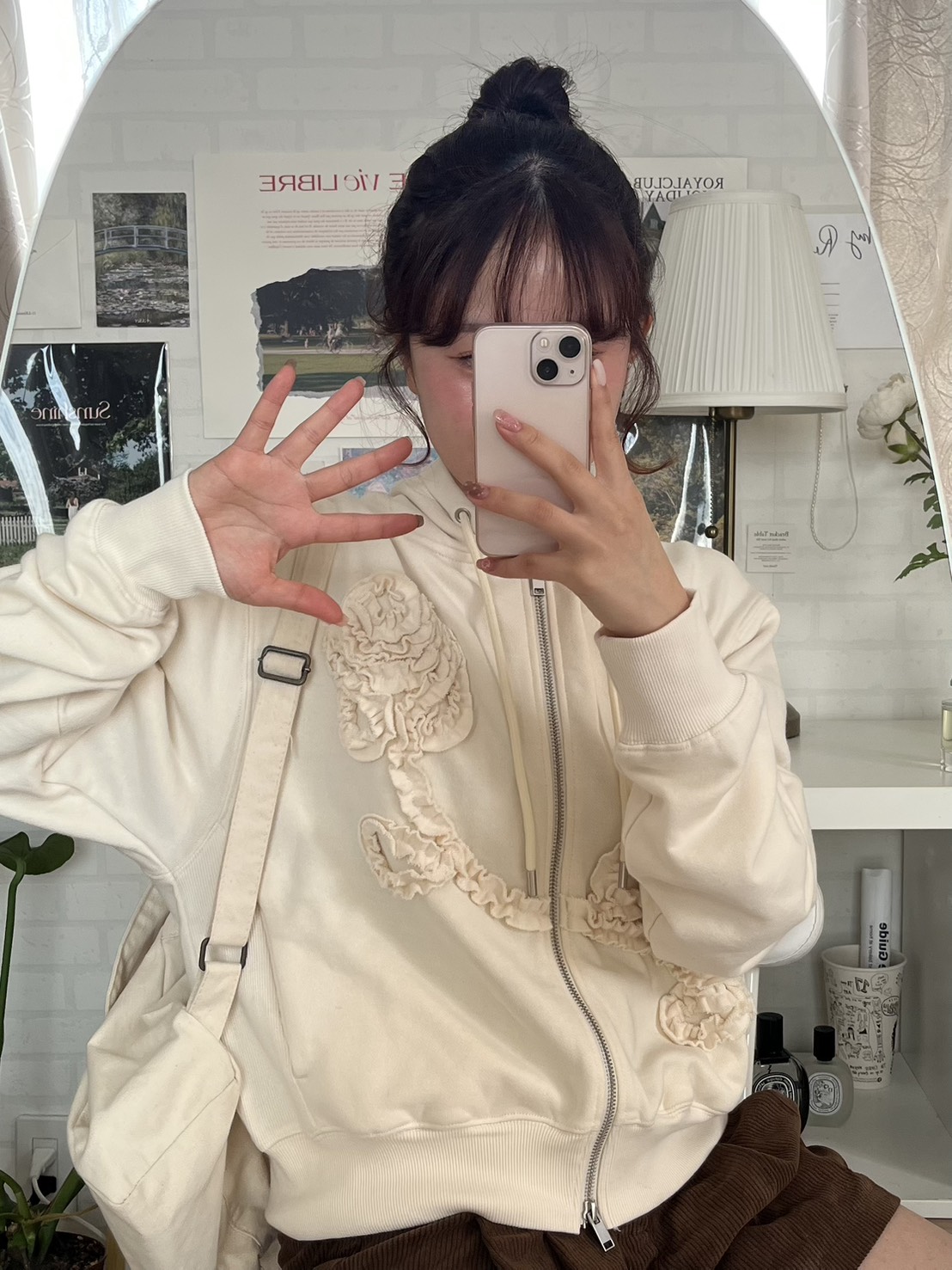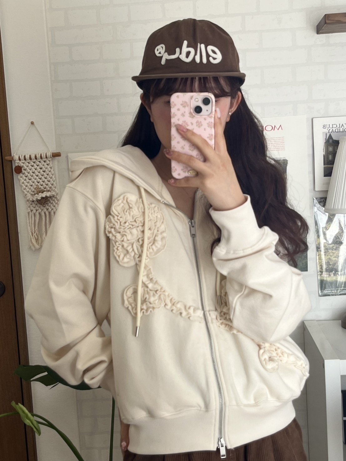 【購入特典】[tokki x Sinoon] Rose Frill Hoodie Zipup (Ivory)