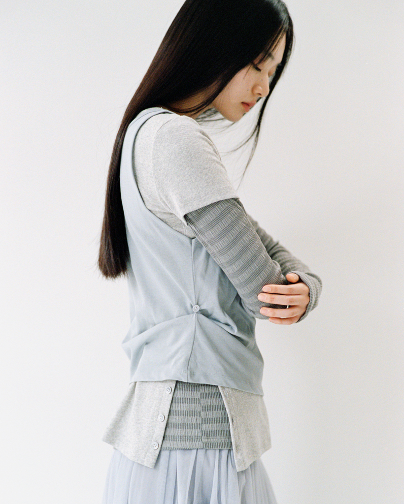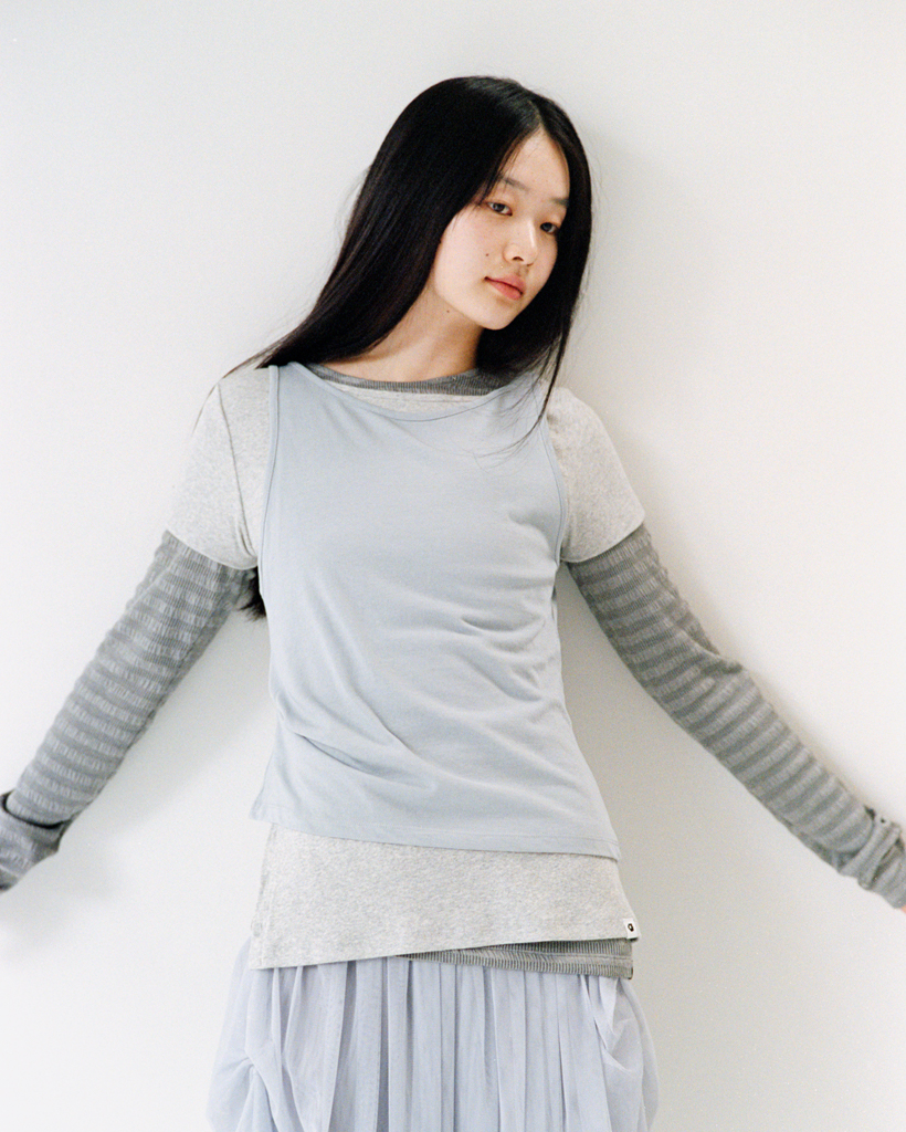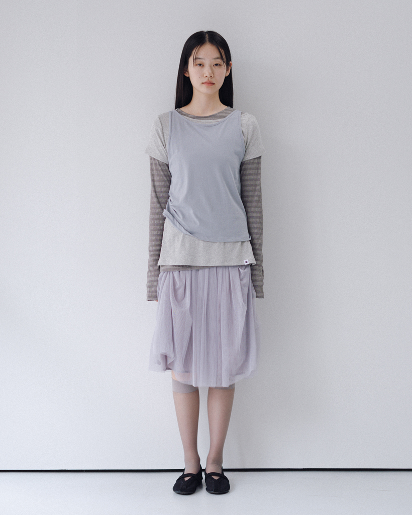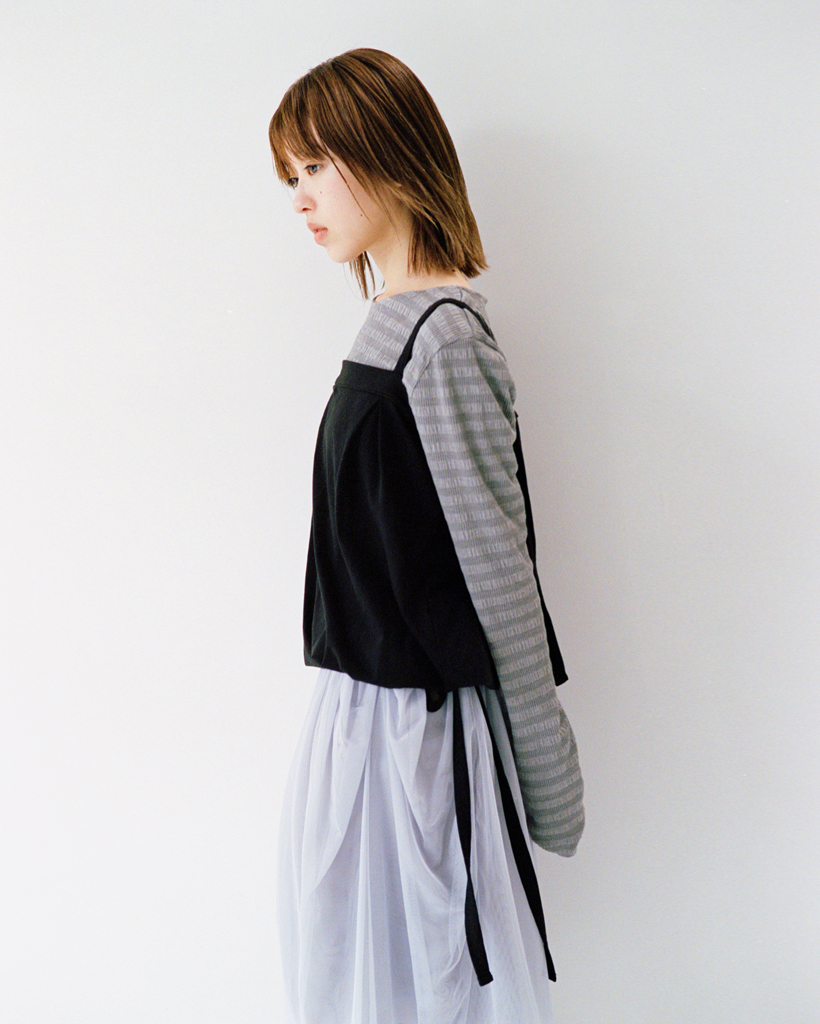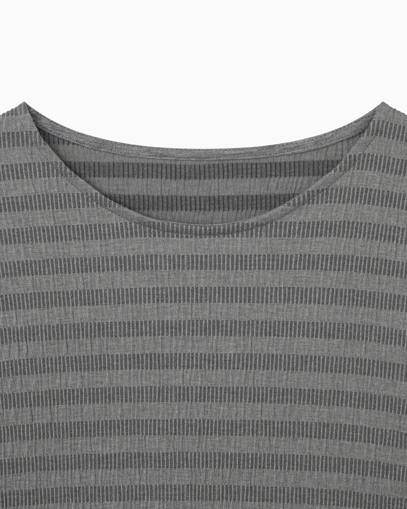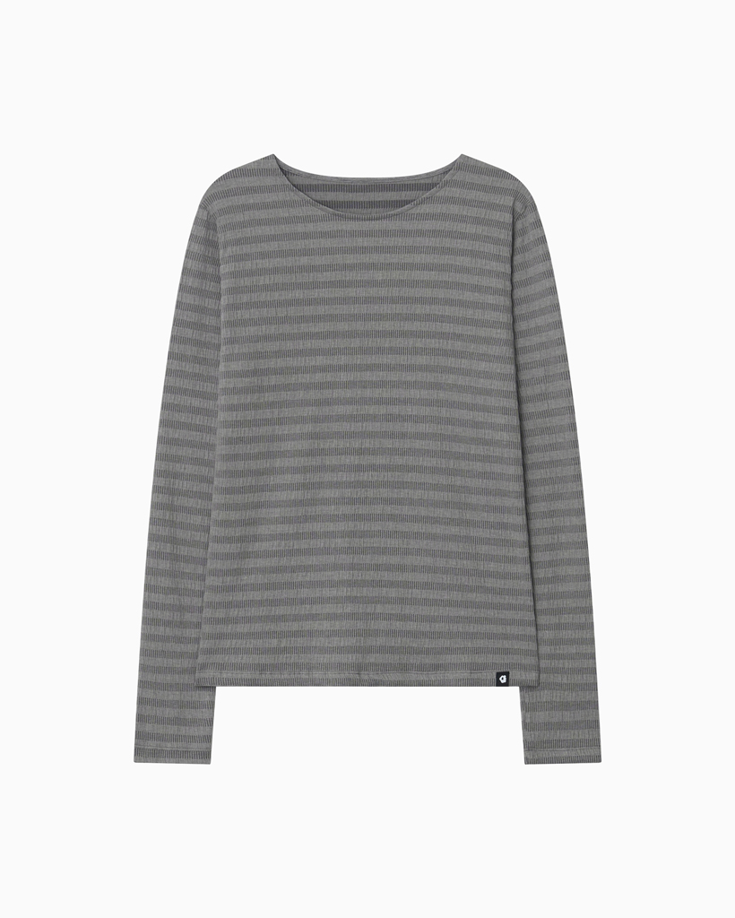 STRIPE PLEATED LONG SLEEVE, CHARCOAL