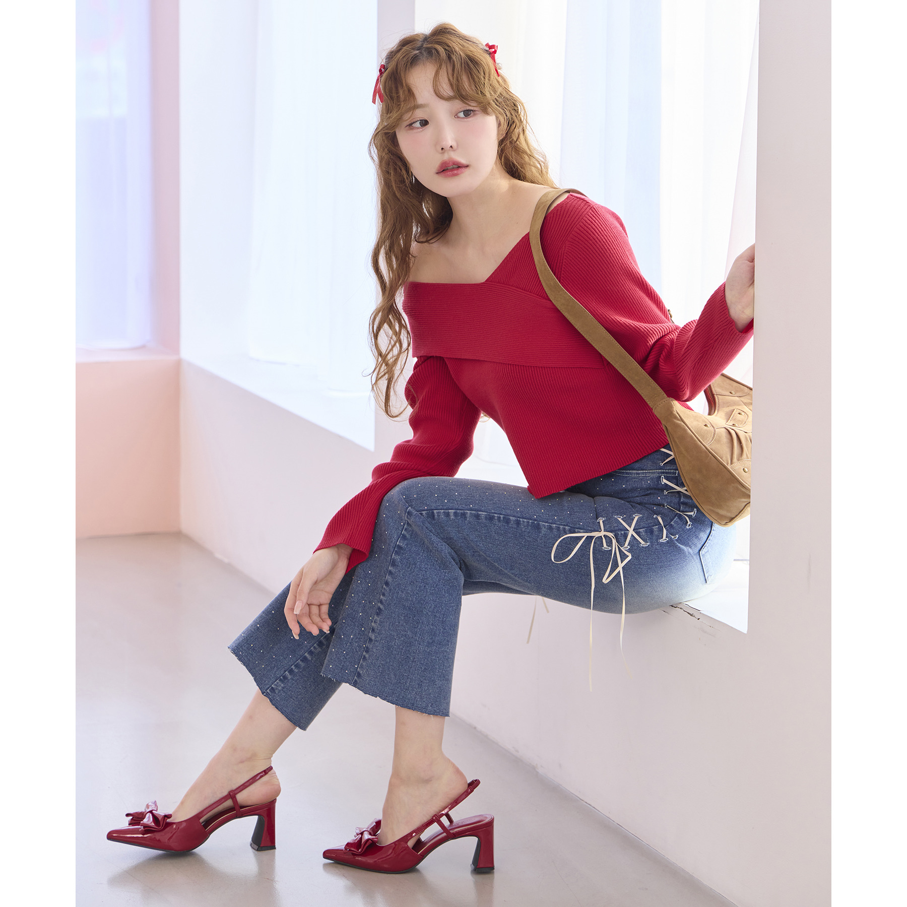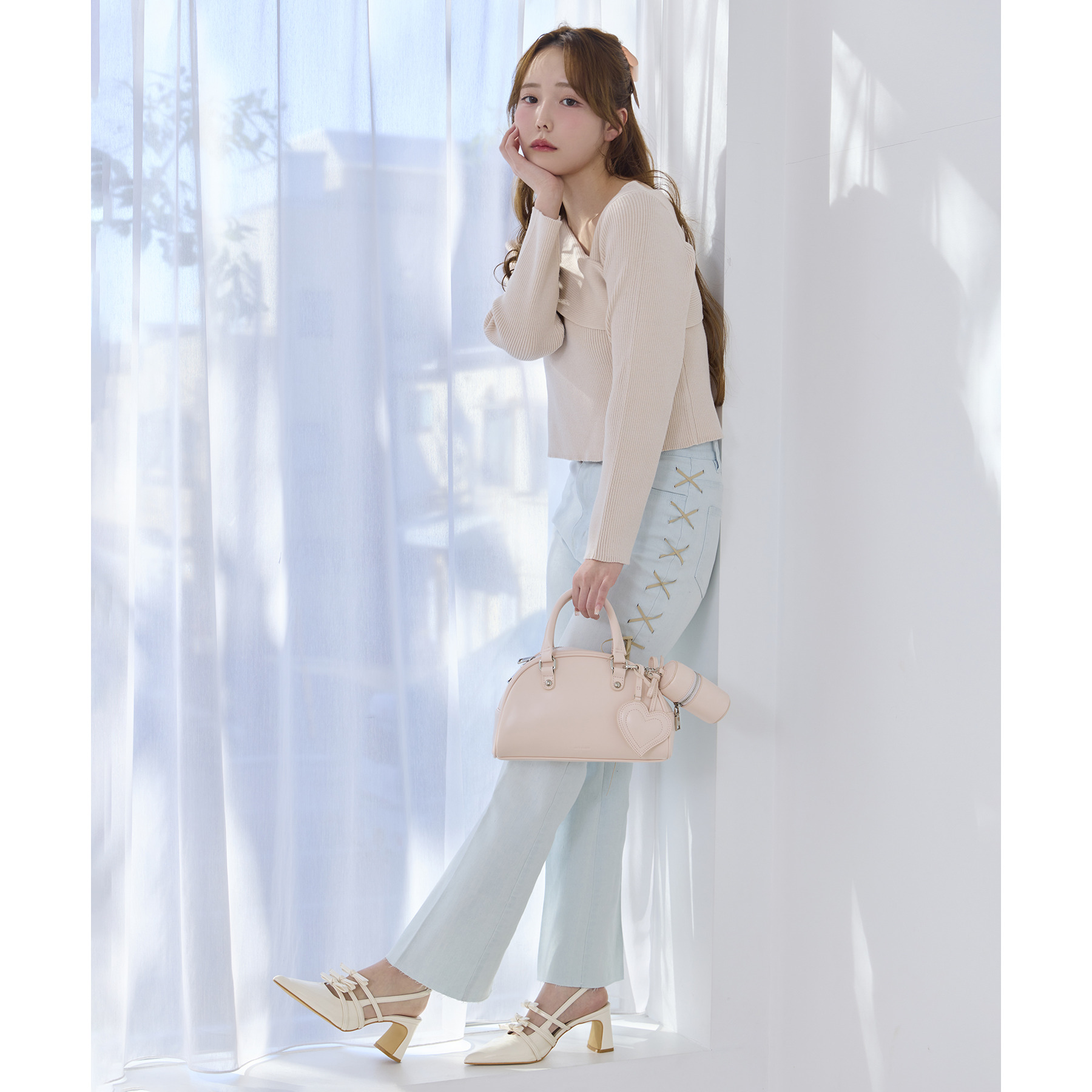 甘さの中にカジュアルなデニムを入れることによってフレンチカジュアルなコーデになります。