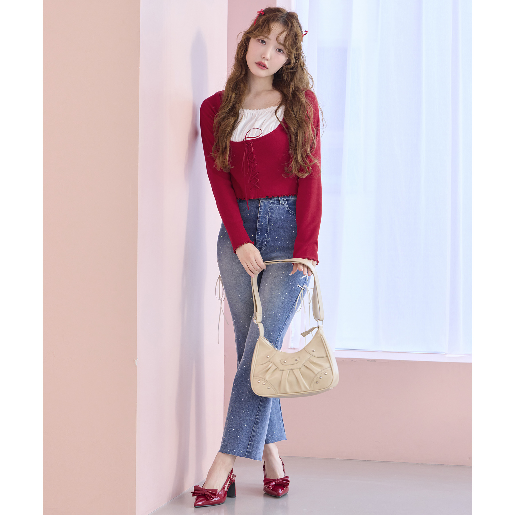 レースアップデニムパンツ/SM展開