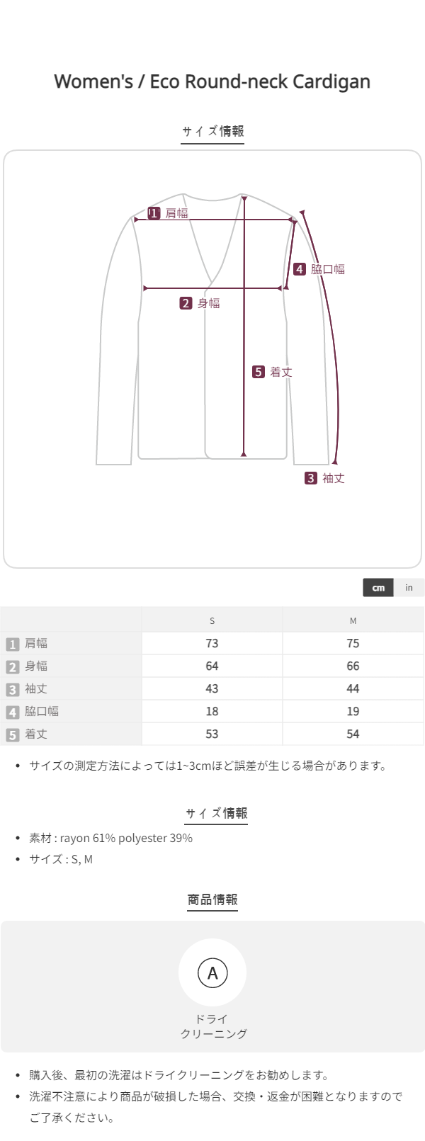 このブランドの商品はお客様の都合による交換および返品はお受けいたしかねます。 十分にご注意の上、ご注文をお願い致します。