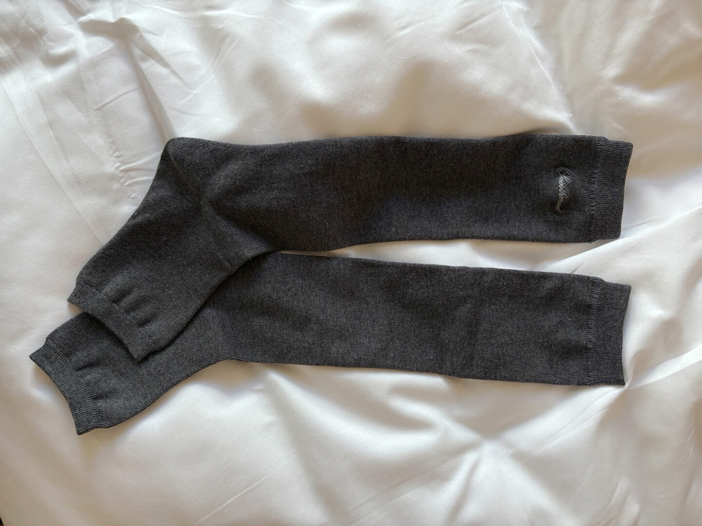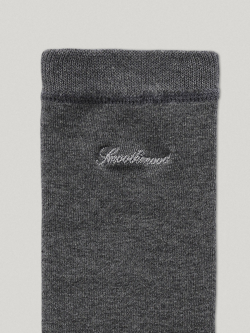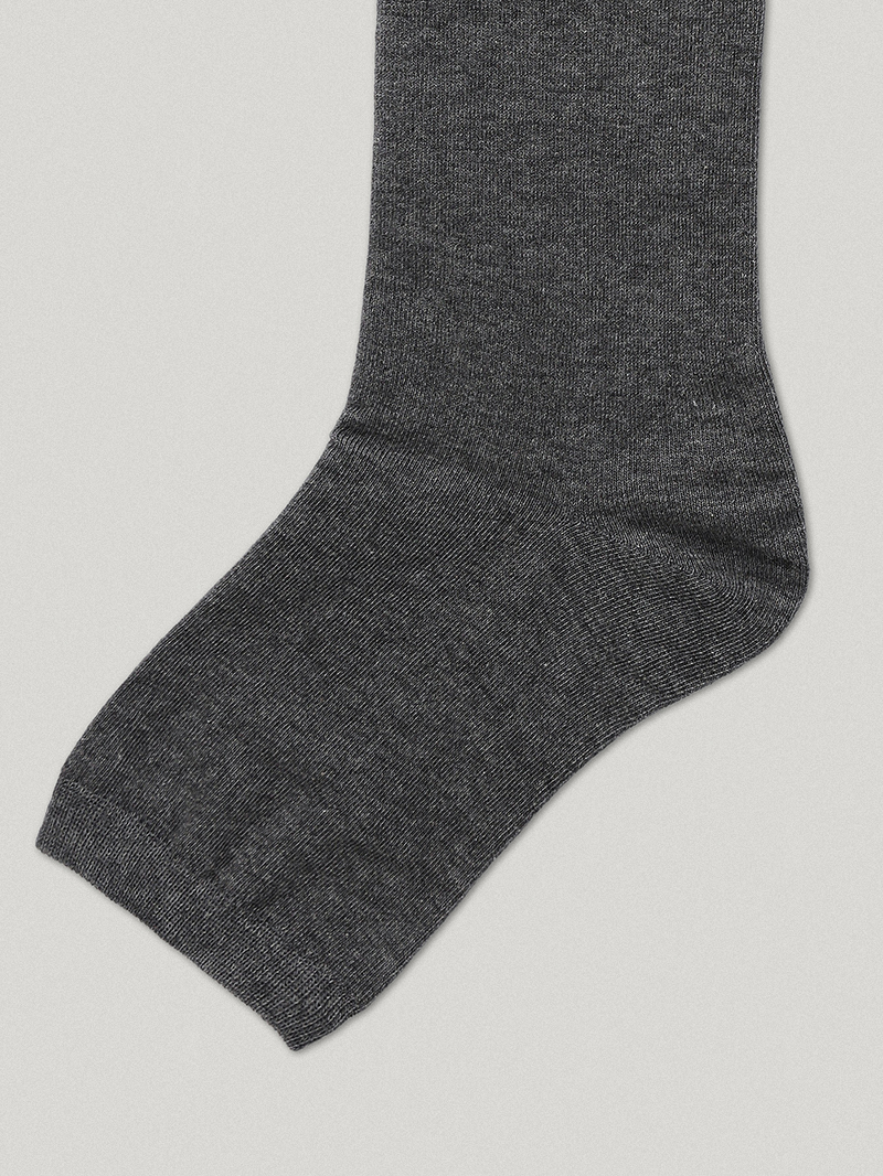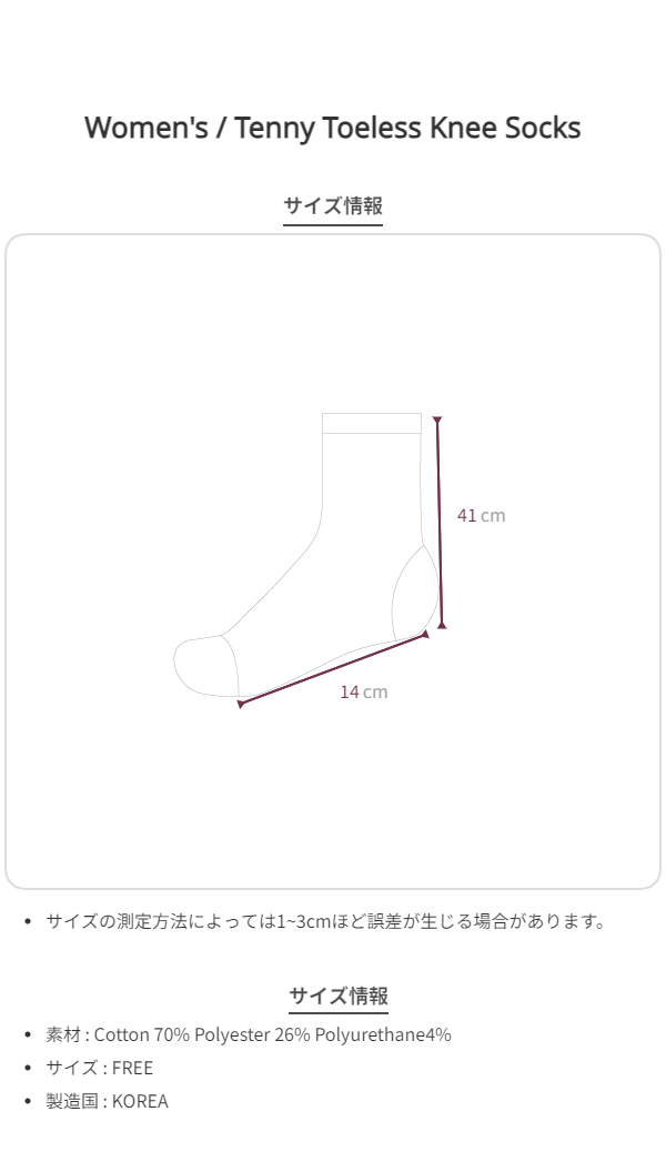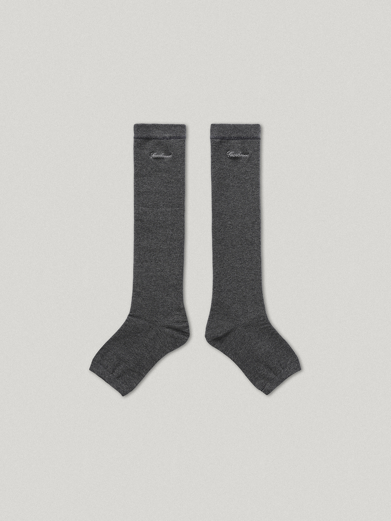 バレエソックスから着想を得て作られた、グレー Tenny トゥレス ニーソックスです。一般的なニーソックスとは異なり、つま先部分がないデザインで、独特のウォーマー風シルエットが魅力的です。コットン、ポリエステル、ポリウレタンのブレンド素材で作られており、柔らかく軽いテクスチャー。リブ仕上げでずり落ちにくく、安定感のある着用感です。カフス部分にはSmoothmoodのイタリックロゴ刺繍を入れました。フラットシューズからアンクルブーツまで幅広いアイテムとマッチし、膝まで上げて履いたり、さまざまな長さで自由にアレンジできます。落ち着いたダークグレーカラーで、どんなルックにも感覚的にマッチしますㆍリブカフスㆍトゥレス(つま先なし)デザインㆍSmoothmood イタリック ロゴㆍロング丈ㆍCotton 70% Polyester 26% Polyurethane 4%*ロゴ刺繍の位置は、横から見たときに見えるよう配置されています。素材および刺繍作業の特性上、新品の状態では完全な正中央ではない場合があります。ソックス1足(1組)のロゴ刺繍位置がそれぞれ多少異なることがありますが、着用時に素材が伸びることで刺繍がサイドに適切に配置されますので、あらかじめご了承ください。