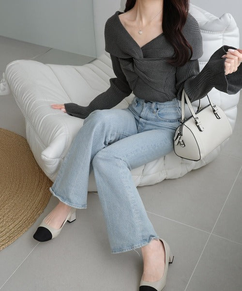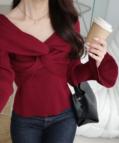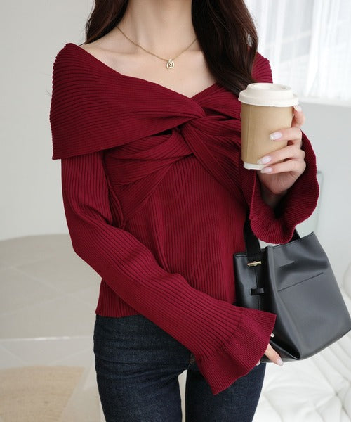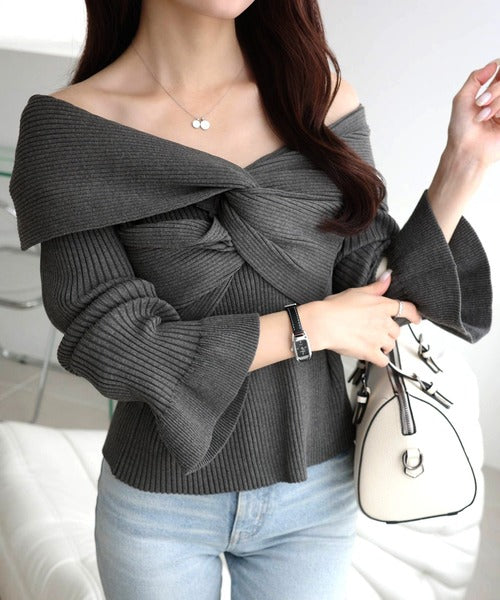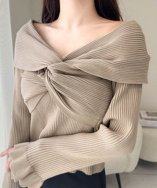 【mily bilet】デコルテ美人を叶える一着♪ツイストオフショル2WAYリブニットプルオーバー(長袖) mi1269006