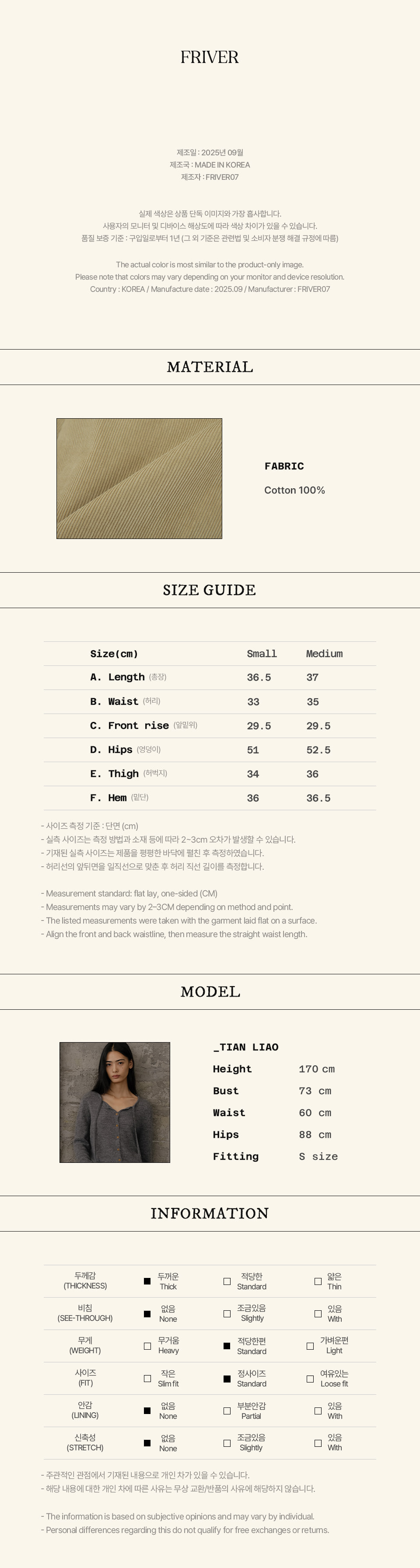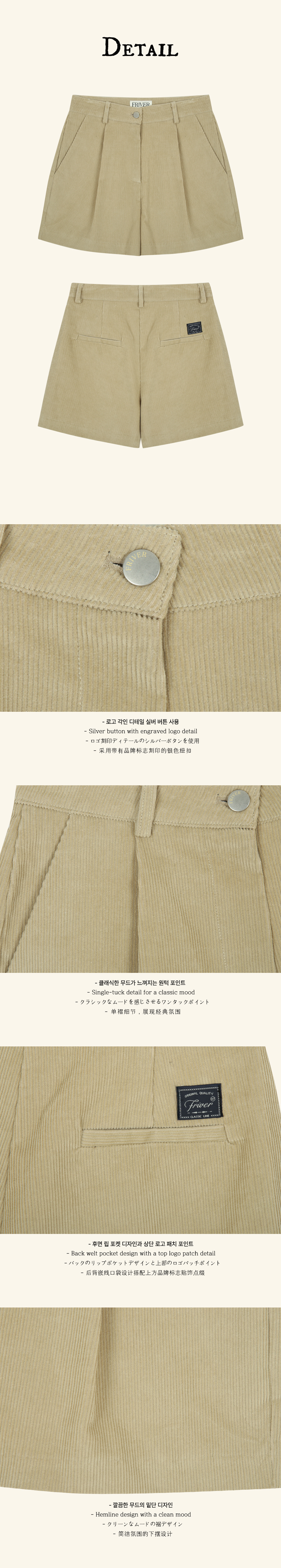 One tuck corduroy short pants FRFA02PT05_Beige