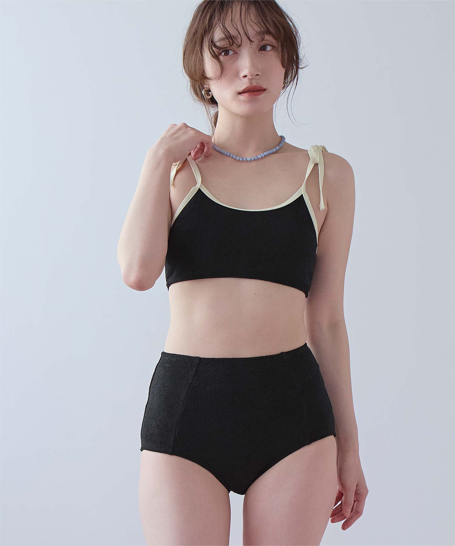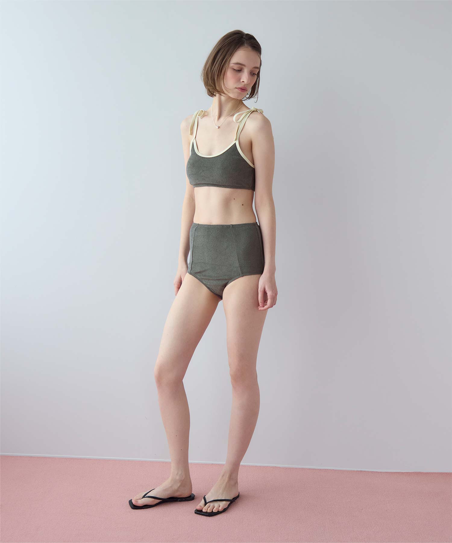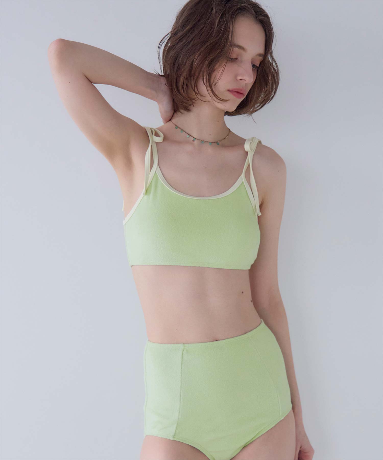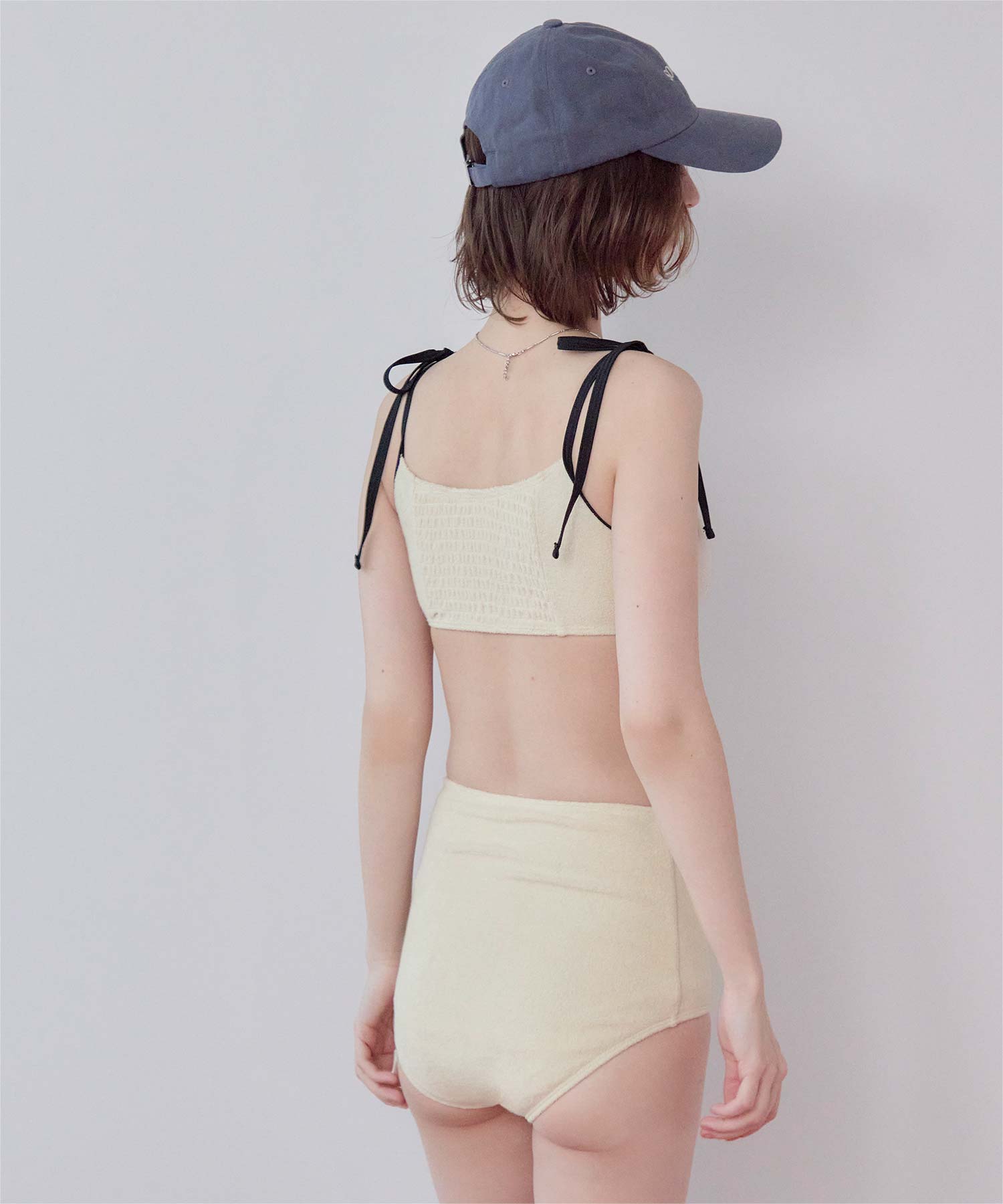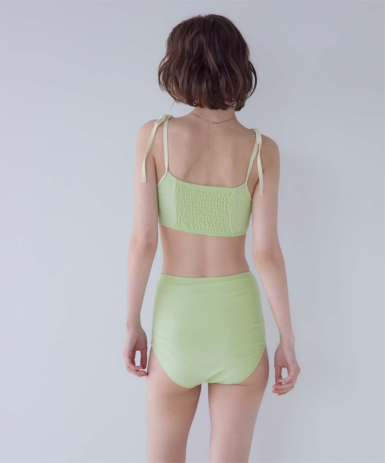 ・こなれ感のある細かめのパイル地の質感が大人可愛いハイウエストビキニ。