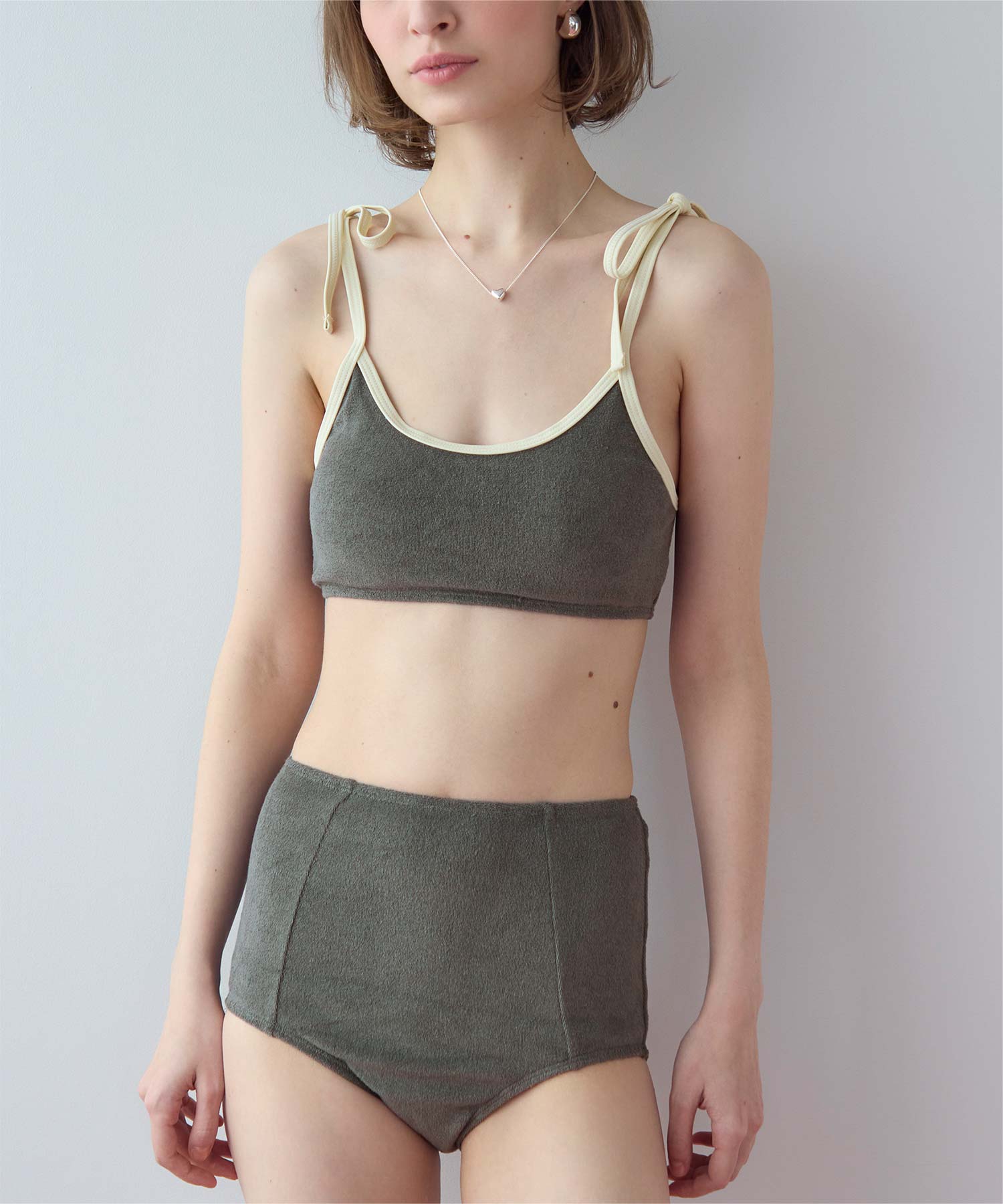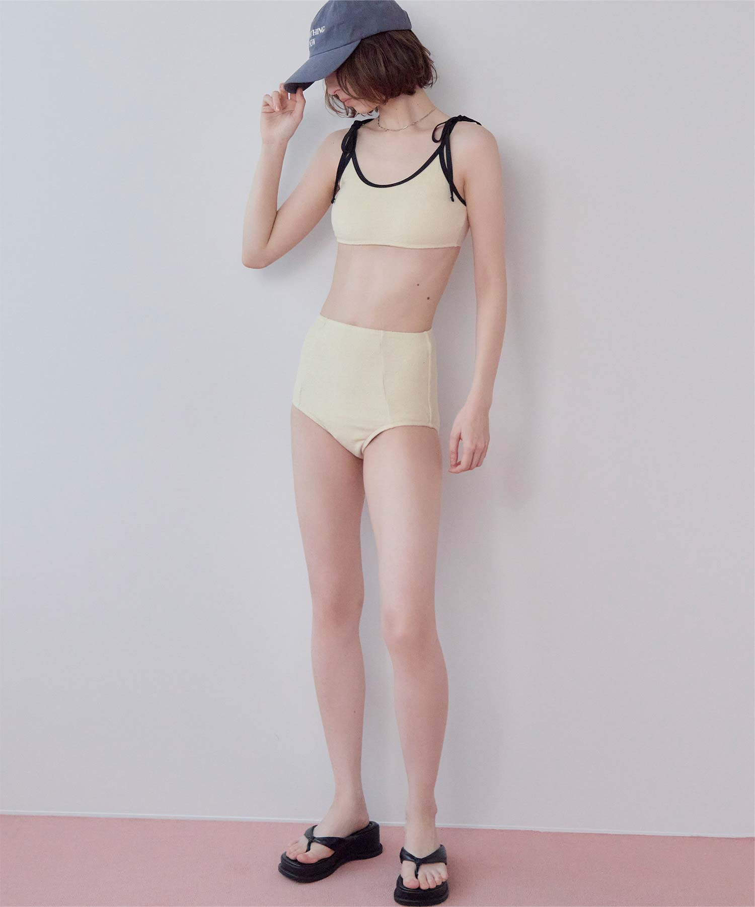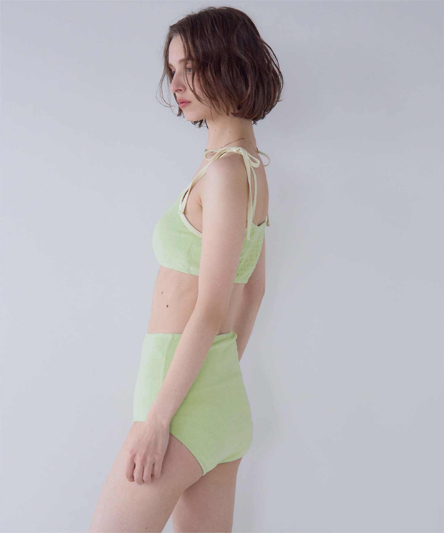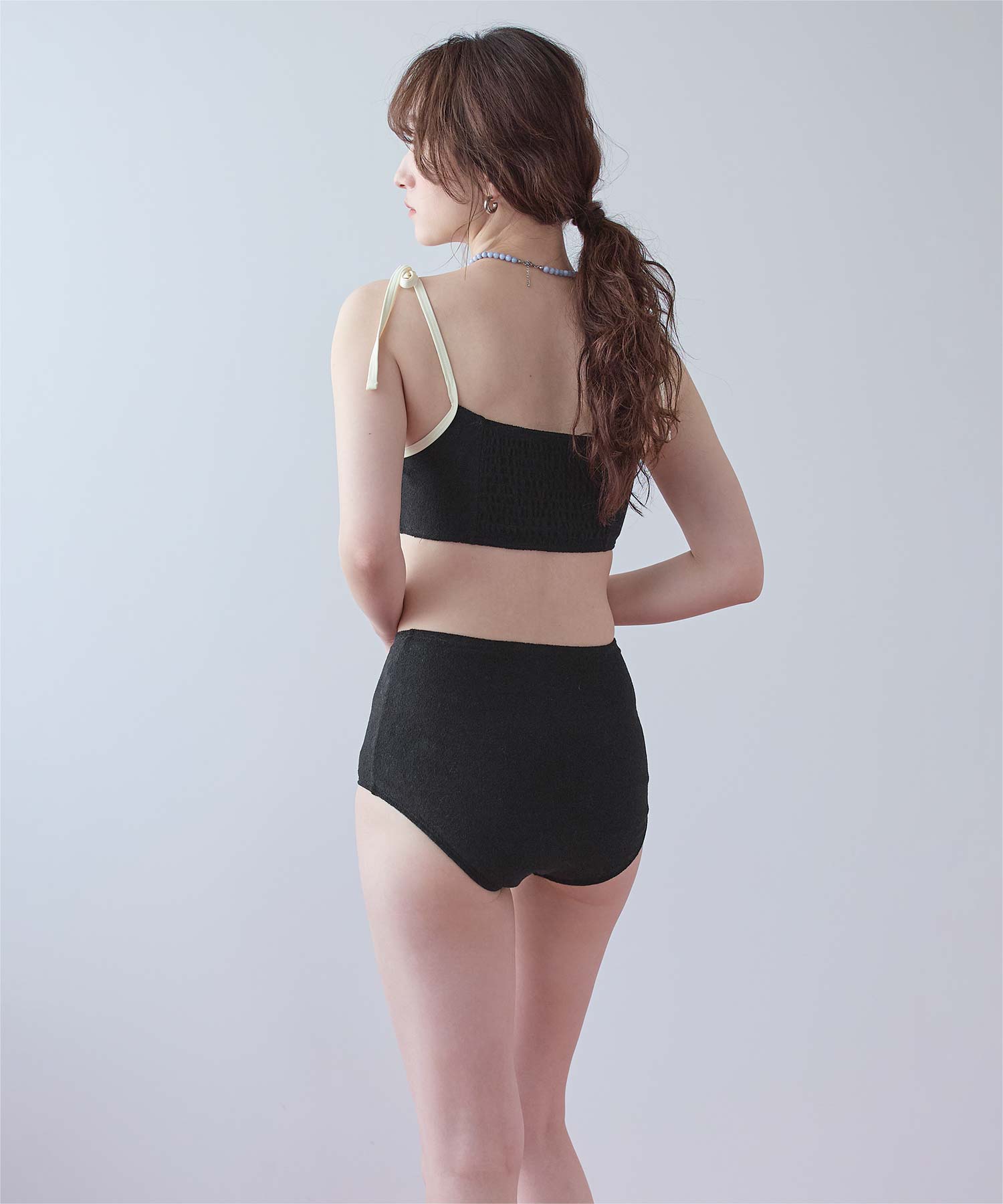 ・こなれ感のある細かめのパイル地の質感が大人可愛いハイウエストビキニ。