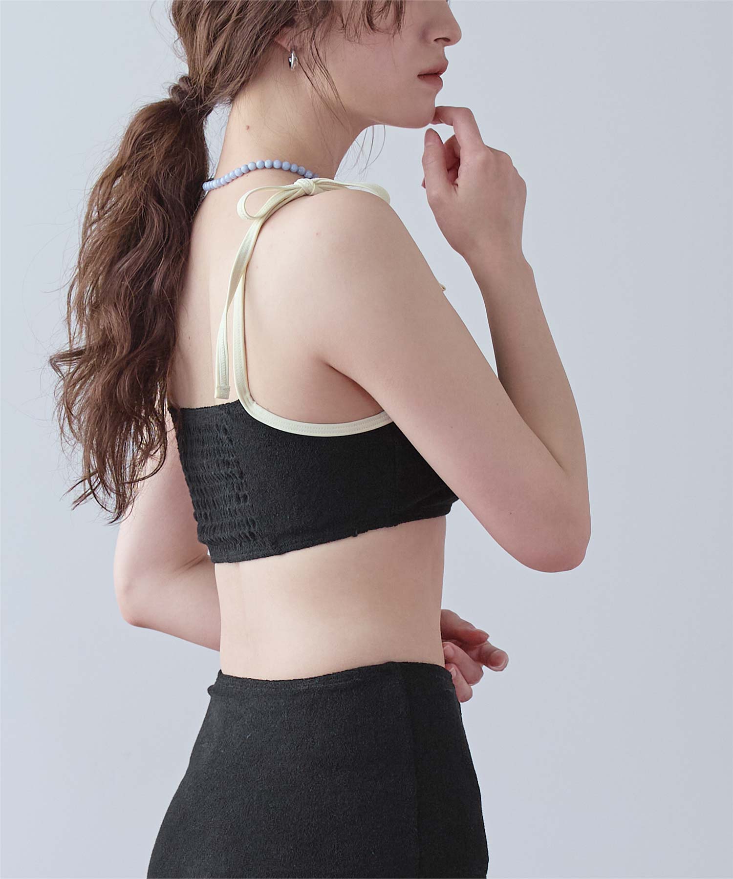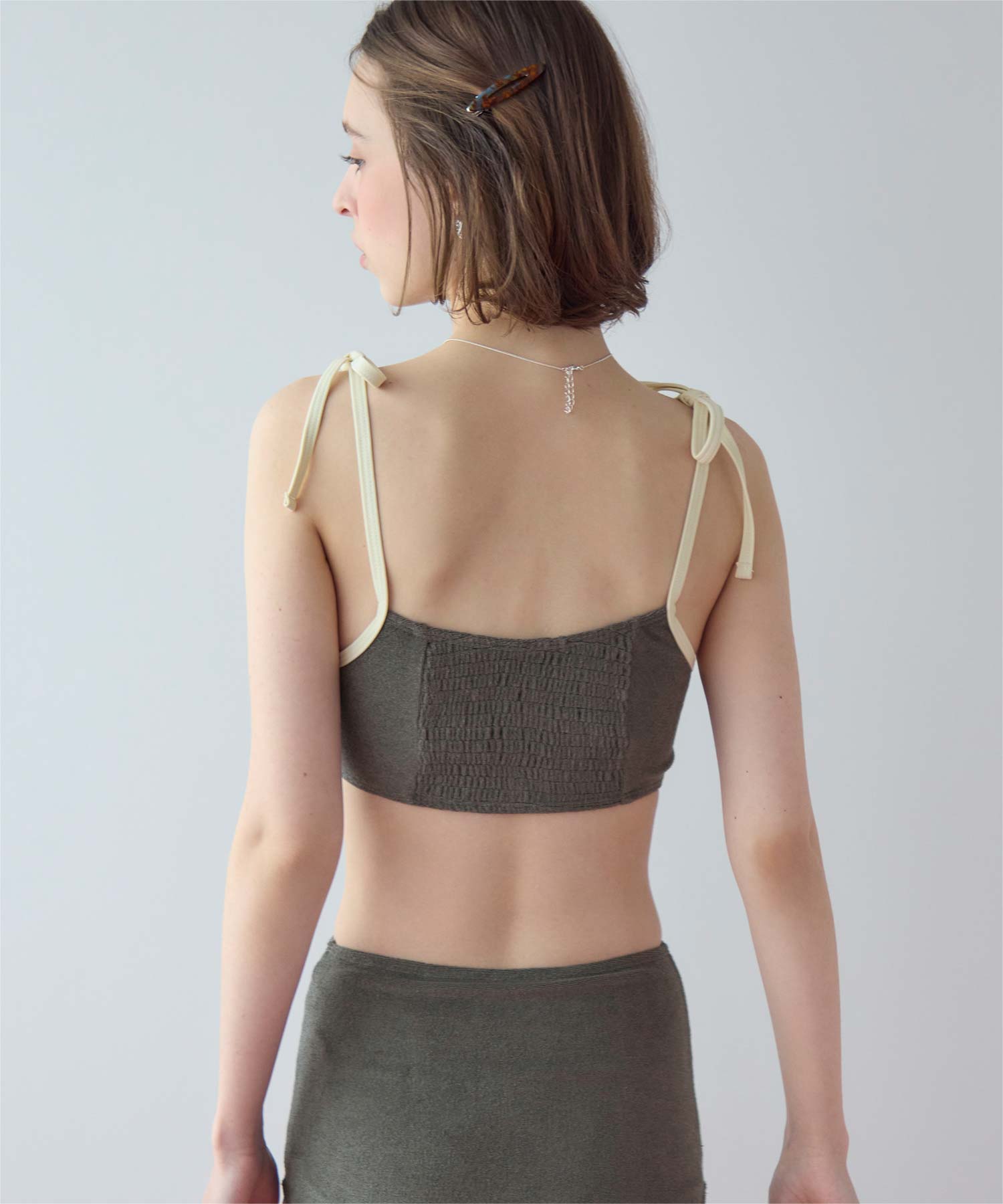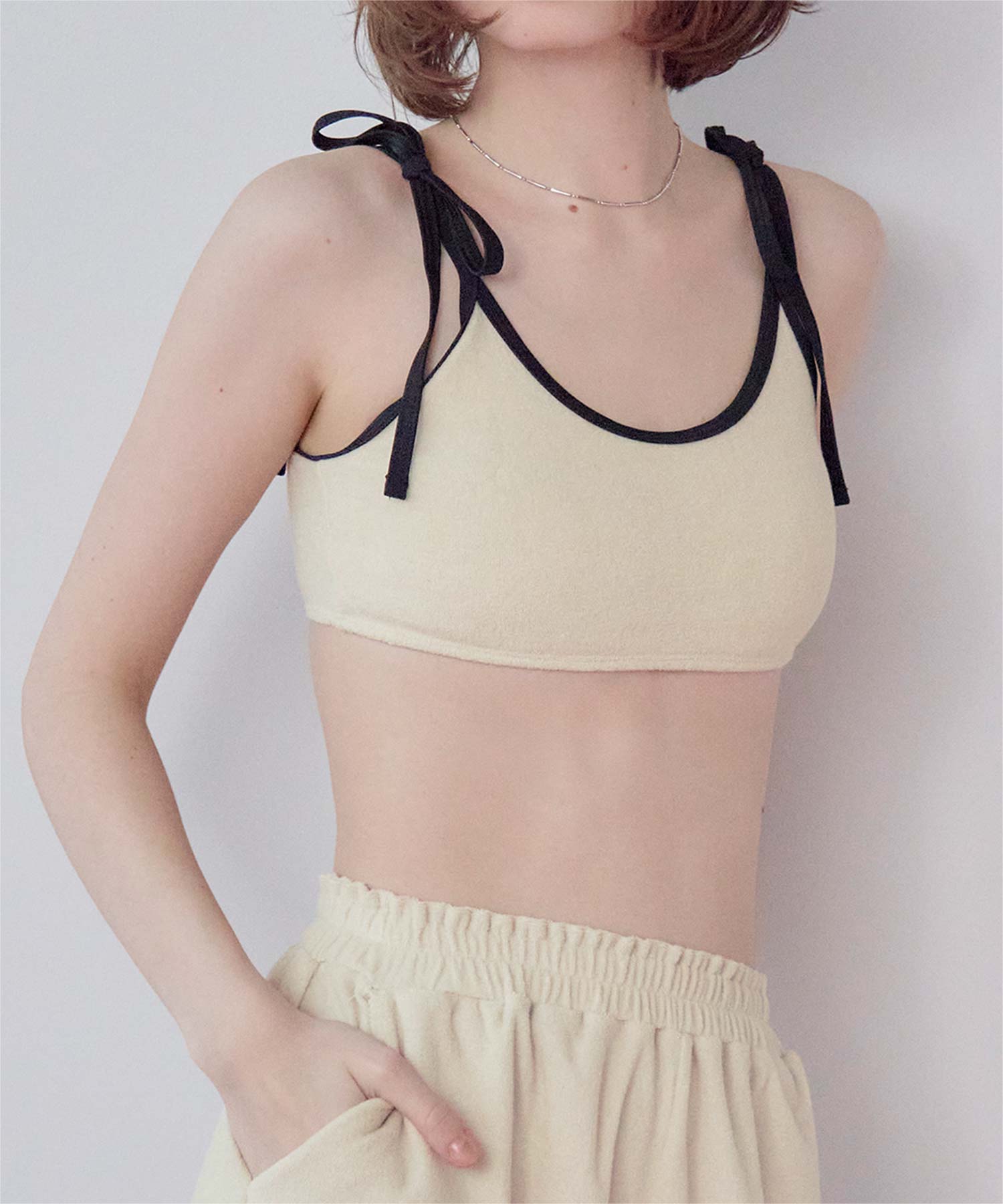 ・肩紐リボンとバックシャーリング仕様でフィット感抜群+ストレスフリーな着心地。