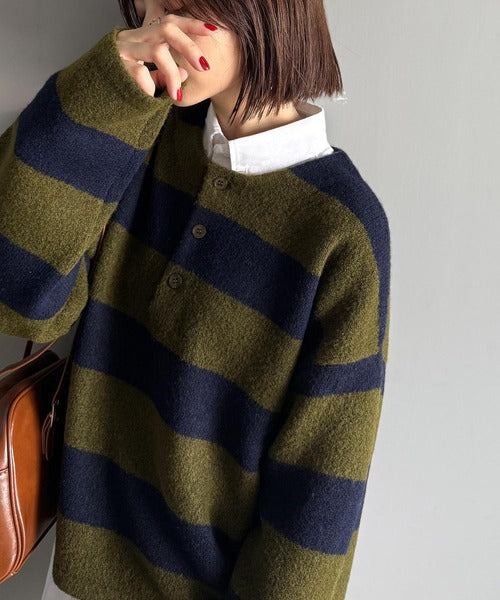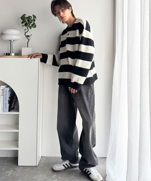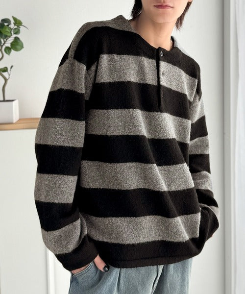 カジュアルな印象のラガーデザインを、もちっとしたニット素材でアレンジ。