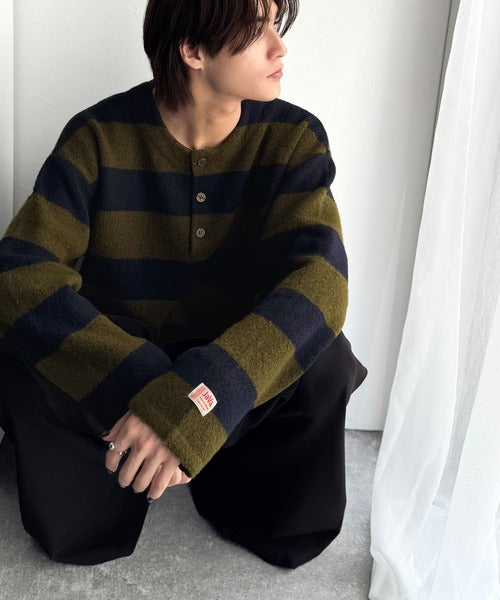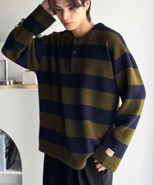 《JaVaジャバコラボ》クラシカル×モダンな一枚。ラガーデザインリラックスニット(長袖) jm1020270