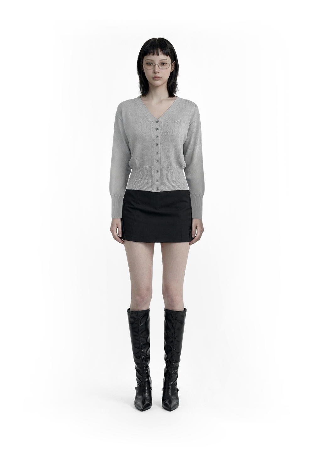 [mnem] Fog Button Knit Cardigan (gray)