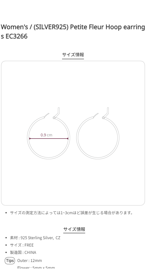 (シルバー925) プチ フルール フープ ピアス EC3266