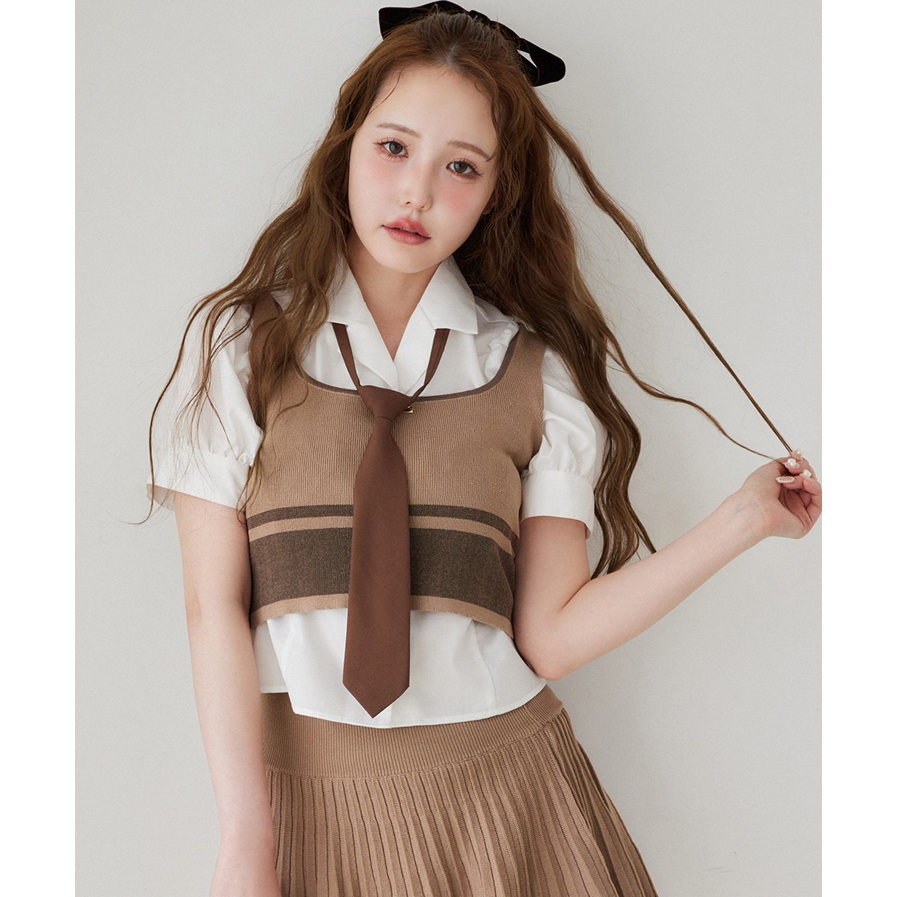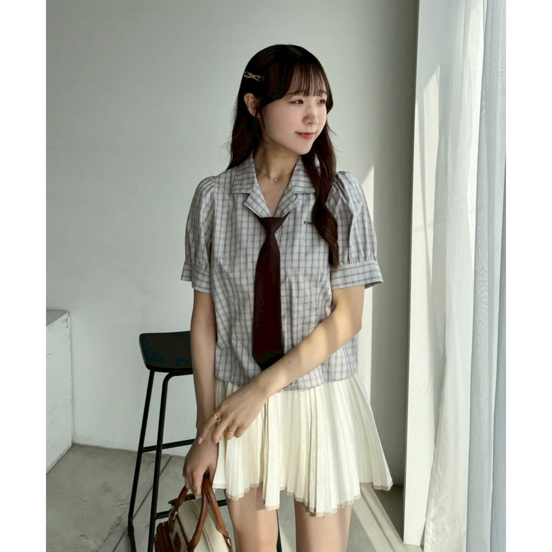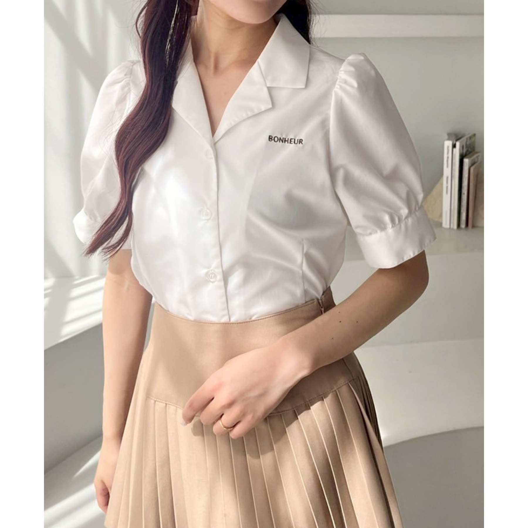 ふんわりとしたパフスリーブが清楚可愛いを演出