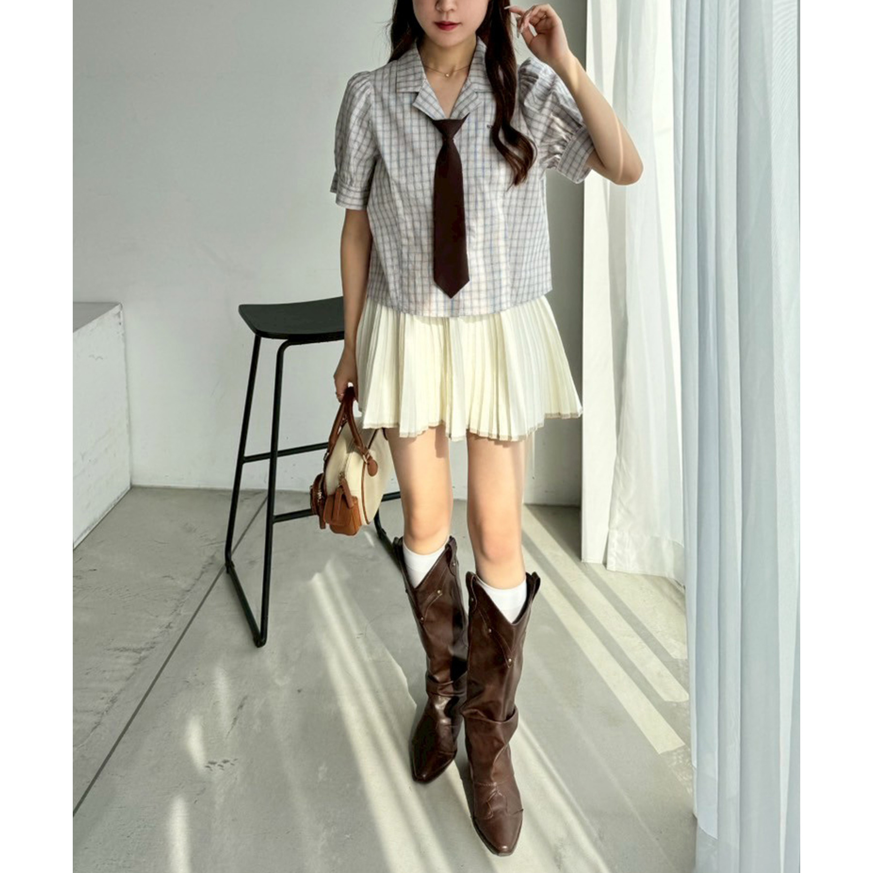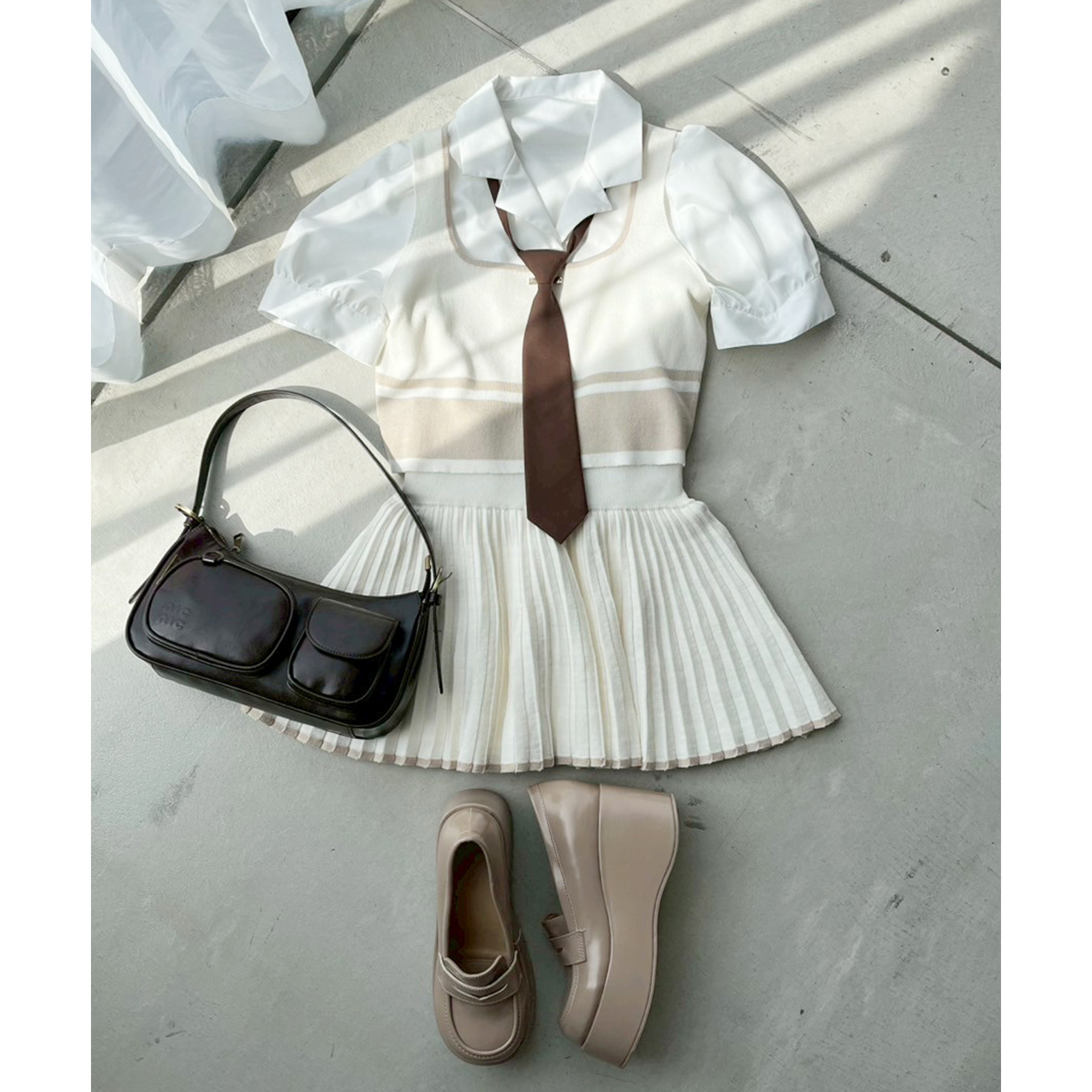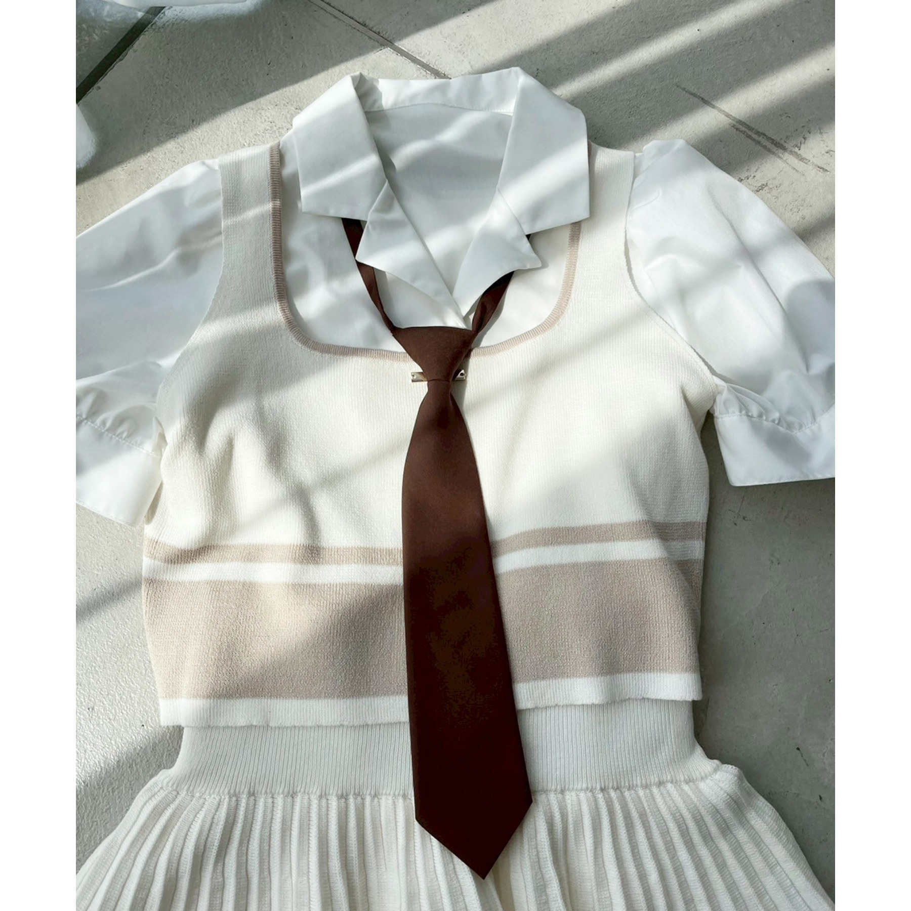 ネクタイ付き開襟シャツ