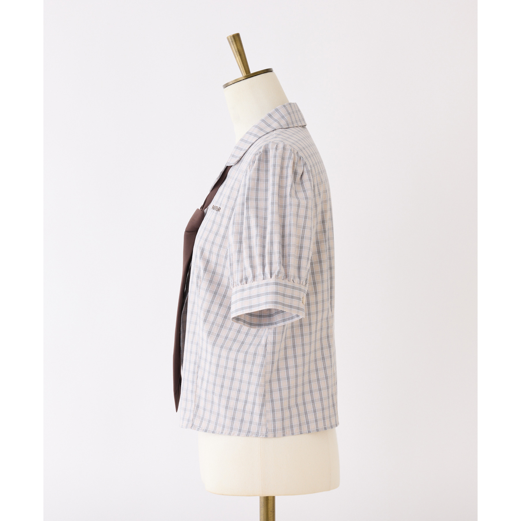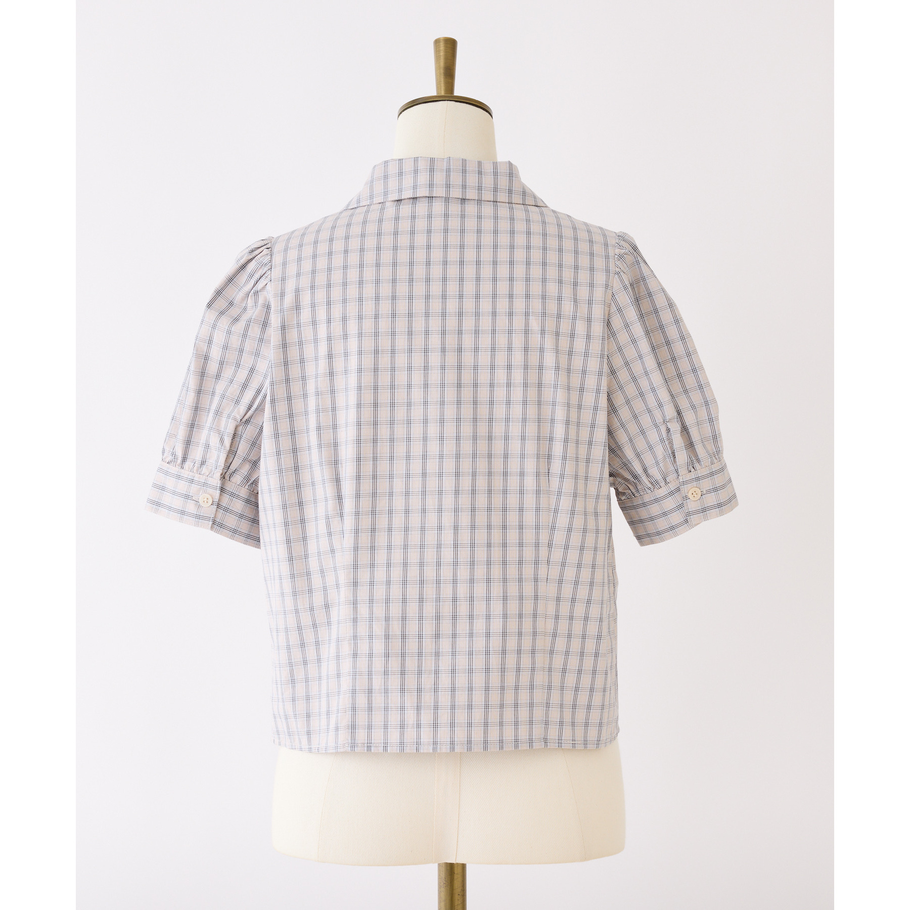 袖の丸みがフェミニンなパフスリーブデザインのブラウス