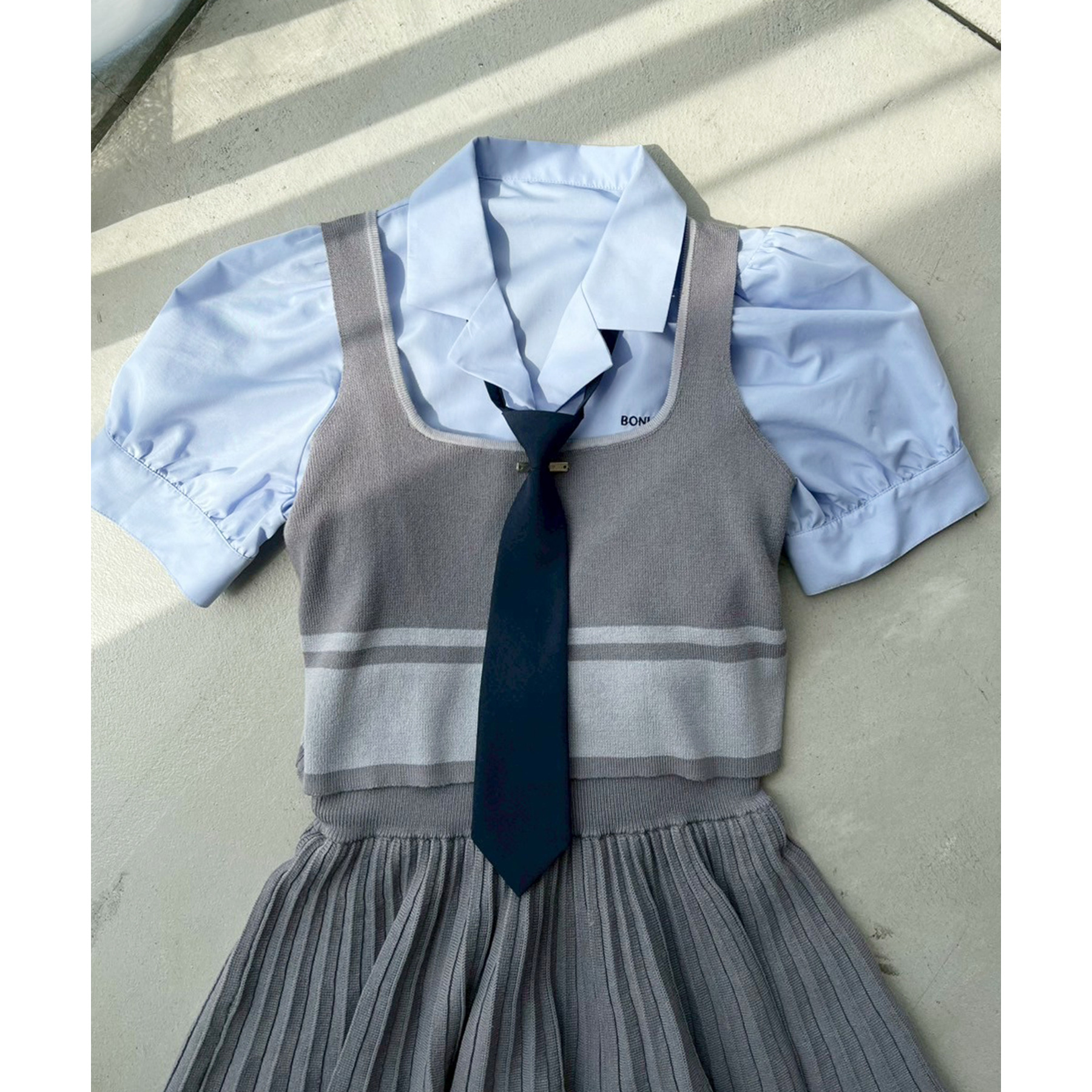 本体:ポリエステル97%・ポリウレタン3% ネクタイ:ポリエステル80%・コットン20%