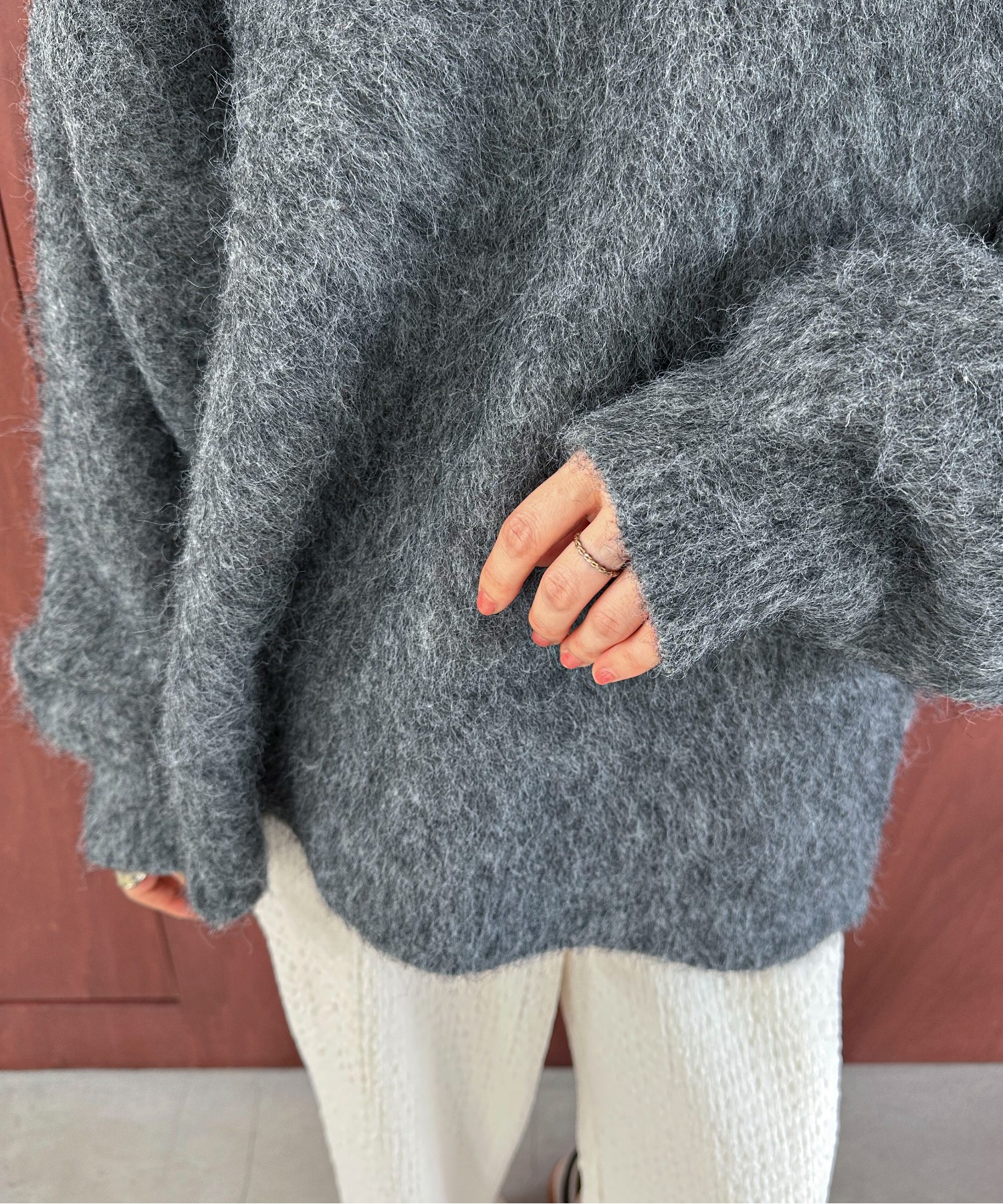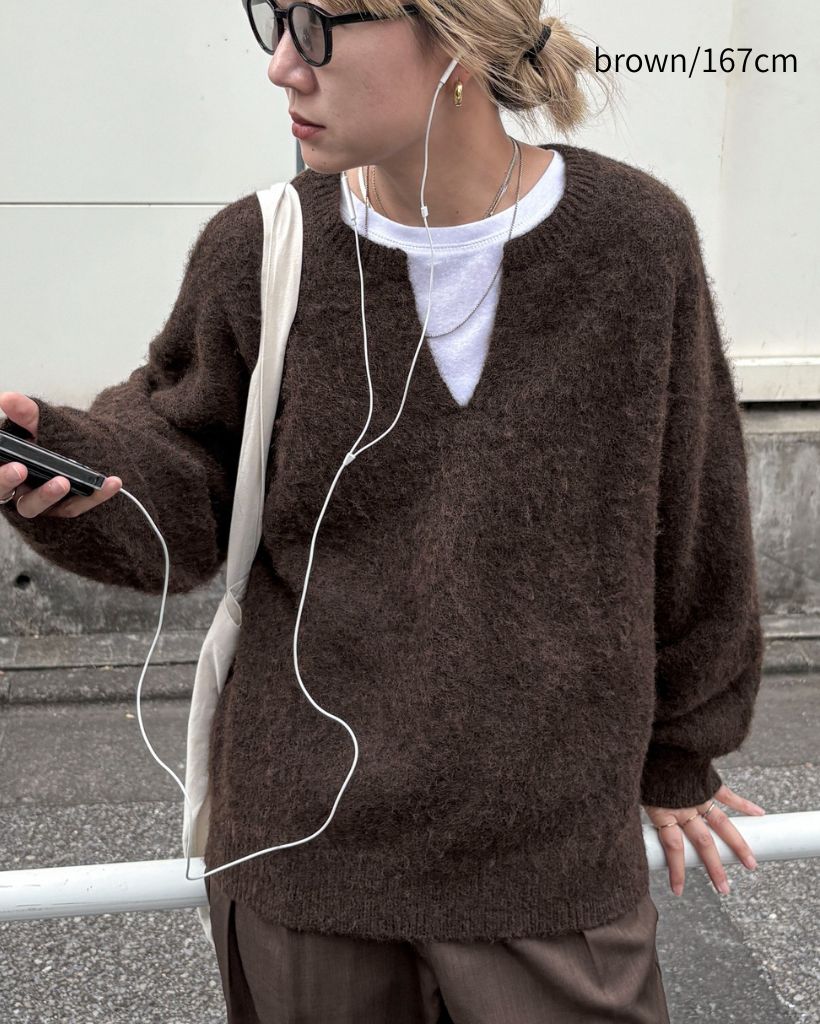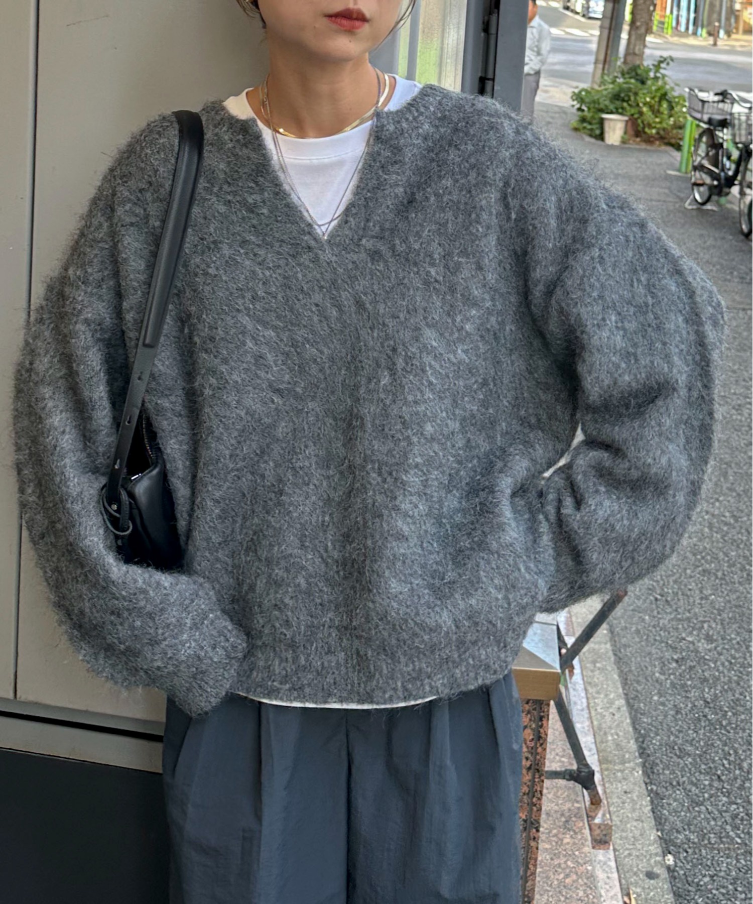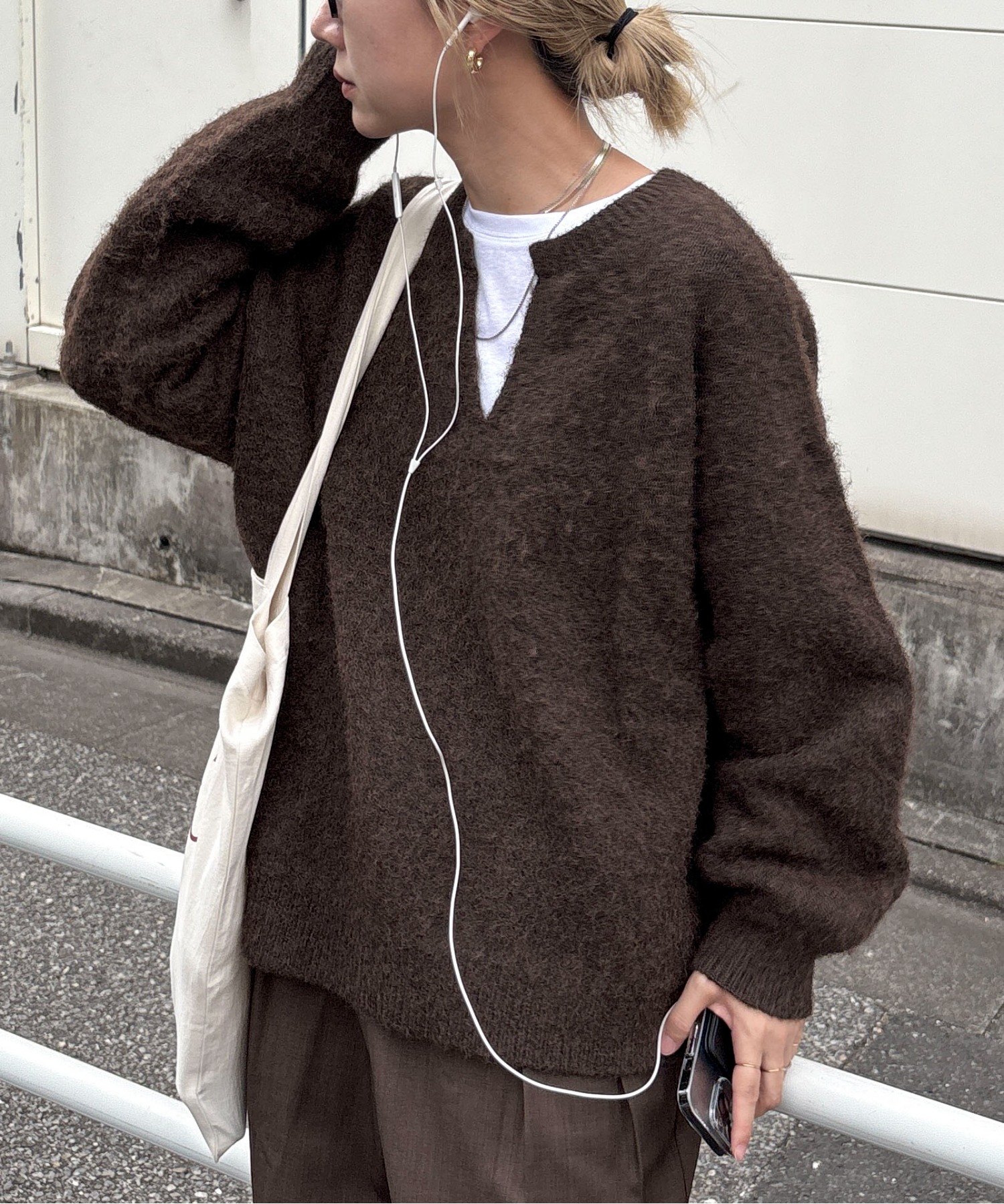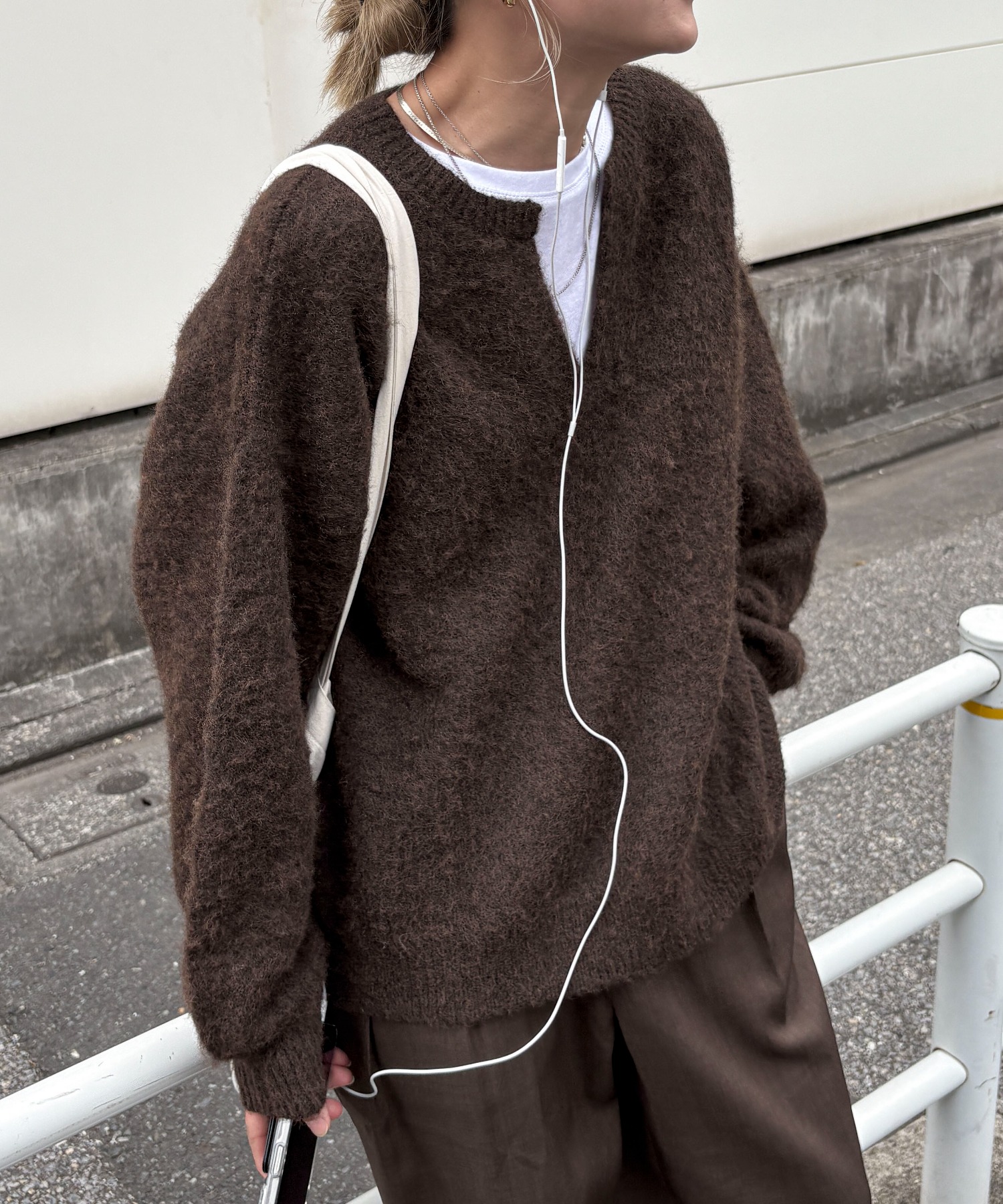 表面の起毛感が魅力の着回しやすいシンプルニット。