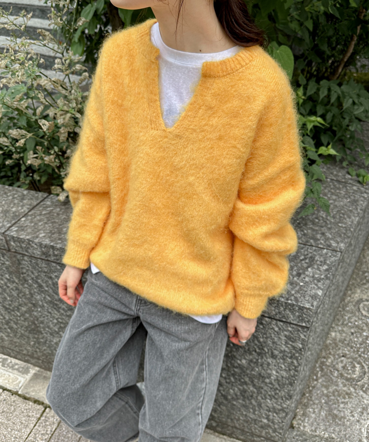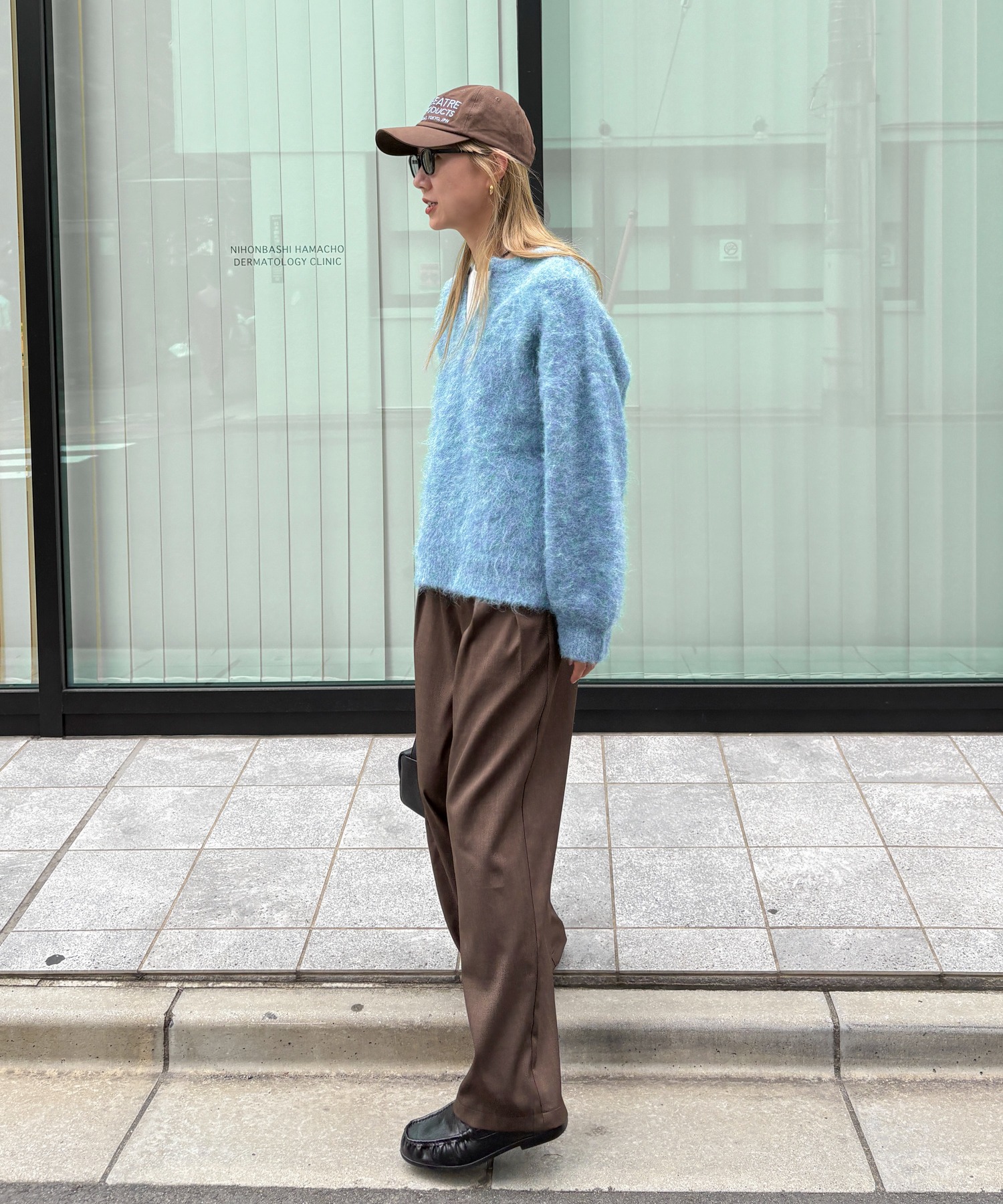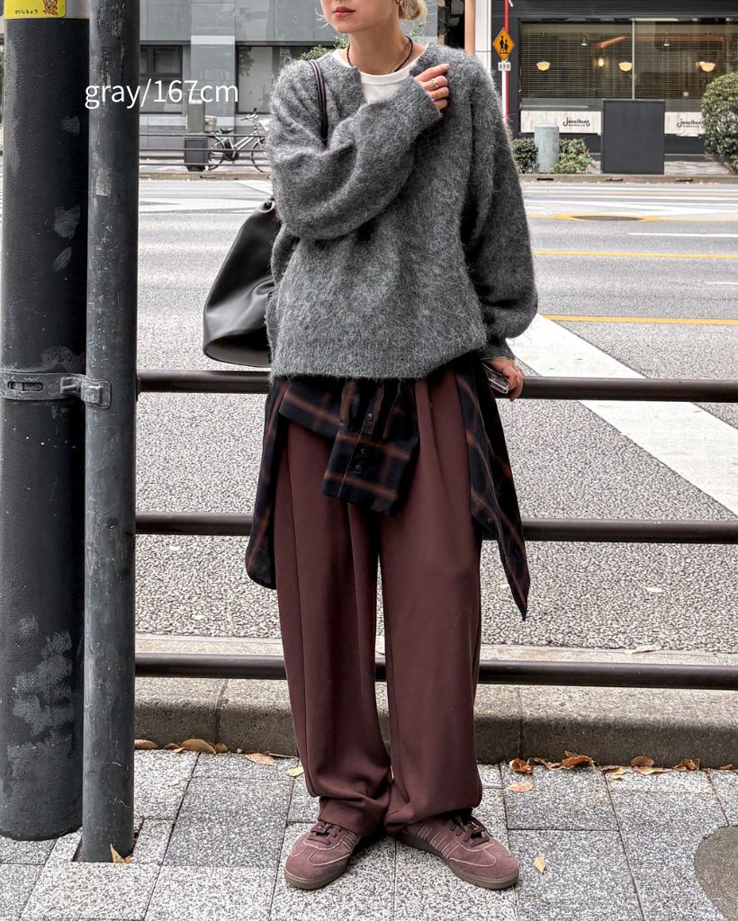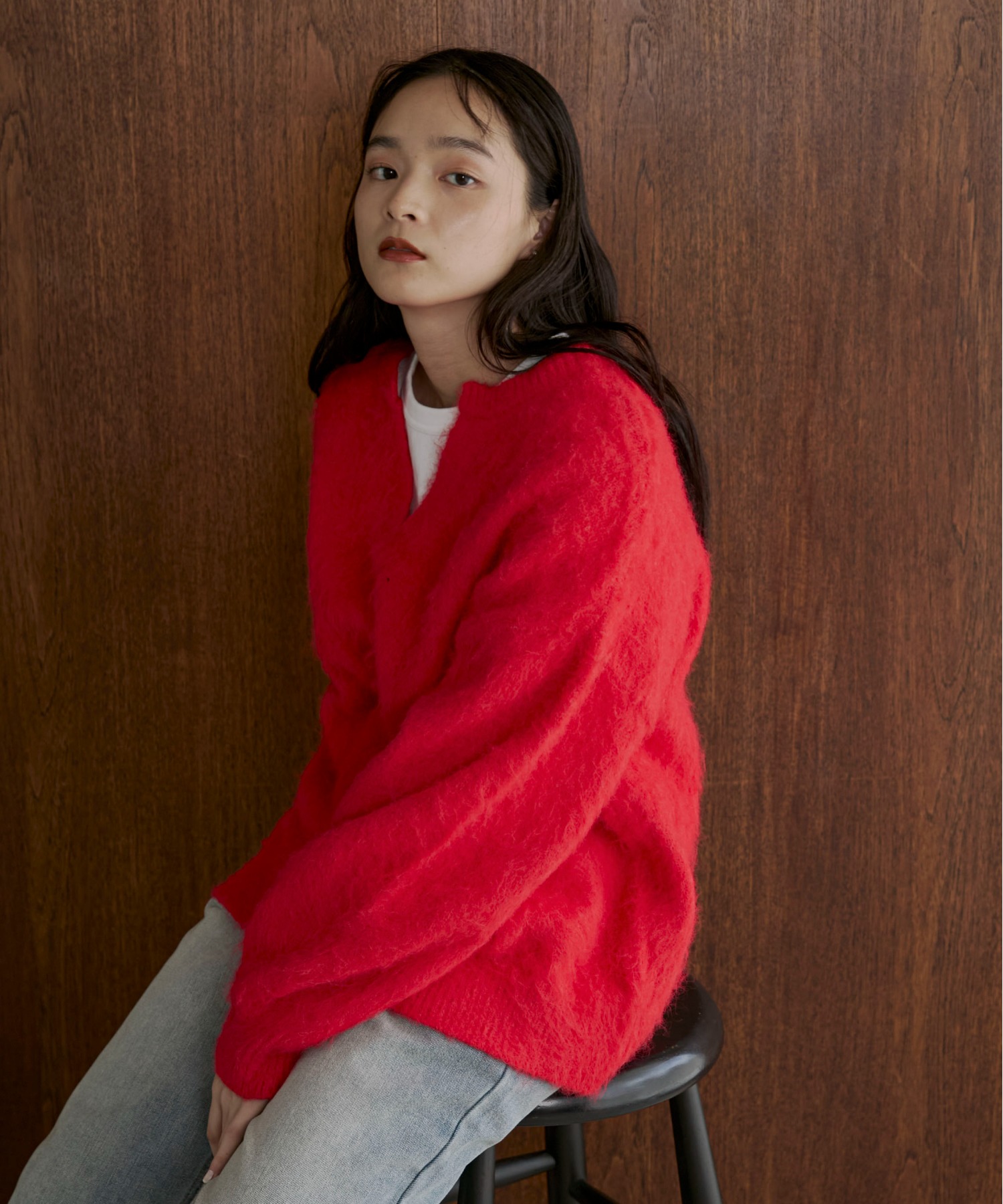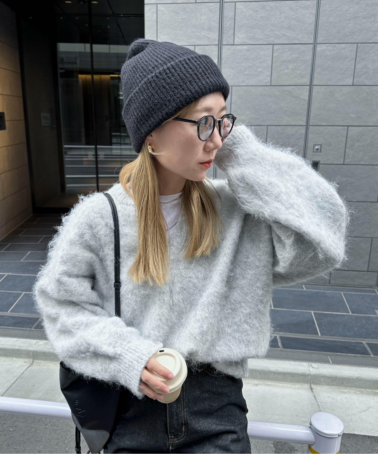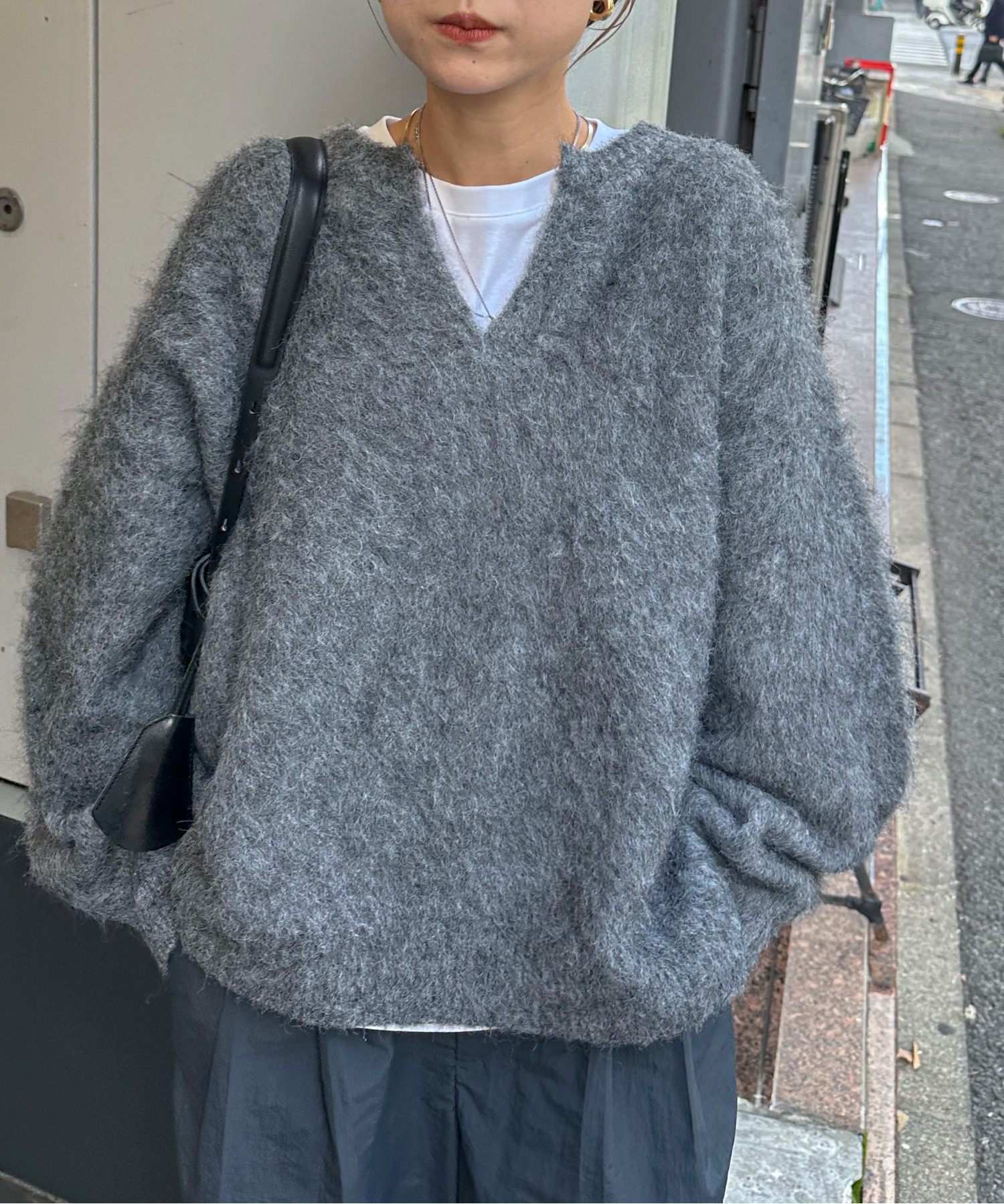 表面の起毛感が魅力の着回しやすいシンプルニット。