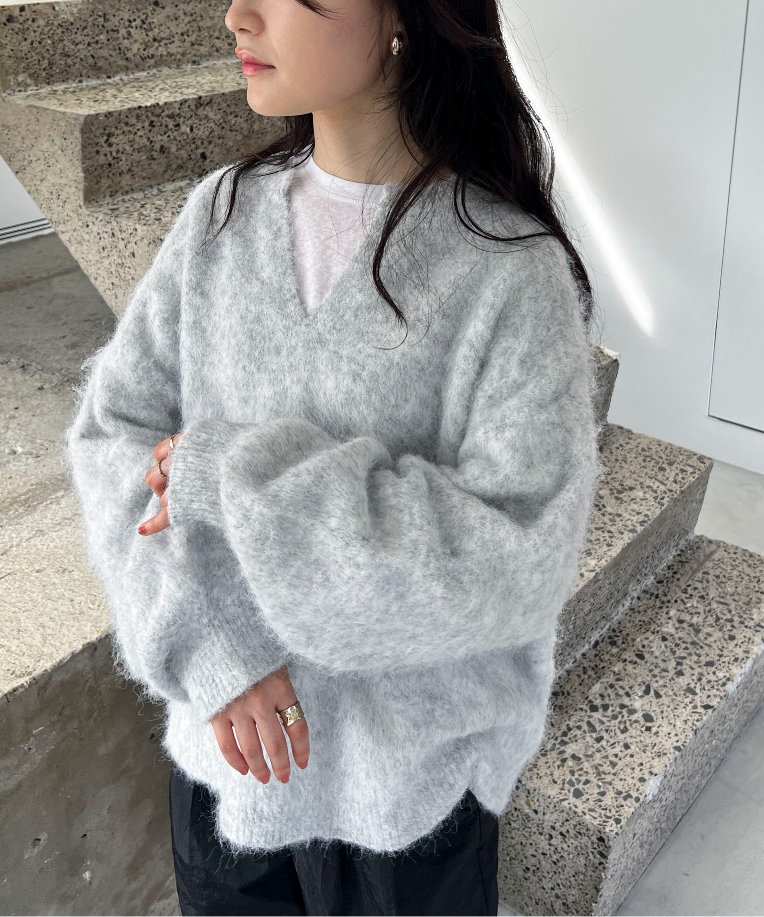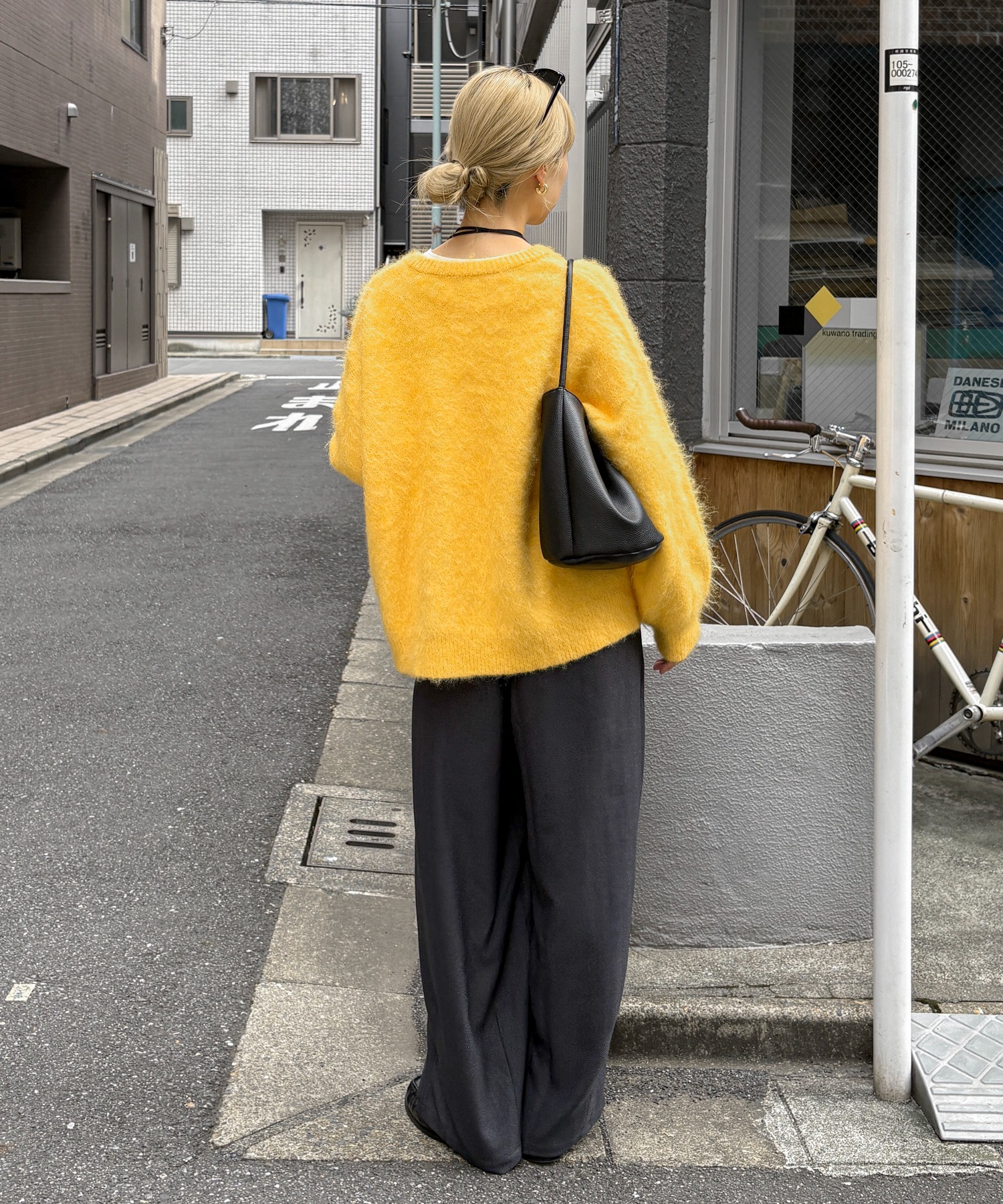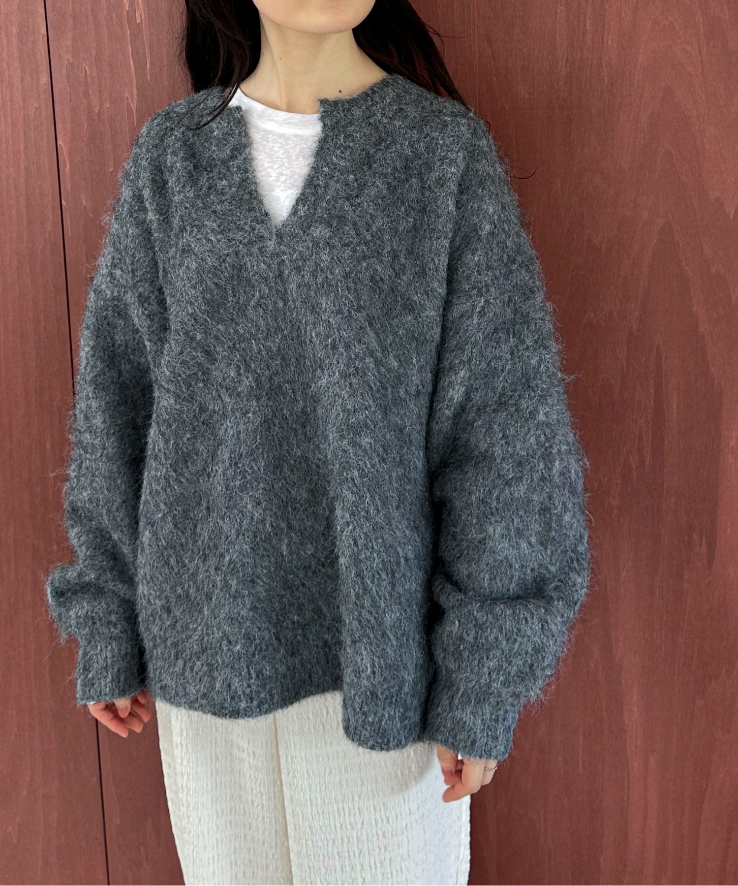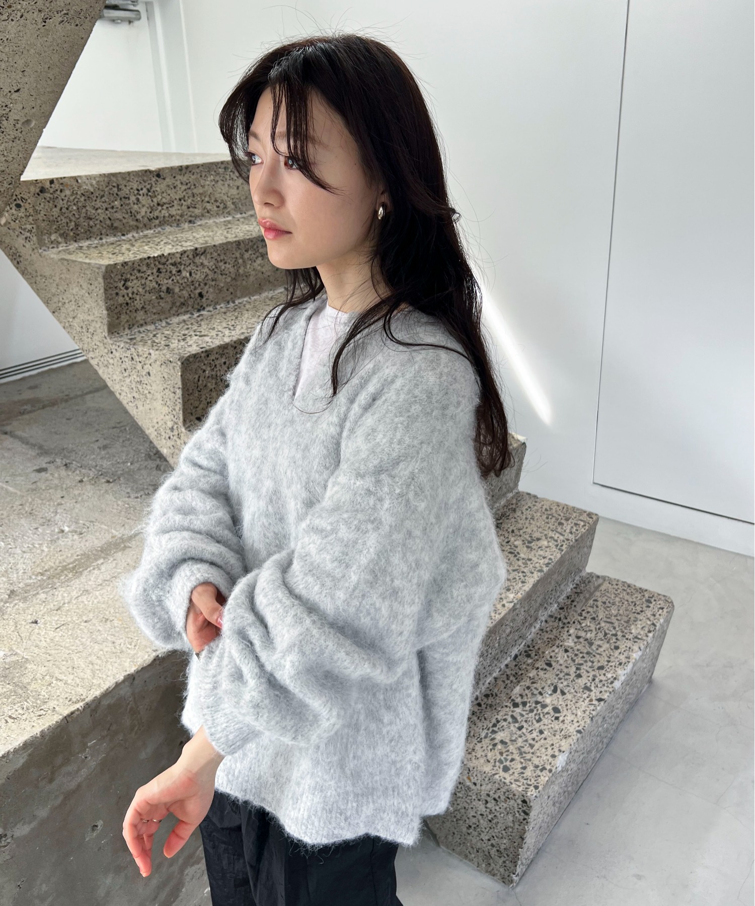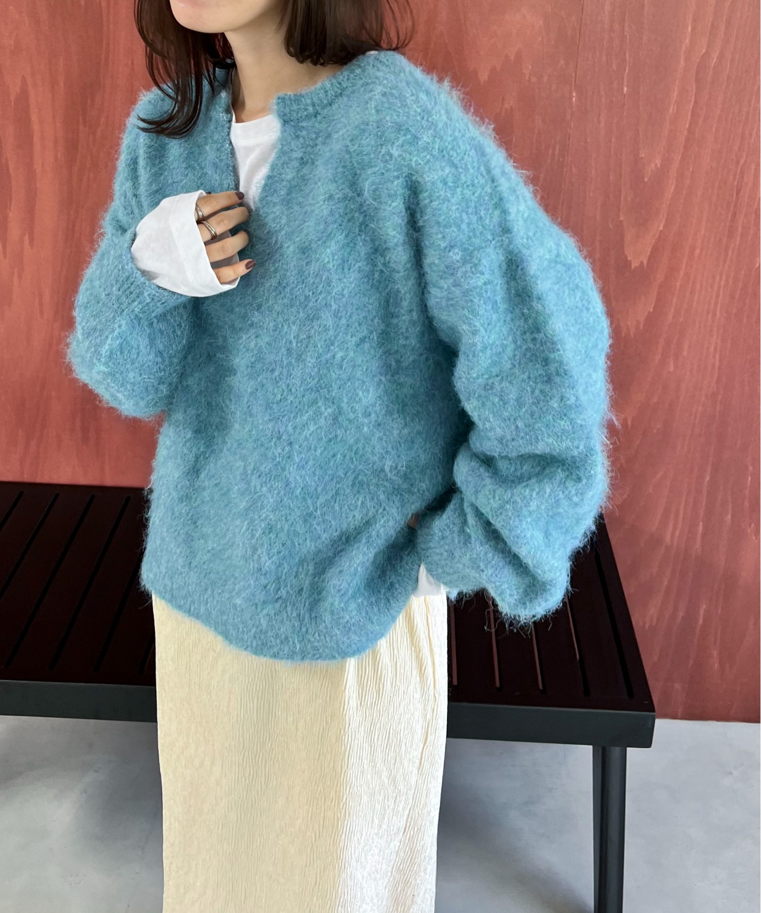 表面の起毛感が魅力の着回しやすいシンプルニット。