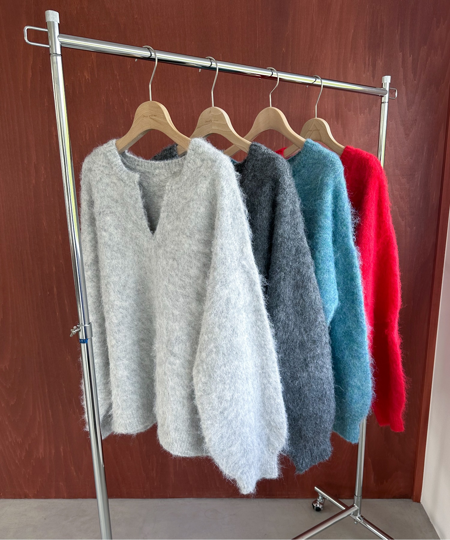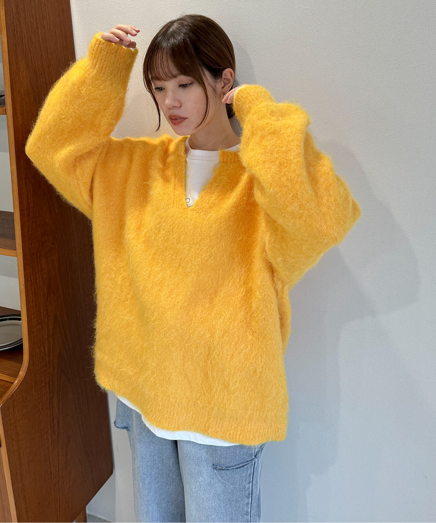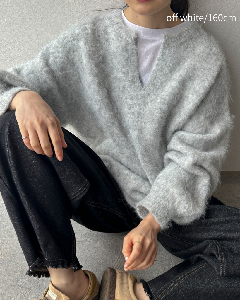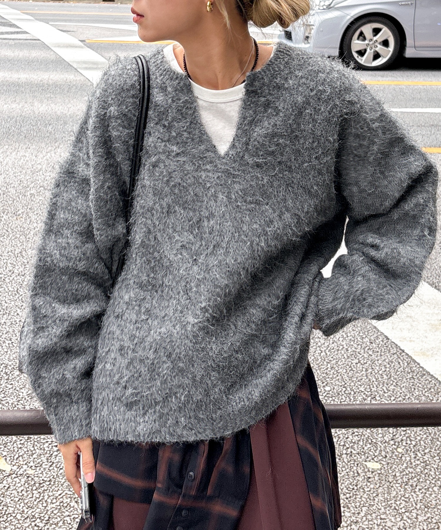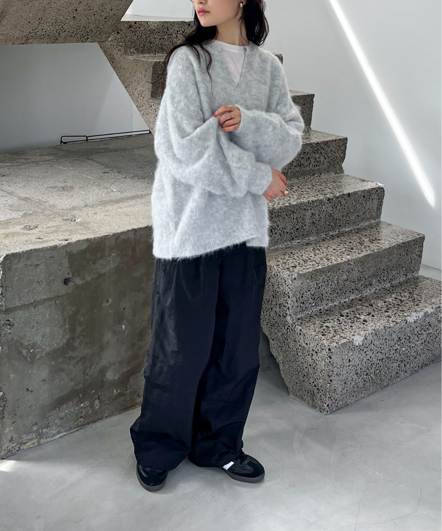 表面の起毛感が魅力の着回しやすいシンプルニット。
