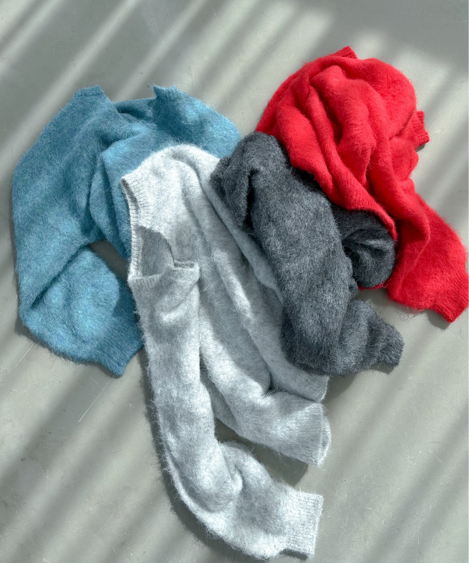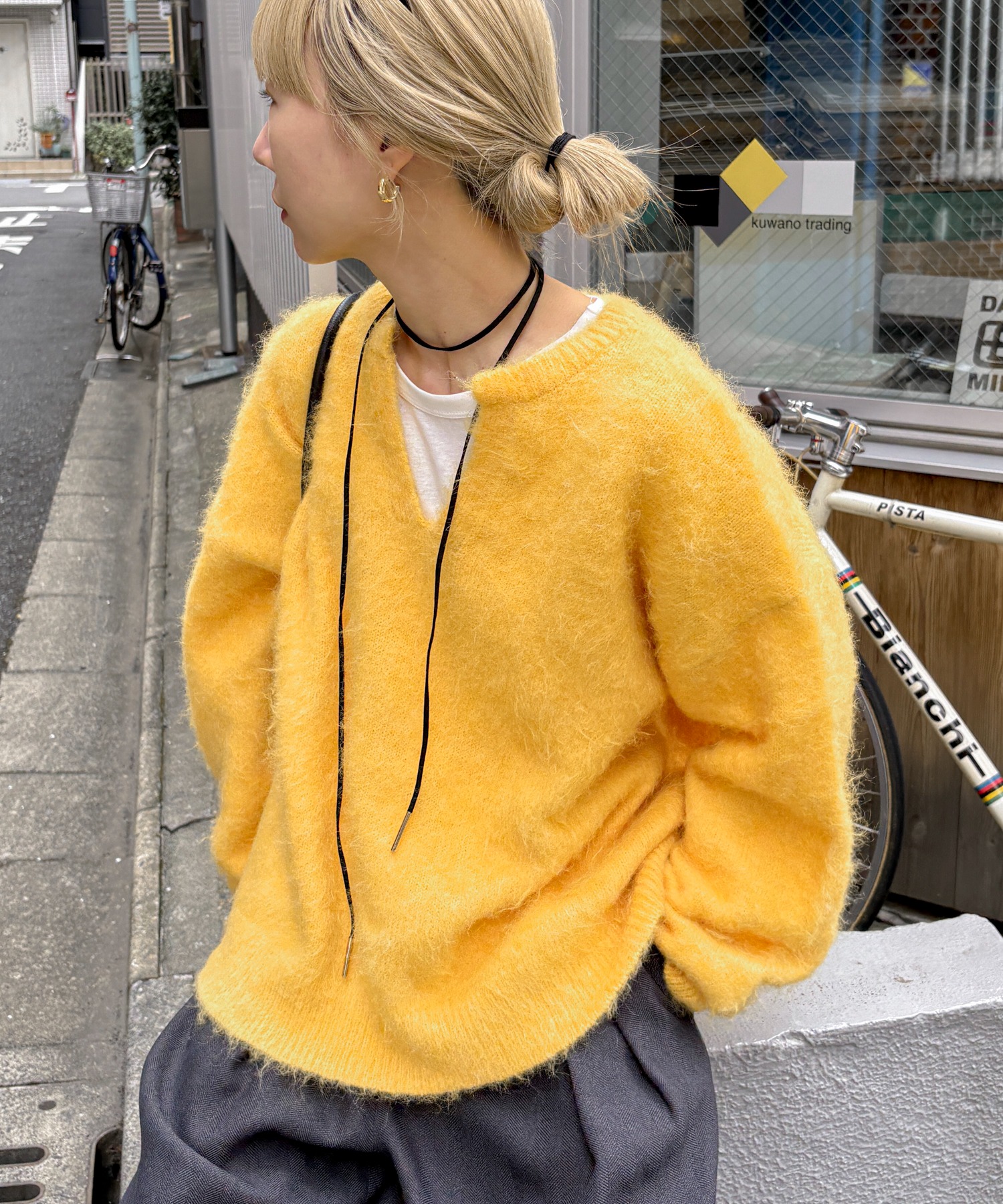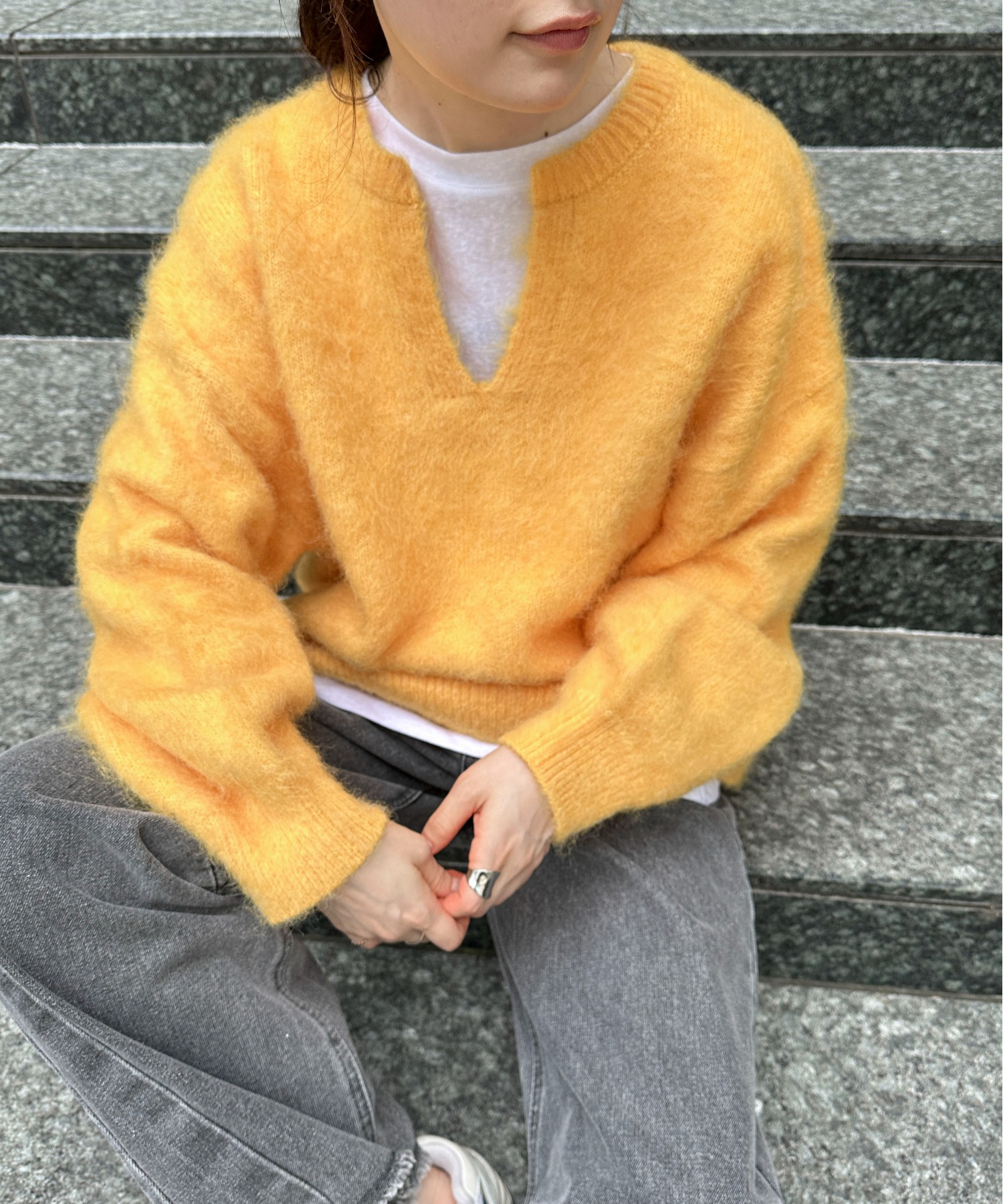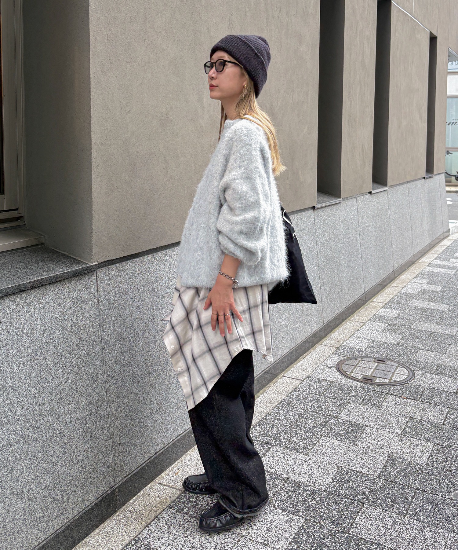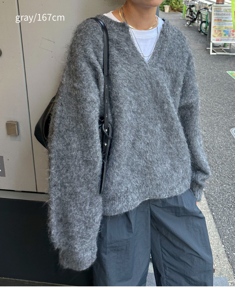 表面の起毛感が魅力の着回しやすいシンプルニット。