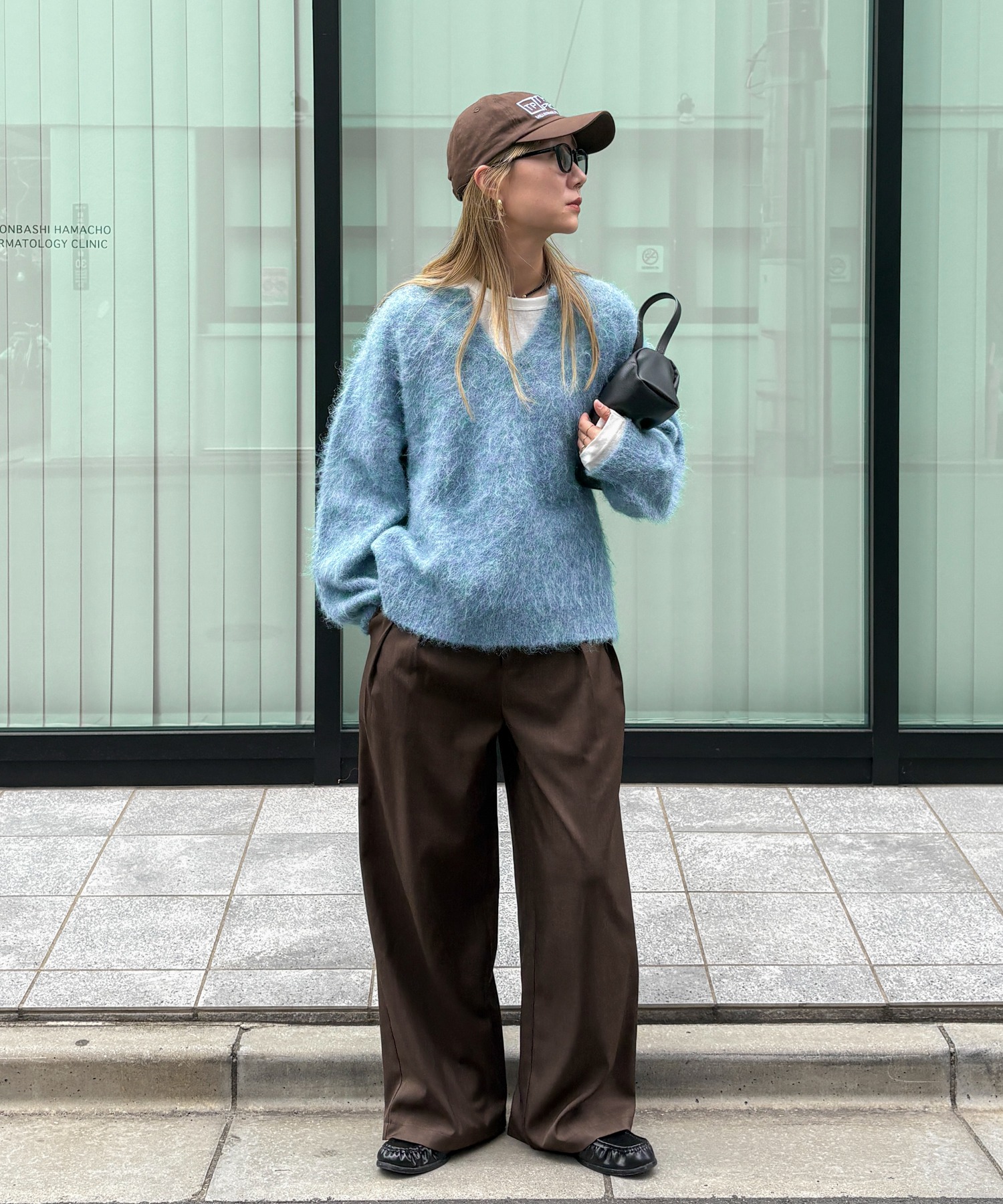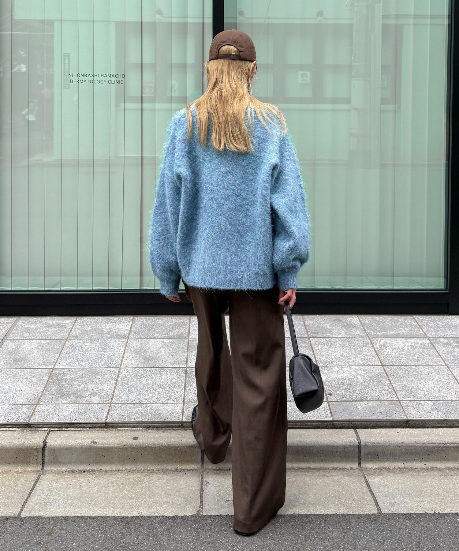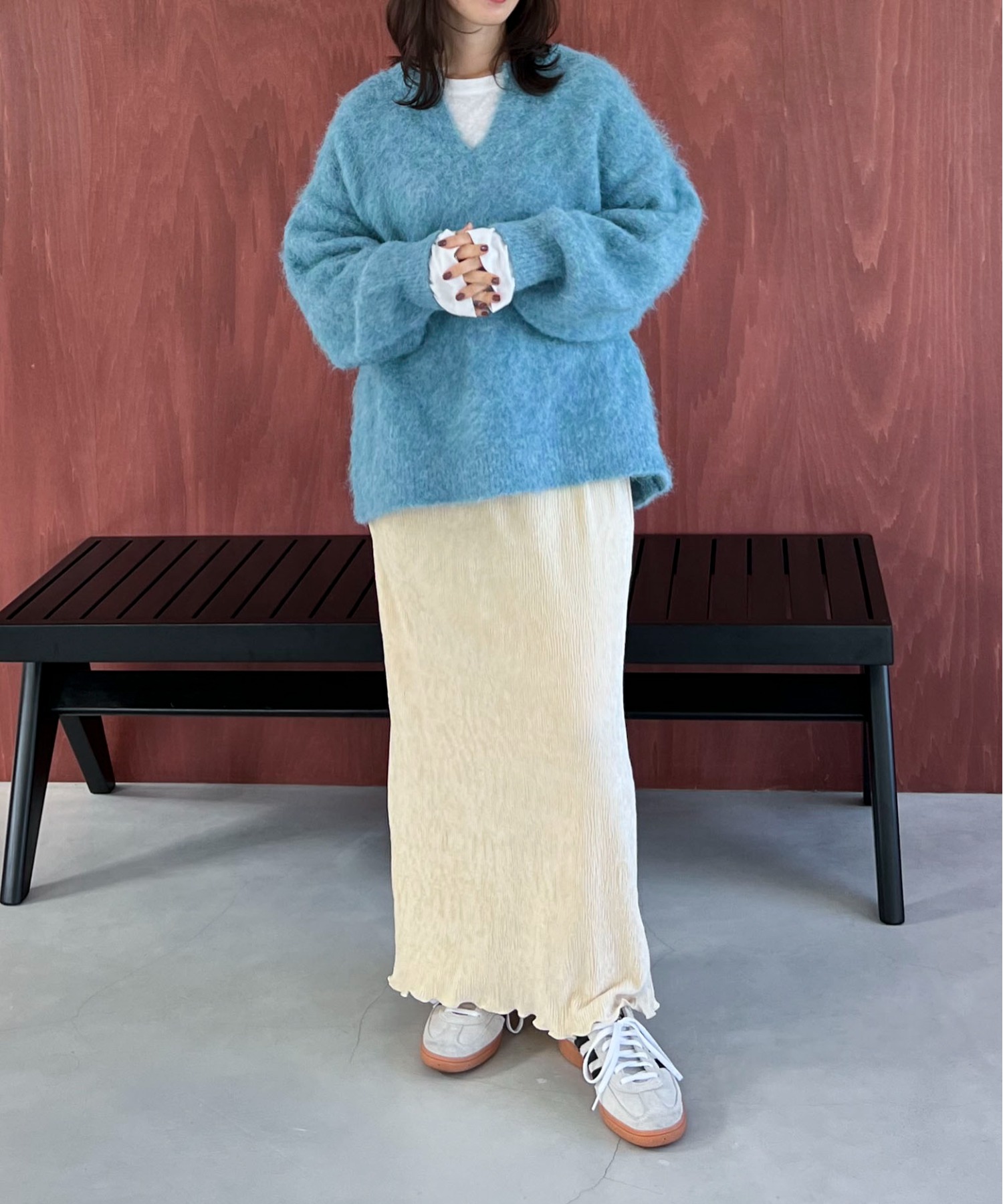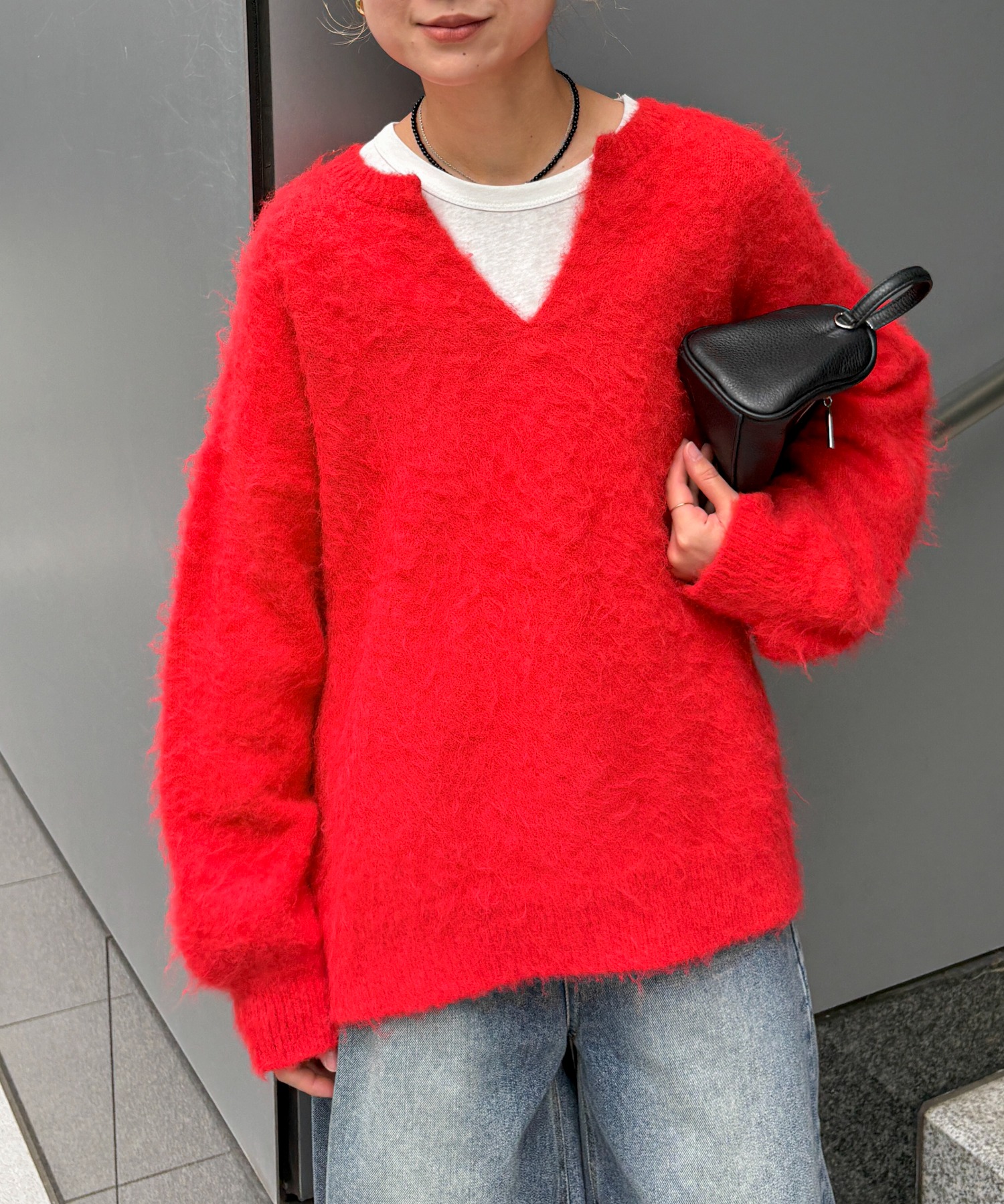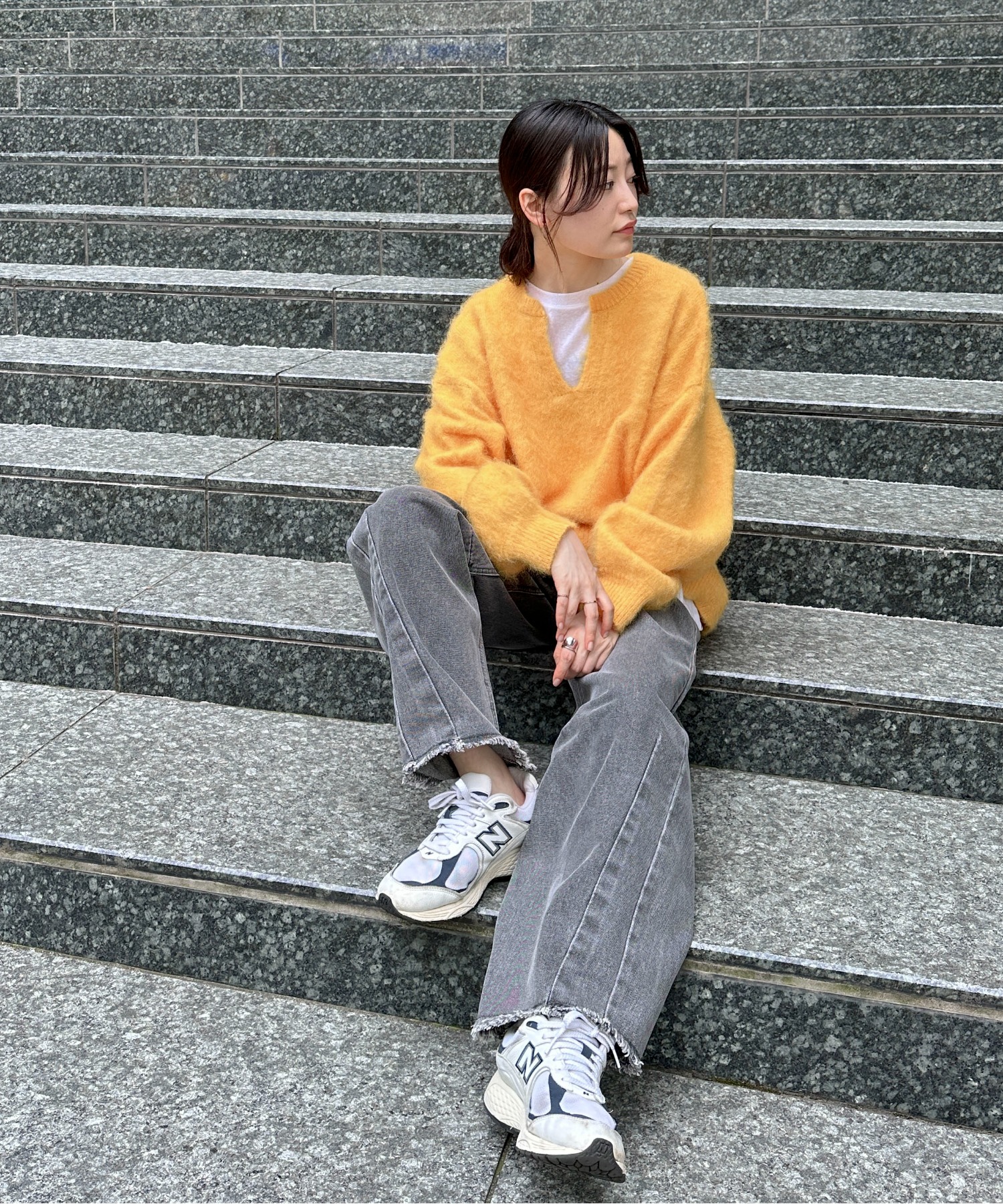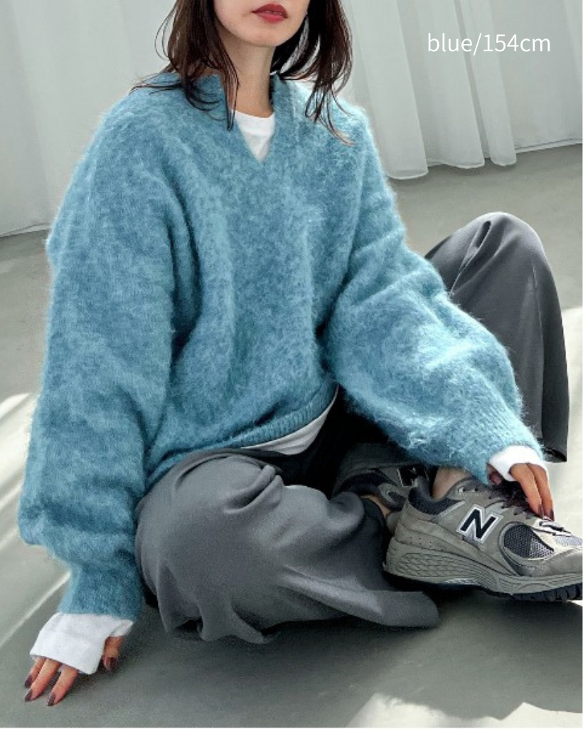 表面の起毛感が魅力の着回しやすいシンプルニット。