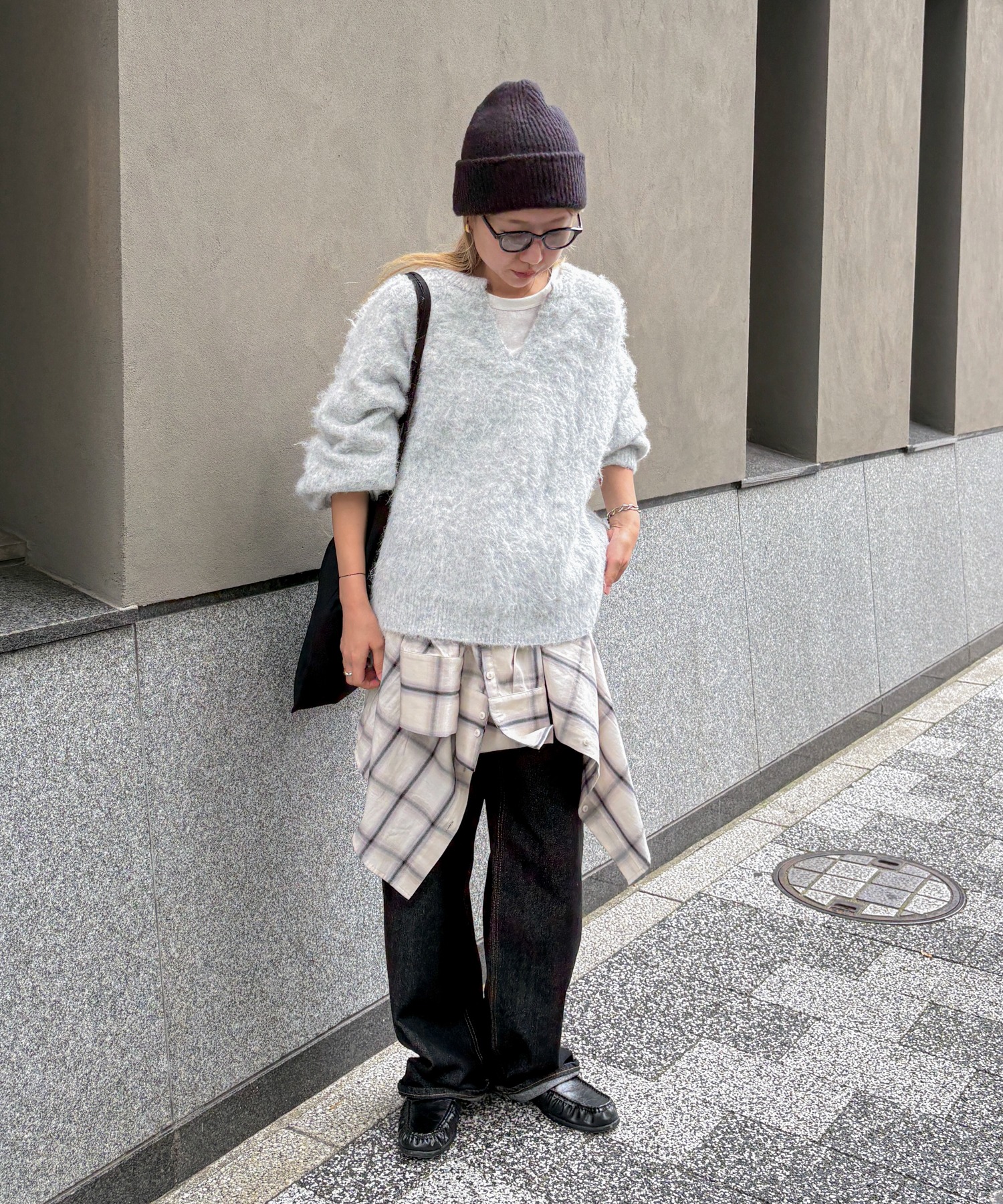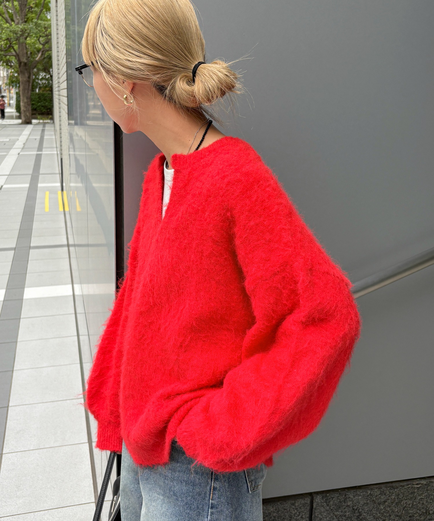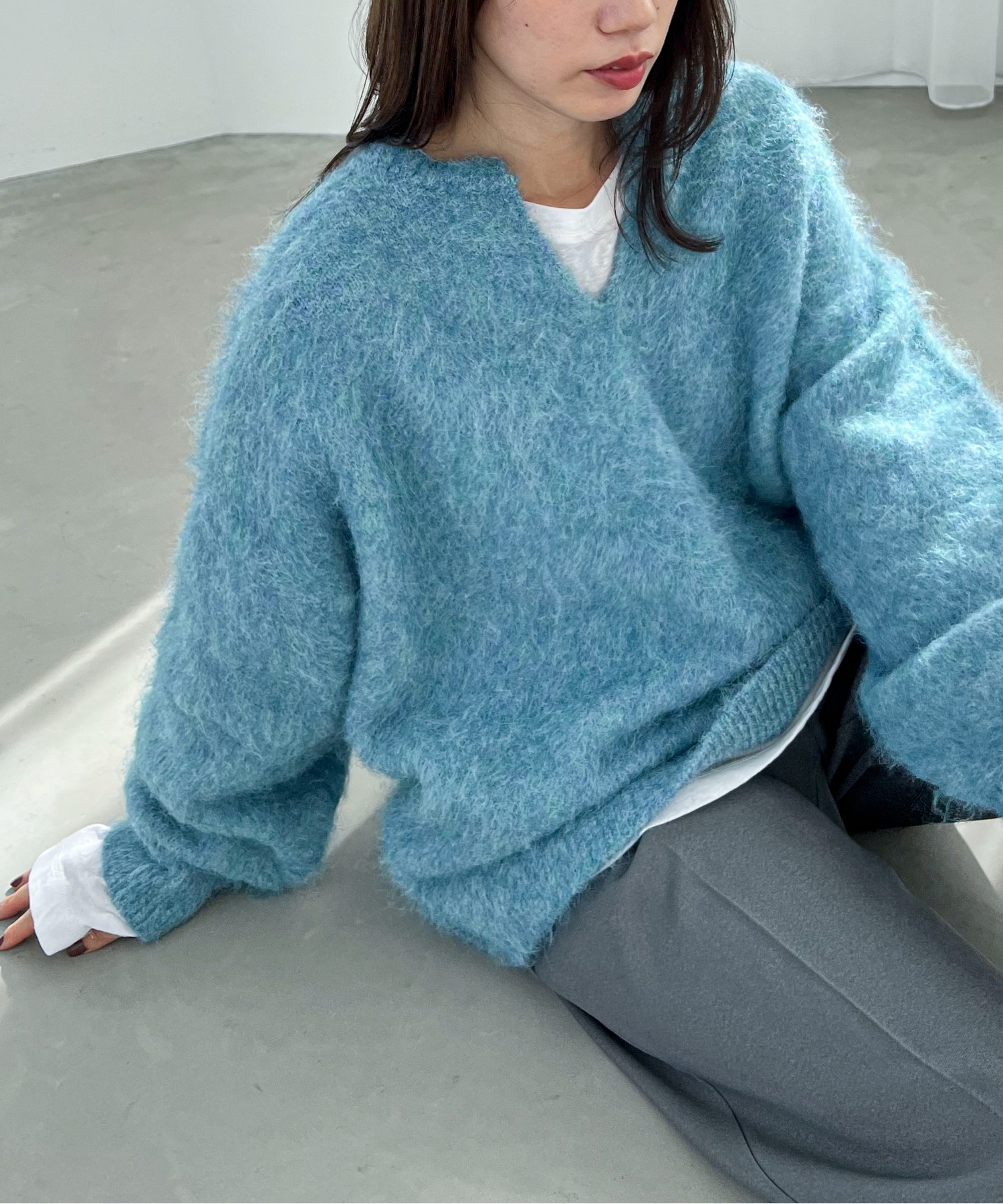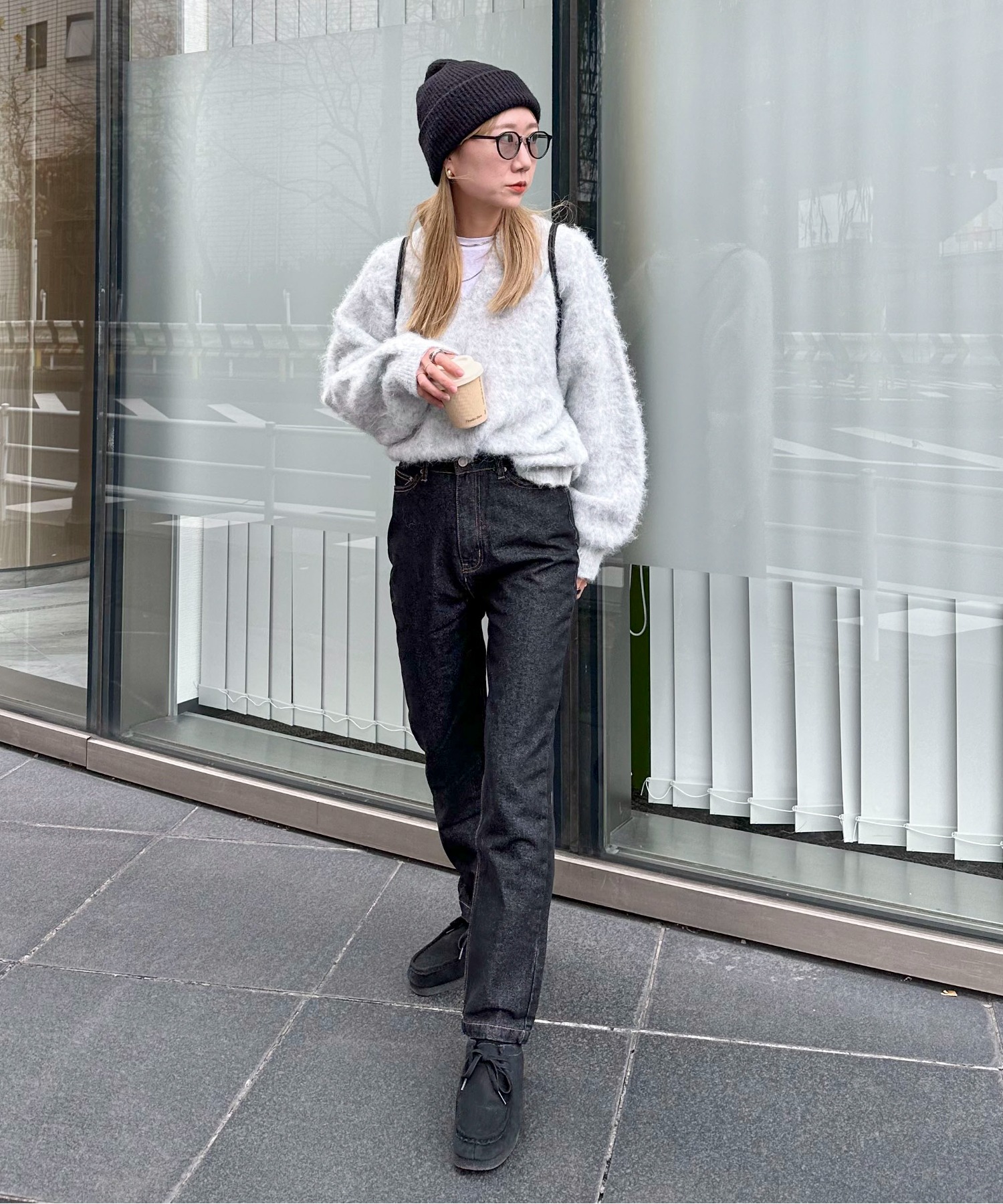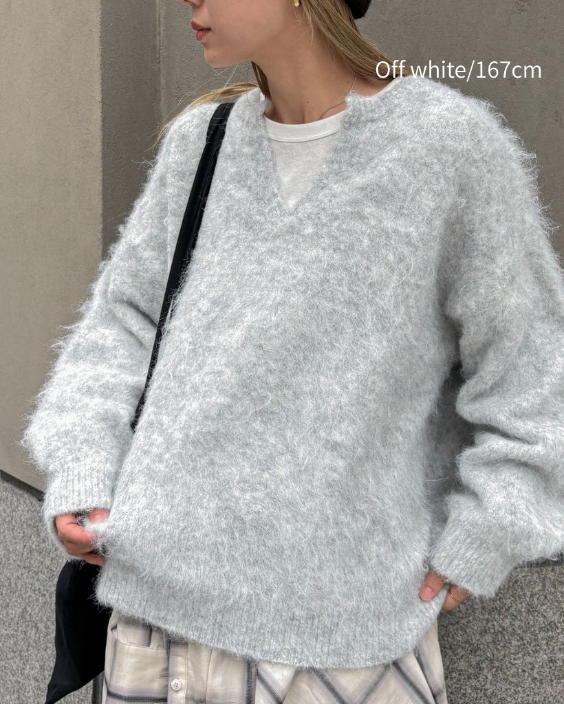 表面の起毛感が魅力の着回しやすいシンプルニット。